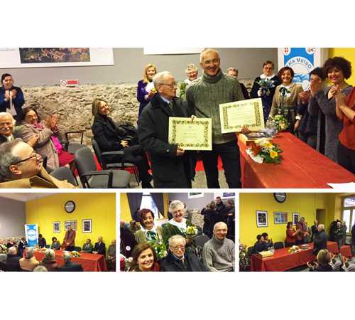 DOMODOSSOLA- 25-02-2018- Piccola ma partecipata cerimonia, quella organizzata dalla Società operaia di mutuo soccorso domese per la consegna di due riconoscimenti a Vittorio Lolli e Mario Cavicchi. Come ha spiegato il presidente della Soms Riccardo Vespa, "un meritatissimo riconoscimento va a Mario Cavicchi, che oltre ad essere il nostro socio più anziano e ad avere ricoperto negli anni diversi incarichi all'interno della società, è figlio di Augusto Cavicchi, socio emerito di cui abbiamo una fotografia appesa nel salone al piano superiore dove vi è la quadreria di tutti i benefattori più antichi della nostra società e il cui tesseramento risale al 1938. Una tradizione, quella della famiglia Cavicchi, molto radicata all'interno della Soms. Difatti mi ricordo ancora bene quando nel 2004, letteralmente catapultato dentro alla società operaia di mutuo soccorso, realtà di cui all'epoca non sapevo praticamente niente e svolgendovi il ruolo di segretario, mi ritrovai di conseguenza a redigere un bilancio, una cosa che in vita mia non avevo mai fatto e il signor Cavicchi, da provetto ragioniere intervenne dandomi preziosi consigli. Tutt'altra storia è quella di Vittorio Lolli, a cui oggi consegniamo il riconoscimento di socio onorario per tutto quello che ha fatto negli ultimi anni come supporto esterno per le nostre attività e anche perchè, molto recentemente lui stesso ha scoperto che fra i soci perpetui della Soms vi è Rinaldo Lolli, che fu suo nonno. Altra tradizione di famiglia, quindi, che speriamo possa continuare nelle future generazioni ". "La società operaia di mutuo soccorso di Domodossola- ha Proseguito Vespa- con i suoi 163 anni di storia è la più antica in Italia ed è tuttora attiva nel promuovere eventi culturali e tanta beneficenza. Con questa cerimonia abbiamo deciso di ripristinare la vecchia tradizione dei premi ai soci, usanza che si era persa negli ultimi decenni dopo l'ultima premiazione ufficiale risalente al 1972" ha concluso il presidente.