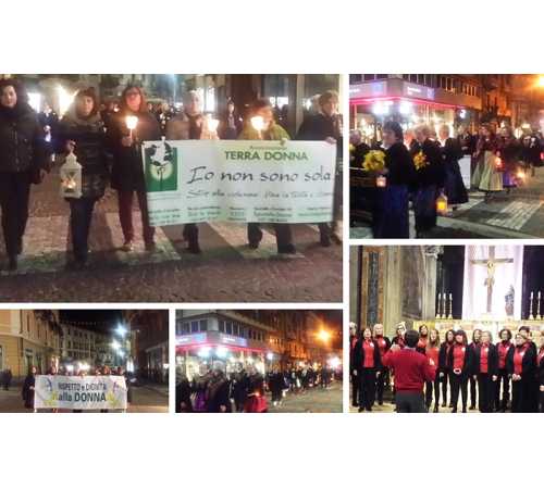 del Vco, insieme a vari enti e associazioni hanno preso parte nella serata di ieri, venerdì 9 marzo, alla grande fiaccolata organizzata dall'associazione Terra Donna e dal Gruppo Folk di Domodossola, per sensibilizzare sul tema della violenza contro le donne. L'evento è stato organizzato con il patrocinio del Comune di Domodossola, della Pro Loco e della Parrocchia dei Santi Gervasio e Protasio e il sostegno di circa 180 tra commercianti e artigiani domesi. La manifestazione ha preso il via da piazza della Stazione e ha attraversato il centro cittadino per poi giungere presso la Collegiata. La chiesa gremita, ha ospitato il concerto dei Cori CaliCanto e Gaudium, a ricordo delle donne e delle loro conquiste. "È il modo più semplice per ricordare le donne vittime di violenza. Donne morte e donne che ogni giorno combattono per poi ricominciare a vivere" hanno spiegato le organizzatrici, Simona Pedroli ( presidente di Terra Donna) e Laura Bonseri ( presidente Gruppo Folk di Domodossola). Il calendario di appuntamenti, iniziato già il 3 marzo e culminato con la fiaccolata, era stato predisposto per riflettere sulle conquiste delle donne, ma anche sulle discriminazioni che ancora esistono e sulle violenze di cui le donne sono spesso vittime. L'evento ha sigillato il riuscito connubio tra Terra Donna e Gruppo Folk di Domodossola, tanto che si pensa già a una seconda edizione. I gruppi presenti erano oltre a quello domese, quelli di Calice, Vagna, Bognanco, Cosasca, Trontano, Donne del Parco, Stciupatel, gli Sforzeschi del borgo di Vogogna, Masera, Vigezzo, Antorna Piana, Preglia, Varzo, Migiandone, Ornavasso (Rigadèn e Walser Urnafasch) Val Strona, Gruppo Carnevale Villadossola, Mottarone, gruppi di Preglia (la Mimosa e Presepi), Seppiana, le Benemerite, Crodo e AIB.