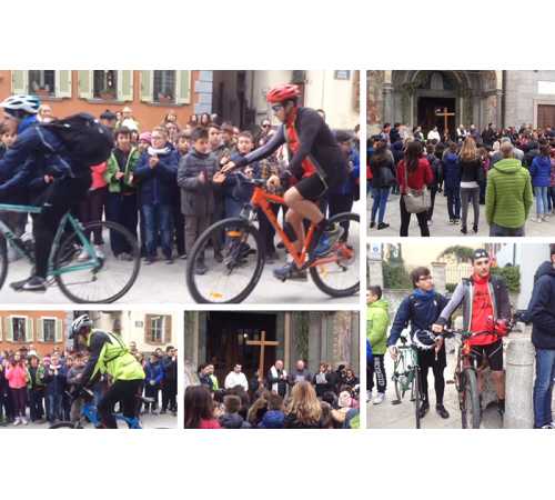 DOMODOSSOLA- 24-03-2018 – Carlo Zanetta, Luca Forcina e Davide Caprera sono tre giovani dell'oratorio di Domodossola partiti questa mattina in pellegrinaggio in bicicletta a Varallo. I giovani accompagnano il quadro che raffigura la Madonna del Sangue da Domodossola, dove si trovava dopo la Veglia delle Palme dello scorso anno, per la Veglia delle Palme di questa sera. Dopo a benedizione del parroco don Vincenzo Barone ed un momento di preghiera e di affidamento alla Vergine da parte di Don Riccardo Zaninetti collaboratore di don Barone un lungo applauso ha accompgnato la partenza. I coraggiosi ragazzi sfidando il freddo effettueranno 60 chilometri in bicicletta passando anche la Colma a 1000 metri di altezza accompagnando l'immagine della Madonna di Re che viene trasportata con un pulmino. Questa sera a Varallo si terrà la Veglia delle Palme 2018, occasione per vivere in diocesi la XXXIII Giornata Mondiale della Gioventù. L’appuntamento guidato dal vescovo Franco Giulio Brambilla. La veglia inizierà alle 20.45. L'arrivo dei giovani ossolani è previsto alle 16 orario in cui inizia il programma preparatorio alla veglia all’Angolo dell’Orologio e saranno accolti dal Vescovo.