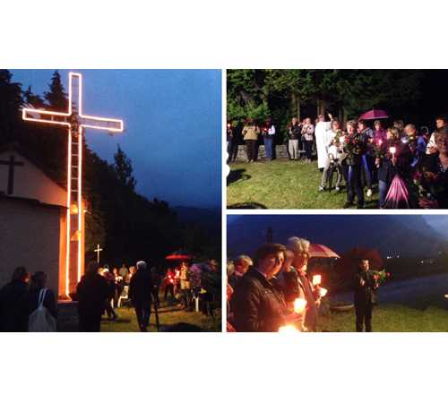 TRONTANO– 23-05-2018 – Tripudio di rose alla Madonna degli Scalpellini al Croppo di Trontano. Ieri era la festa di Santa Rita la santa degli impossibili e il suo attributo iconografico è la rosa oltre alla spina e alle api. Un appuntamento molto sentito al Croppo di Trontano dove la cappelletta degli Scalpellini, che un tempo aveva santa Rita raffigurata su un lato, diventa meta di devoti della santa non solo di Trontano, ma anche delle località vicine. Un gruppo è arrivato a piedi guidato dal parroco don Paolo Cavagna da Beura. Dopo la messa è seguita la fiaccolata, la distribuzione dell'immaginetta di Santa Rita, la benedizione delle rose e il bacio della reliquia. Ogni fedele aveva un mazzetto di rose. Molti le hanno raccolte dal proprio giardino. Chi ne era sprovvisto poteva prenderle gratuitamente da mazzi di rose messe a disposizione dagli organizzatori. La festa viene preparata alcuni giorni prima da Laura Audo e alcuni fedeli del Croppo che ci tengono a continuare la tradizione e quindi provvedono a sistemare l'area tagliare l'erba, pulire la cappella e abbellirla con i fiori.