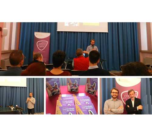 DOMODOSSOLA-23-05-2018-La musica rock come strumento per conoscere e interpretare il complesso universo adolescenziale. Lo psicologo, educatore e musicista Andrea Montesano, ospite ieri sera, nell'Aula Magna dell'Istituto Antonio Rosmini a Domodossola, nell'ultimo incontro del ciclo " Testimoni del Presente", ha illustrato la funzione e l'importanza della musica nello sviluppo psicologico e sociale di un adolescente. Ventiquattrenne songtherapyst, chitarrista, con una Laurea Specialistica in Psicologia dello Sviluppo e dell'Educazione, Andrea Montesano, attraverso lo studio della funzione che la musica e le canzoni assolvono per i giovani, a vari livelli, è giunto a scrivere un libro pensato per supportare psicologi ed educatori che lavorano quotidianamente a stretto contatto con i ragazzi ma anche rivolto a genitori e figli che vogliono meglio conoscersi attraverso i testi dei grandi miti del rock. " La Psicologia del Rock. Crescere con la musica in adolescenza" ( Alpes, 2017) è un volume che spazia dagli studi americani di Bronfenbrenner e altri padri della psicologia, attraversando i testi di Subsonica, Baustelle, U2, Fedez, ecc. con sempre al centro il vissuto dell'adolescente, in bilico tra ricerca di identità e ispirazione ai suoi miti musicali. L'autore ha spiegato al pubblico presente in sala che, nell'ascoltare musica in questa delicata fase della vita, si risponde al bisogno di affermazione e costruzione della propria identità. Il compito di psicologi, insegnanti, genitori, counselor ed educatori che hanno a che fare con giovani dai 13 ai 20 anni è proprio quello di capire il perché di un comportamento e di una scelta musicale, senza stigmatizzare. La musica infatti, per i genitori potrebbe diventare uno strumento per dialogare con i figli, una chiave per la comunicazione con gli adolescenti più ribelli o introversi. Il libro contiene anche un progetto psicoeducativo da applicare con gli adolescenti nelle scuole, parrocchie o comunità educative. Lo stesso autore ha partecipato ad un progetto educativo, collaborando con il Liceo delle Scienze Umane Antonio Rosmini, insieme all'insegnante Elena Mascaro.