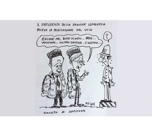 quest'oggi un ciclo di vignette col decano e più conosciuto dei disegnatori locali, Carlo Lux, che periodicamente ci farà divertire con la sua ironia, che mostra già in questi suoi primi schizzi, rifacecendosi al film Totò, Peppino e malafemmena ed alla recente visita della delegazione del Vco al presidente della Lombardia. Come si chiedeva nel film..."Noi vogliamo sapere, per andare dove dobbiamo andare, per dove dobbiamo andare...?