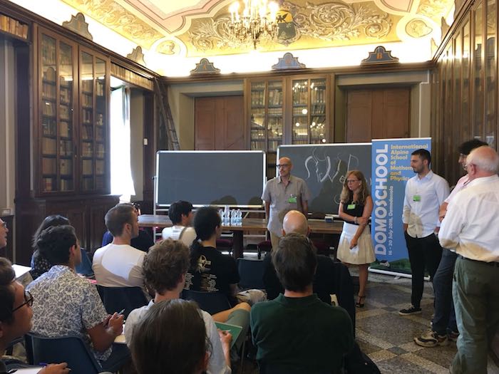 sta ospitando la prima edizione di "Domoschool, Scuola Internazionale Alpina di Matematica e Fisica." Matematici provenienti da tutto il mondo, fino al 20 luglio si riuniscono a Domodossola per una cinque giorni dedicata allo studio delle teorie di Einstein . Organizzata da ARS.UNI.VCO e comune di Domodossola, e supportata da un Comitato Tecnico Scientifico coordinato dal prof. Sergio Cacciatori e composto da professori universitari provenienti dagli Atenei di Insubria, Piemonte Orientale, Milano ( Università e Politecnico ) e Berlino, la Scuola ha già ottenuto il riconoscimento ed il contributo da parte del Gruppo Nazionale di Fisica e Matematica - INdAM. Ieri mattina, all'apertura delle giornate di studio, erano presenti l'assessore al turismo del comune di Domodossola, Angelo Tandurella, Stefania Cerutti, presidente ARS.UNI.VCO e Sergio Cacciatori, coordinatore del Comitato Tecnico Scientifico ed organizzatore. " L'idea mi è venuta perché volevo fare qualcosa per Domodossola, essendo nato e cresciuto in questa città. Ho proposto l'idea al comune di Domodossola che l'ha accolta con entusiasmo. Lo stesso entusiasmo che vedo nei docenti e studenti ( circa 45 ) che provengono da tutte le parti del mondo, dal Canada, dal Sud America, dall' Australia, dall'Europa dell'Est e dall'Europa del Nord" spiega Sergio Cacciatori. Docenti, esperti, ricercatori, studenti universitari e appassionati di matematica e fisica affrontano nelle storiche aule rosminiane, i temi riguardanti le più recenti scoperte sia sperimentali sia teoriche conseguenti alle equazioni di Einstein, da cui il titolo della Scuola " Einstein Equations: Physical and Mathematical Aspects of General Relativity ". Giovedì 19 luglio alle ore 21 in piazza Rovereto a Domodossola, la scienza si apre invece al pubblico nell'evento organizzato nell'ambito dei" Giovedì d'estate". Interverranno il noto giornalista scientifico Luigi Bignami, la scienziata di origini domesi Daniela Bortoletto e il ricercatore dell'INFN di Pisa, Giancarlo Cella. Moderano Sergio Cacciatori e la giornalista Cinzia Attinà.