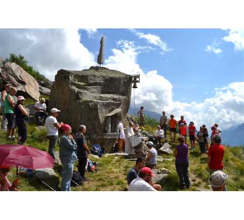 Fatta costruire da Luigi e Oriana Pala, in sasso della valle Anzasca, si tratta di una stata posizionata vicino alla cappelletta, al cui interno c'è una bella statua di legno raffigurante San Bernardo e appena sopra una campana (la Stella delle Alpi). La cerimonia, celebrata da don Maurizio e don Silvio, ha ricordato gli amici e le amiche della valle defunti. Aperitivo, antipasti, polenta e grigliata hanno concluso la giornata nel nome dell'amicizia.