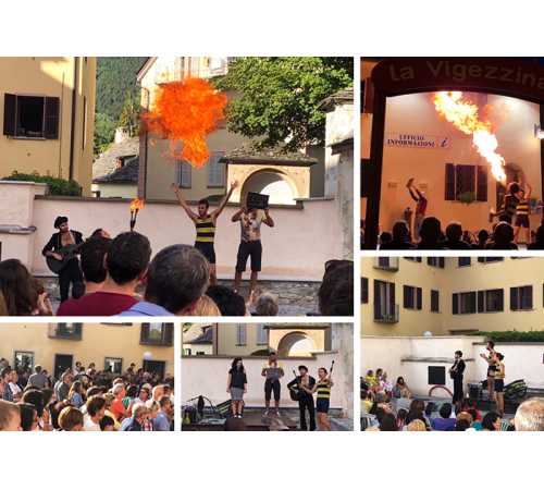I fratelli, a Druogno in piazza Chiesa e a Santa al parco di Villa Antonia, hanno espresso il loro talento di giocolieri, mangiafuoco e acrobati. I loro momenti d'intrattenimento brevi e appassionanti, non sono solo scenografici, ma anche comici.