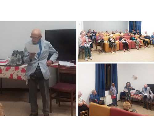 Presso la Casa vacanze dei Comuni novaresi il Maestro, come tutti lo chiamano, accompagnato dagli amici e colleghi poeti Silvana Danesi e Antonio Ferrari, entrambi novaresi che durante l'estate risiedono a Santa Maria Maggiore, ha letto alcune poesie scritte di suo pugno. Si è spaziato dai ricordi di una Novara d'altri tempi ai quelli delle prime volte a Druogno. Il Maestro è autore, oltre che di poesie, anche di diverse monografie. Ferrari e Danesi hanno recitato rispettivamente poesie romantiche e divertenti, tutte molto apprezzate dal fedelissimo pubblico ospite della struttura di via Colonia.