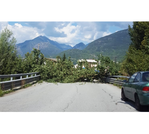 caduta poco dopo le 15 sulla strada che collega Trontano a Masera, poco prima dell'autolavaggio. le vetture sono tutte riuscite a fermarsi in tempo in entrambe le direzioni di marcia. Sono stati avvisati i Vigili del fuoco, intervenuti per la rimozione.