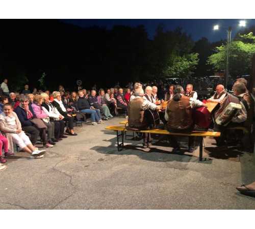 Alle 21, presso il mulino in zona Sasseglio, si è svolta una serata di canti delle montagne a cura del gruppo di canto spontaneo "Amici della montagna" a cui ha partecipato anche la banda musicale di Druogno. Alle canzoni cantate si sono alternate quelle suonate.