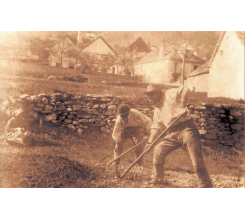 OSSOLA- 15-09-2018- In omaggio al pittore vigezzino Carlo Fornara, uno dei più grandi artisti del Novecento, morto 50 anni fa, il 15 settembre del 1968, l'ossolana M.me Webb Editore pubblica in forma di cartolina una “Posa fotografica per lo studio de ‘I Vangatori’, Prestinone, 1897”. Fornara si vantava di “maneggiare la frullana e la zappa colla perizia di un autentico contadino”