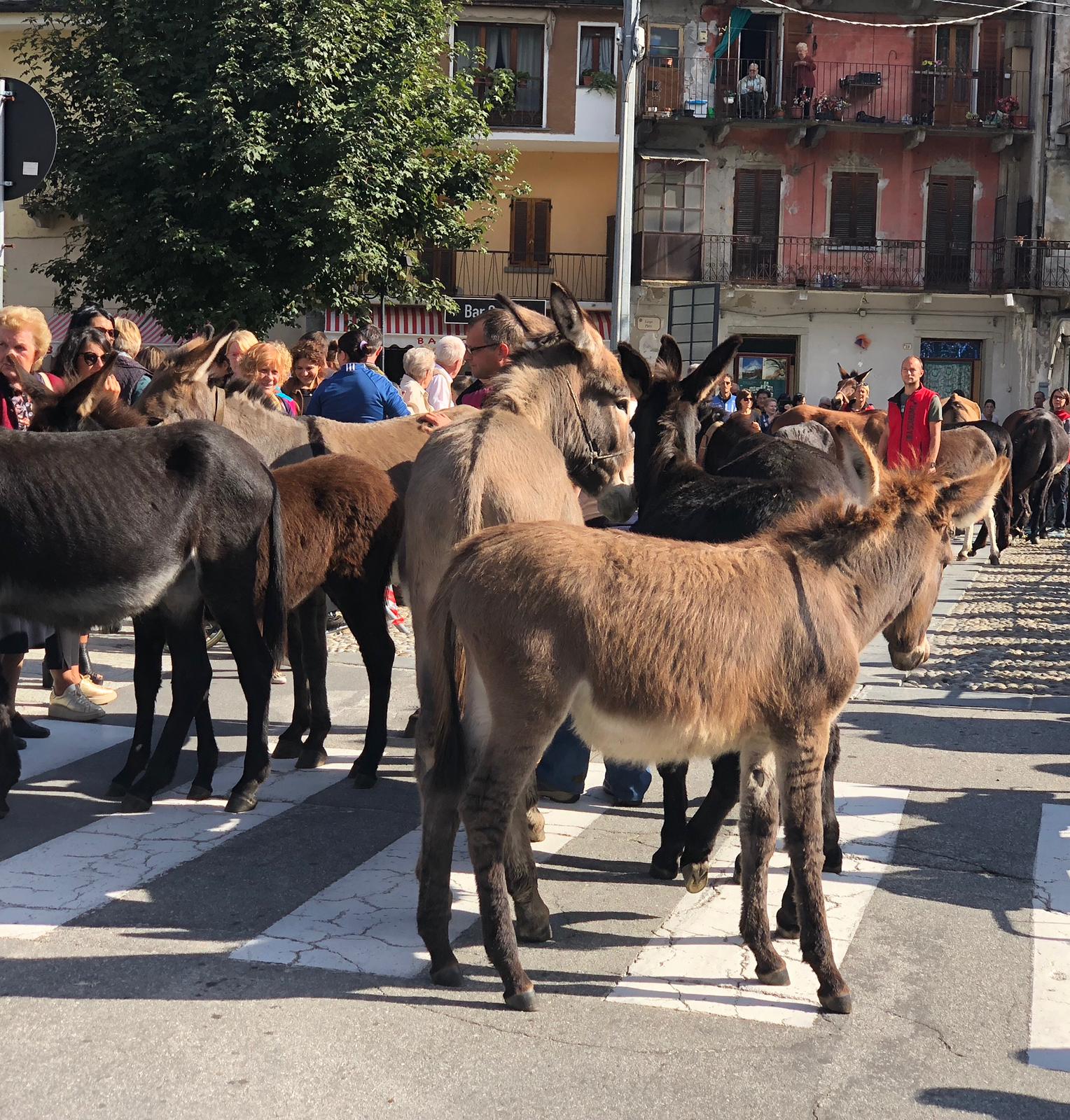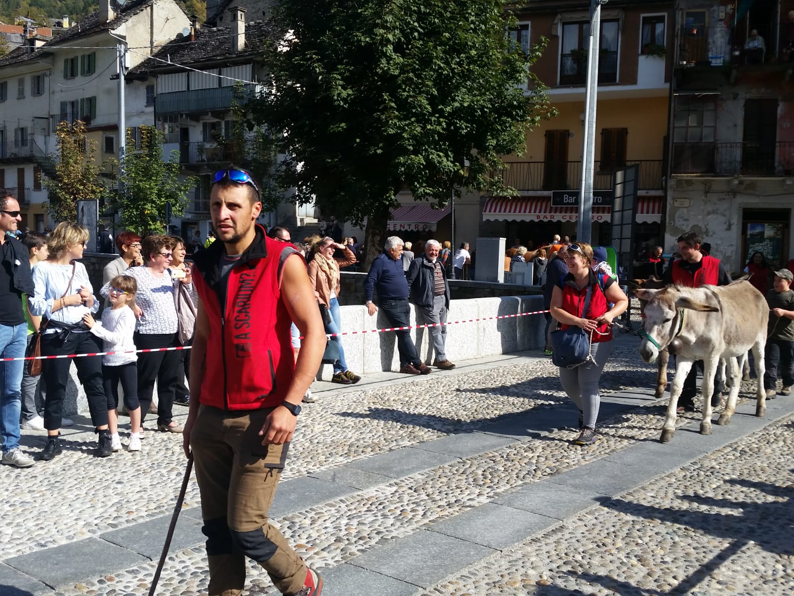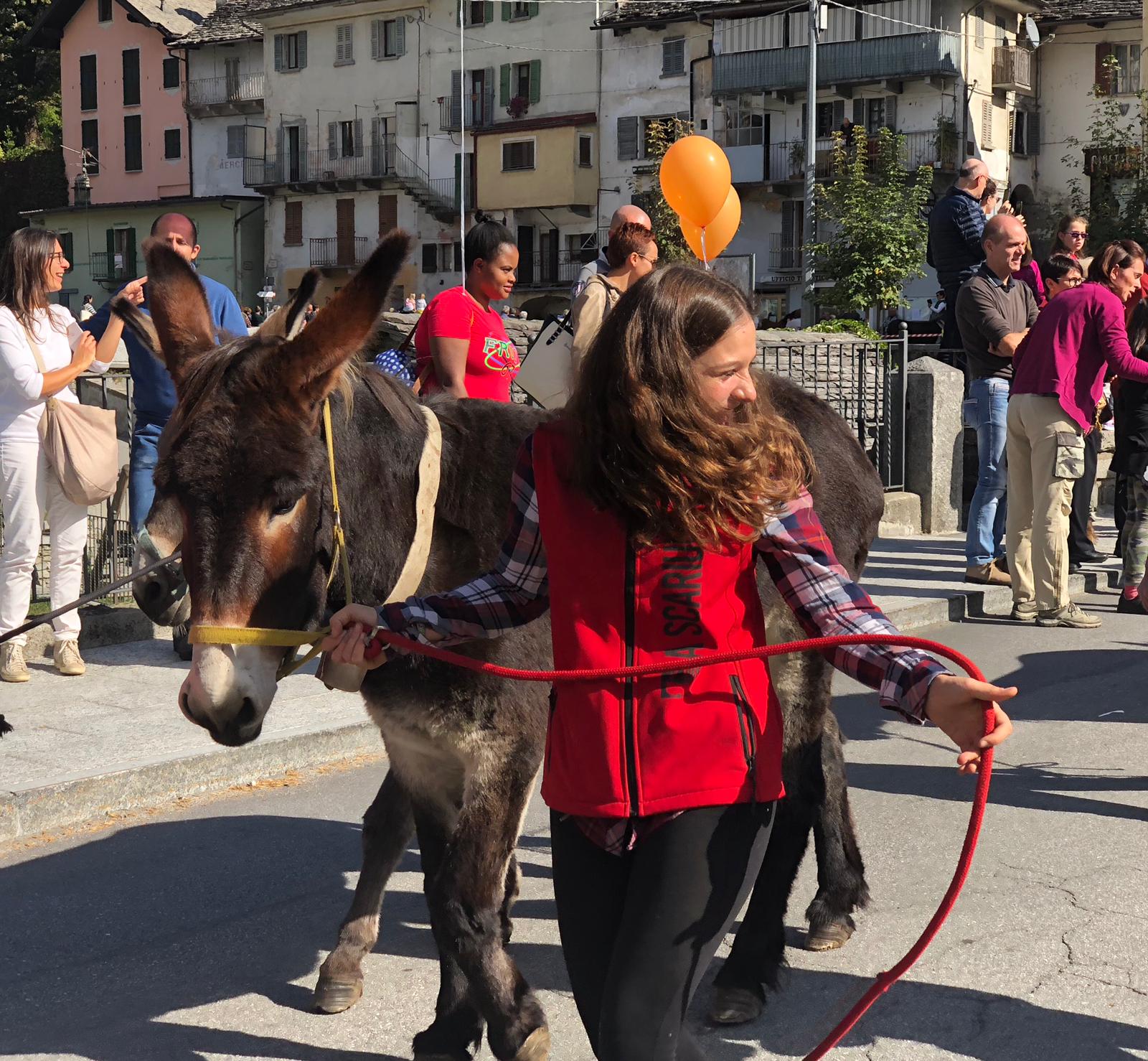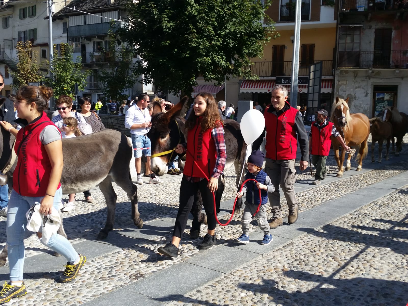 a Varzo per la conclusione della sagra "A scarium?" per il ritorno a valle degli asinelli dagli alpeggi. La sfilata con i gruppi folk e gli animali è arrivata in piazzale Trieste per pranzo, in corteo anche il gruppo folk di Borgosesia. Poi tutti a pranzo, ovviamente con le specialità a base di asino.