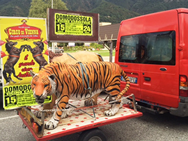 DOMODOSSOLA- 20-08-2015- Controlli veterinari, le proteste della Lav di Arona, ed ora anche la polizia municipale domese. E' nell'occhio del ciclone il Circo di Vienna, in città sino al prossimo 24 agosto, che nei giorni scorsi è stato multato dalla polizia locale domese per diverse centinaia di euro per dei manifesti affissi abusivamente. Gli agenti domesi hanno provveduto in maniera che i manifesti non regolari fossero coperti. Nei giorni scorsi il veterinari dell'Asl aveva effettuato delle visite agli animali presenti nell'attrazione, senza riscontrare nessuna irregolarità.
