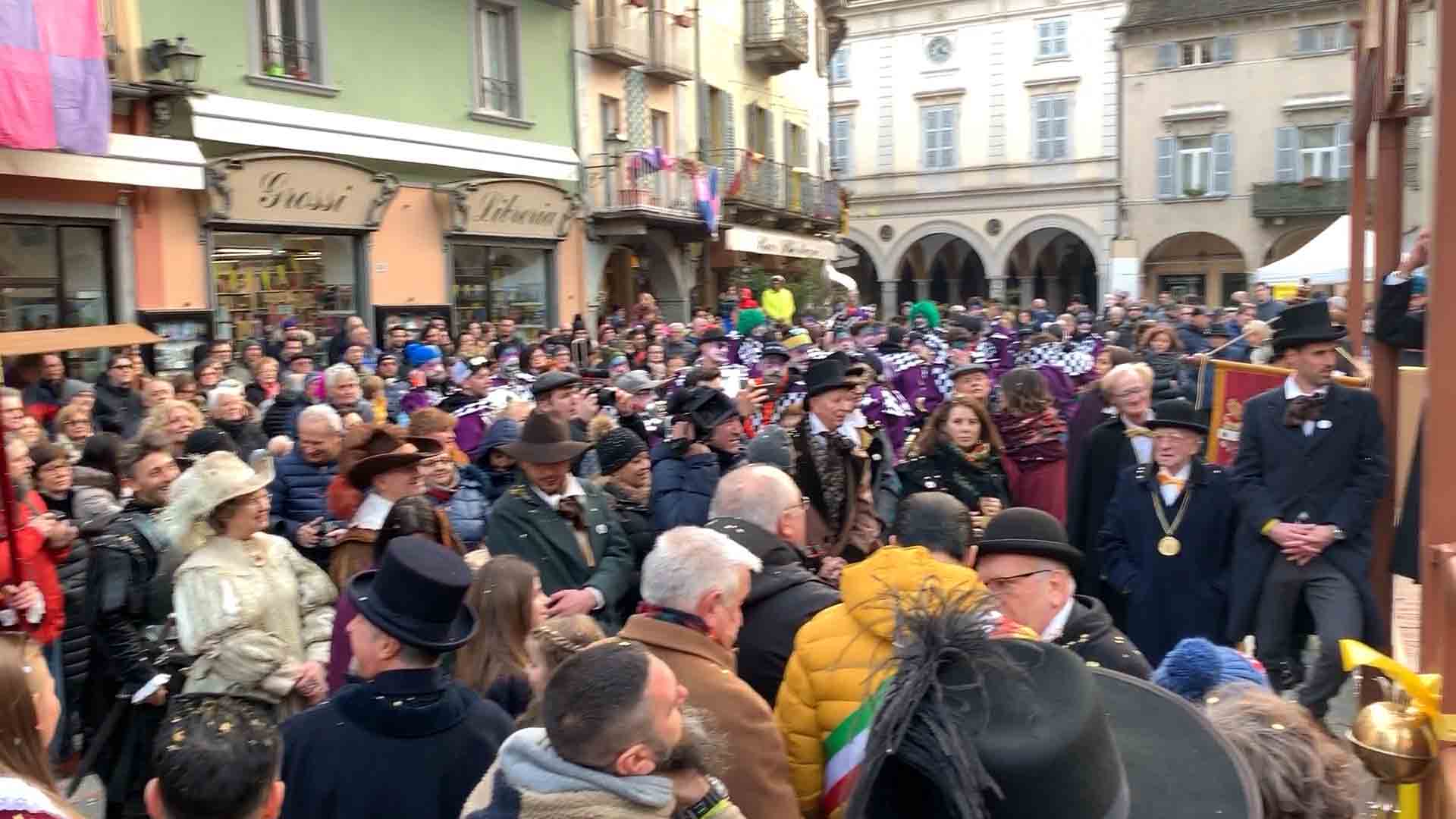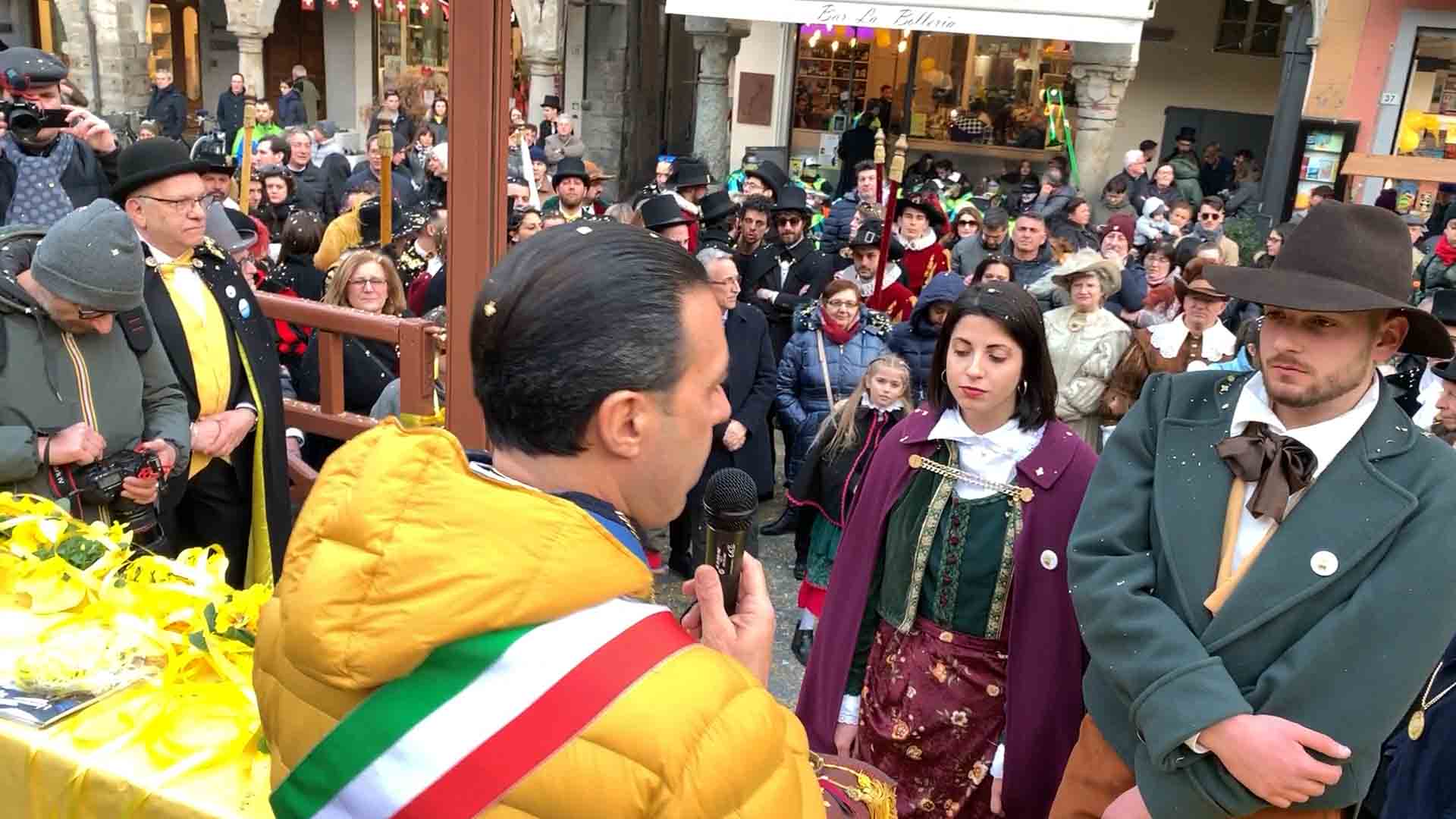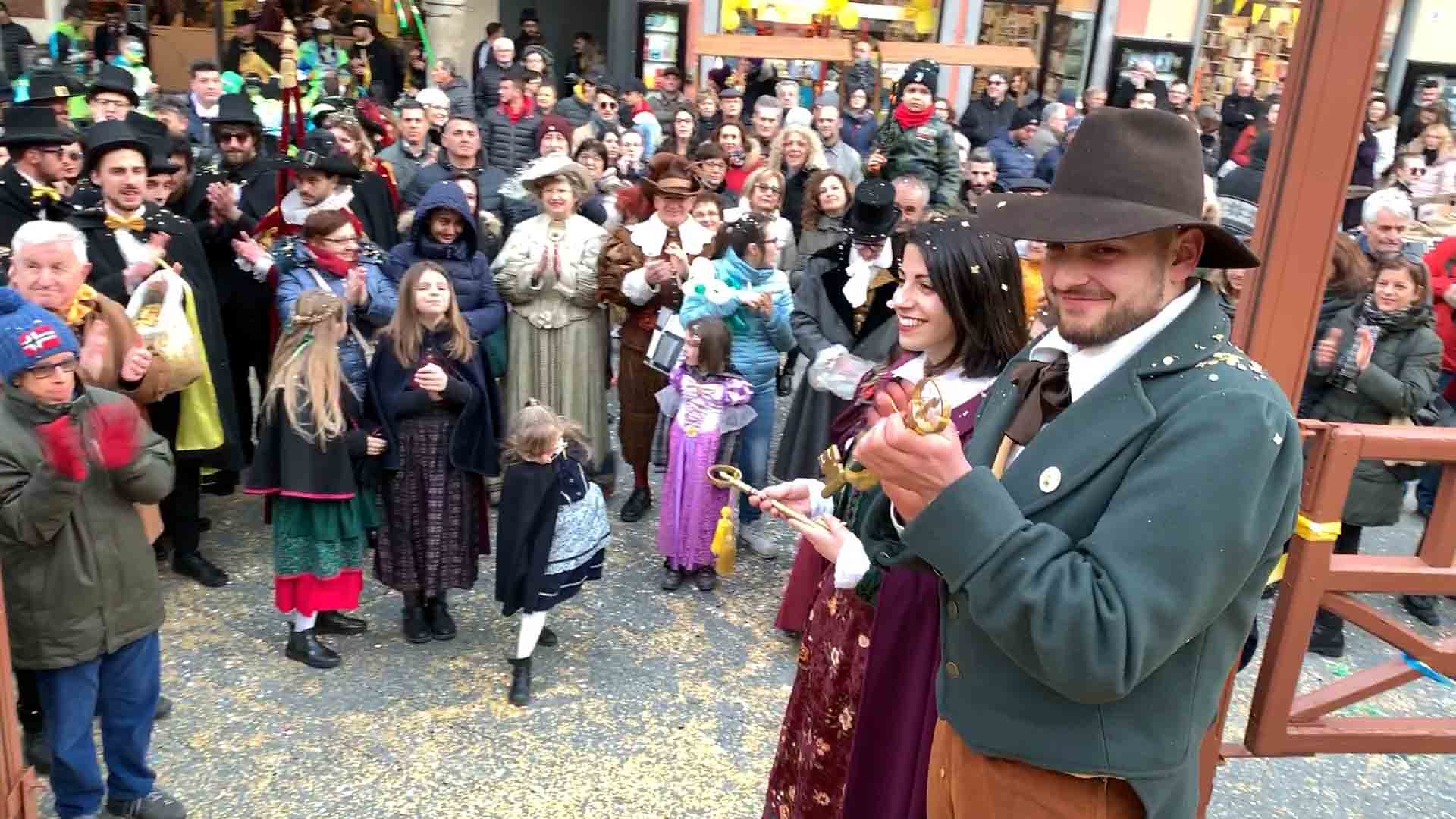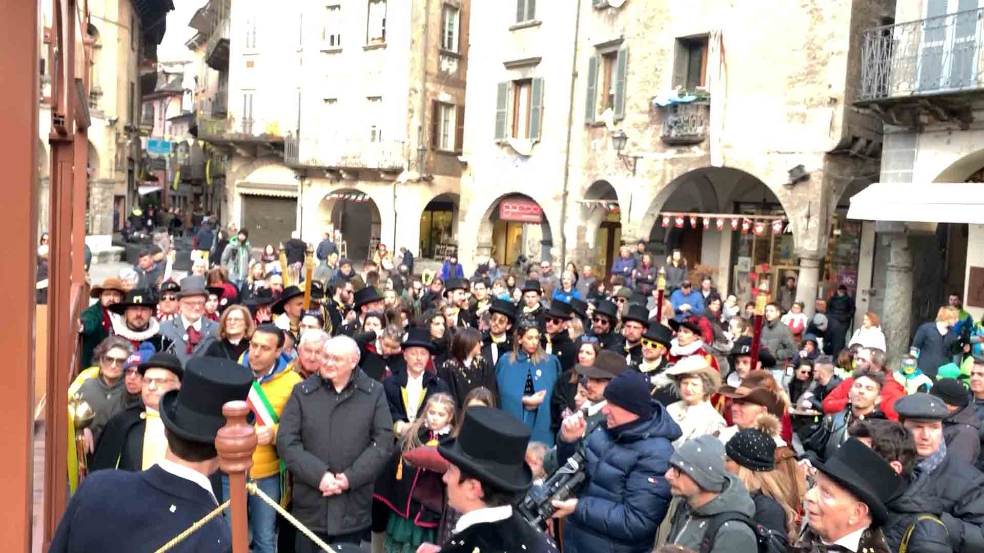 Il sindaco Lucio Pizzi ha consegnato questo pomeriggio in piazza Mercato le chiavi della Città al Togn ed alla Cia, per i prossimi dieci giorni la città sarà loro, pronta ad accogliere il divertimento e l'allegria che i membri del Comitato Polenta e Sciriuii porteranno nelle strade, scuole, e locali pubblici sino al culminare di domenica prossima, con la distribuzione di polenta e salamini e la sfilata. Il presidente del Carnevale Alberto Polacchi, il segretario ed il tesoriere Naldo Poletti e Andrea Truscello, hanno ringraziato i tanti presenti alla cerimonia, tra cui anche due allegre bande provenienti dalla Svizzera, i membri del comitato che si sono prodigati anche quest'anno per la riuscita della manifestazione, le donne del gruppo Folk domese e i membri del Carnevale di Villadossola, che hanno sfilato quest'oggi insieme alla Corte di Mattarella. Prima della consegna delle chiavi c'è stata la cerimonia di consegna del nuovo palco della polenta restaurato, con la benedizione, di cui vi renderemo conto in un successivo articolo. L'ex presidente del Comitato, ed ora socio onorario, Vincenzo Bottone, ha regalato il suo medaglione storico del Carnevale al sindaco Pizzi, che commosso lo ha subito indossato. Da domani il Carnevale impazza, prima alal Cappuccina e poi nei paesi limitrofi. da lunedì il giro nelel scuole da parte di Togn, Cia e Comitato, per portare il nuovo libro sulla storia del Carnevale domese.