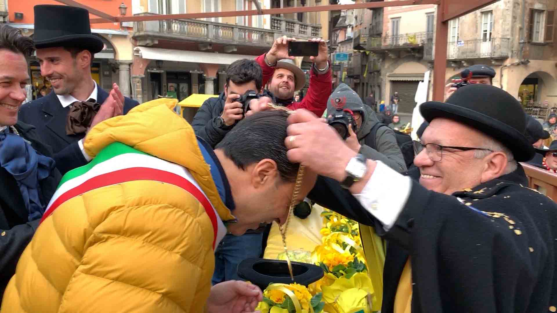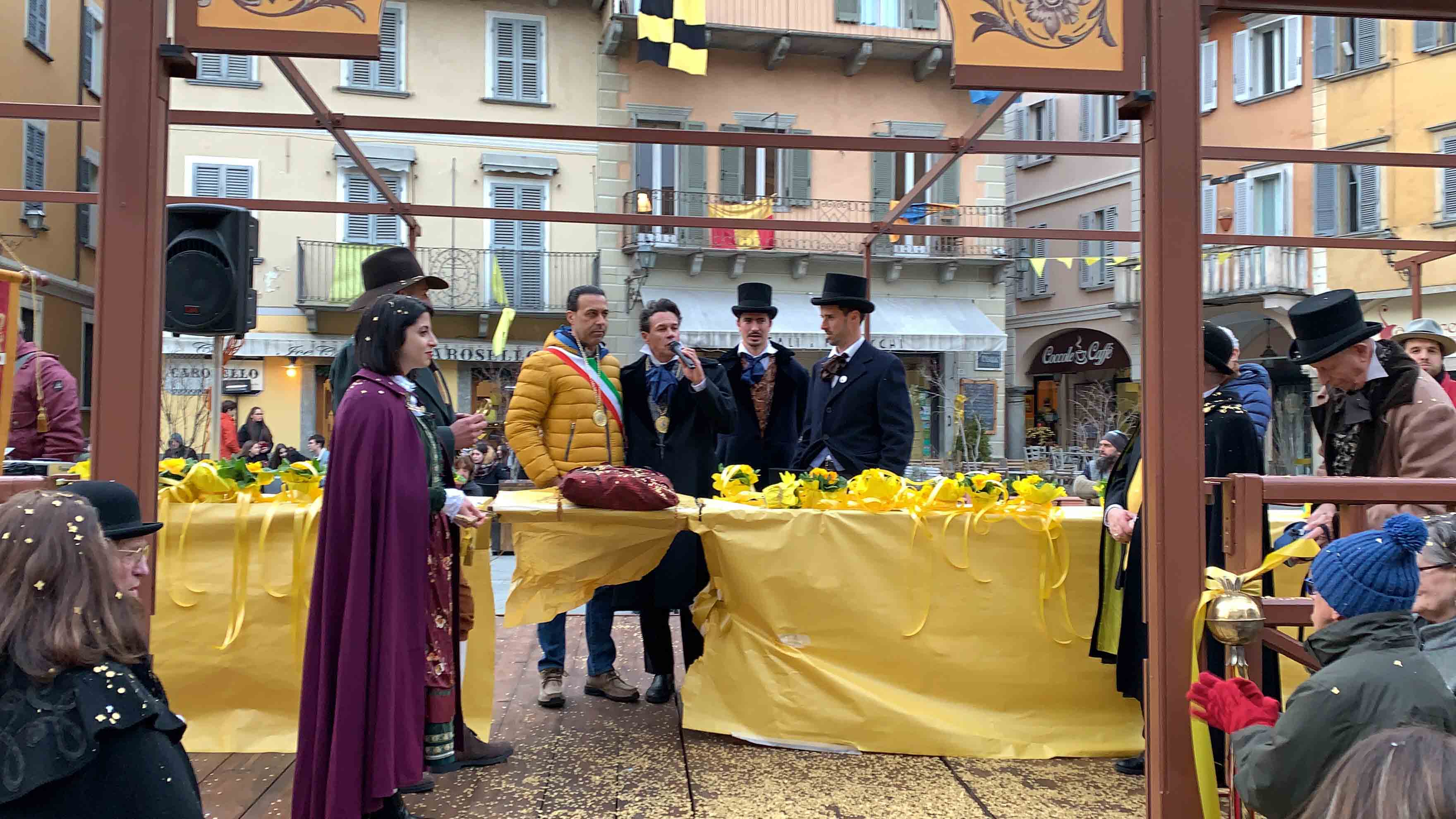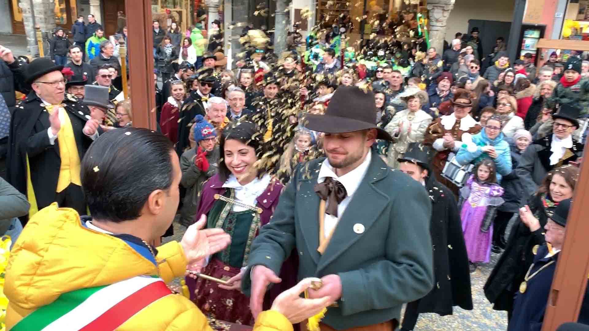 Il sindaco Lucio Pizzi ha consegnato questo pomeriggio in piazza Mercato le chiavi della Città al Togn ed alla Cia, per i prossimi dieci giorni la città sarà loro, pronta ad accogliere il divertimento e l'allegria che i membri del Comitato Polenta e Sciriuii porteranno nelle strade, scuole, e locali pubblici sino al culminare di domenica prossima, con la distribuzione di polenta e salamini e la sfilata. Il presidente del Carnevale Alberto Polacchi, il segretario ed il tesoriere Naldo Poletti e Andrea Truscello, hanno ringraziato i tanti presenti alla cerimonia, tra cui anche due allegre bande provenienti dalla Svizzera, i membri del comitato che si sono prodigati anche quest'anno per la riuscita della manifestazione, le donne del gruppo Folk domese e i membri del Carnevale di Villadossola, che hanno sfilato quest'oggi insieme alla Corte di Mattarella. Prima della consegna delle chiavi c'è stata la cerimonia di consegna del nuovo palco della polenta restaurato, con la benedizione, di cui vi renderemo conto in un successivo articolo. L'ex presidente del Comitato, ed ora socio onorario, Vincenzo Bottone, ha regalato il suo medaglione storico del Carnevale al sindaco Pizzi, che commosso lo ha subito indossato. Da domani il Carnevale impazza, prima alal Cappuccina e poi nei paesi limitrofi. da lunedì il giro nelel scuole da parte di Togn, Cia e Comitato, per portare il nuovo libro sulla storia del Carnevale domese.
