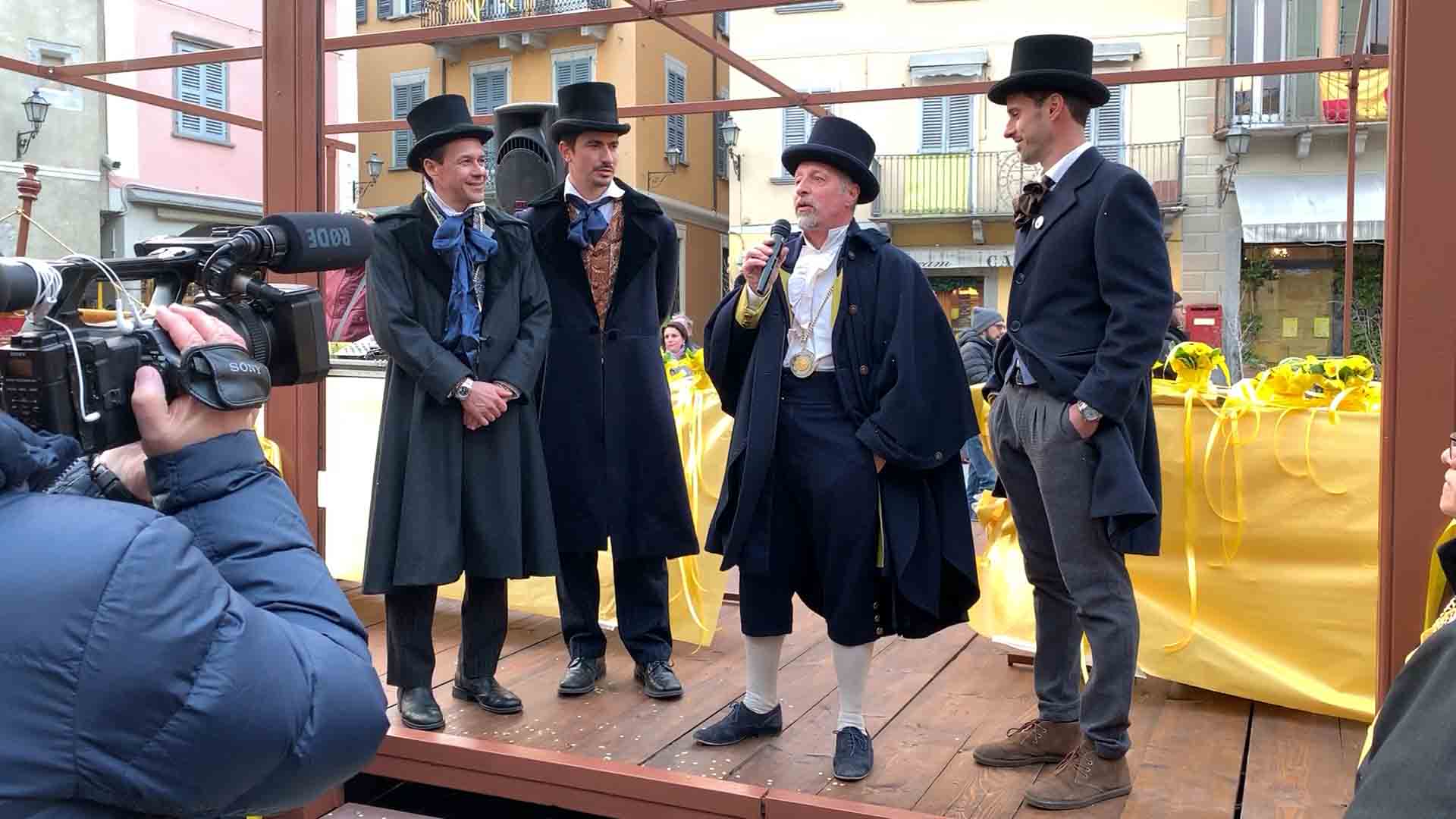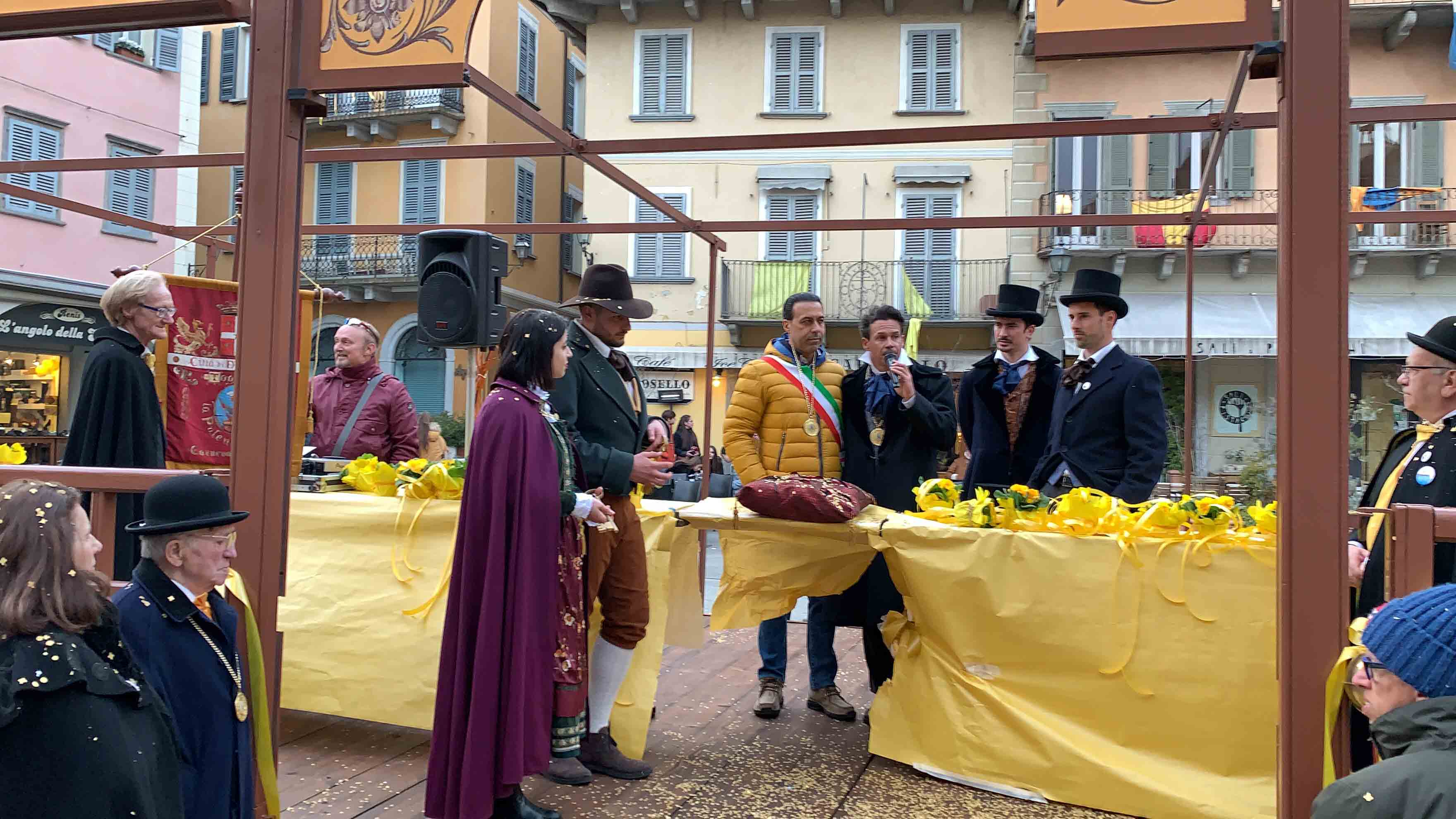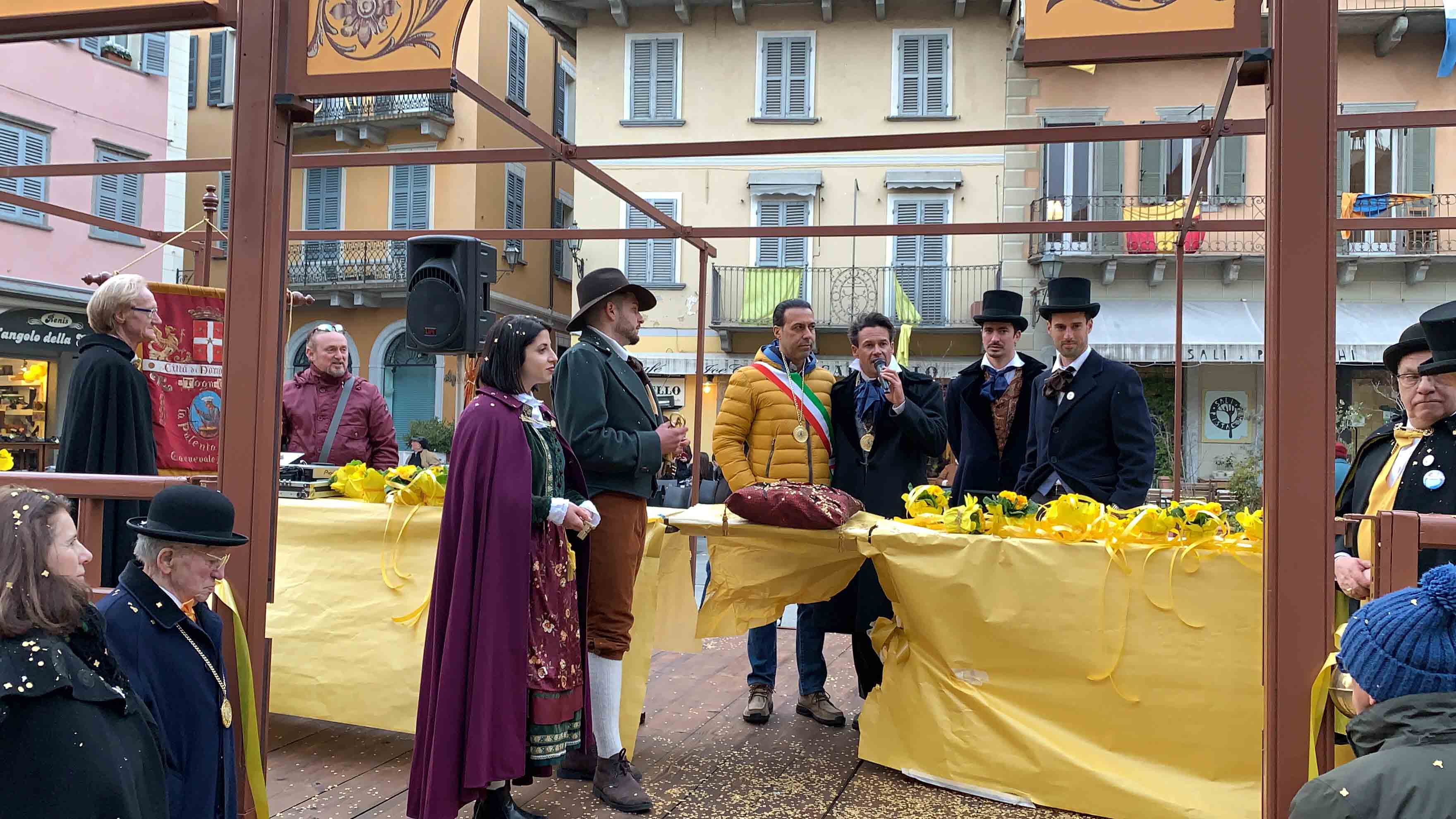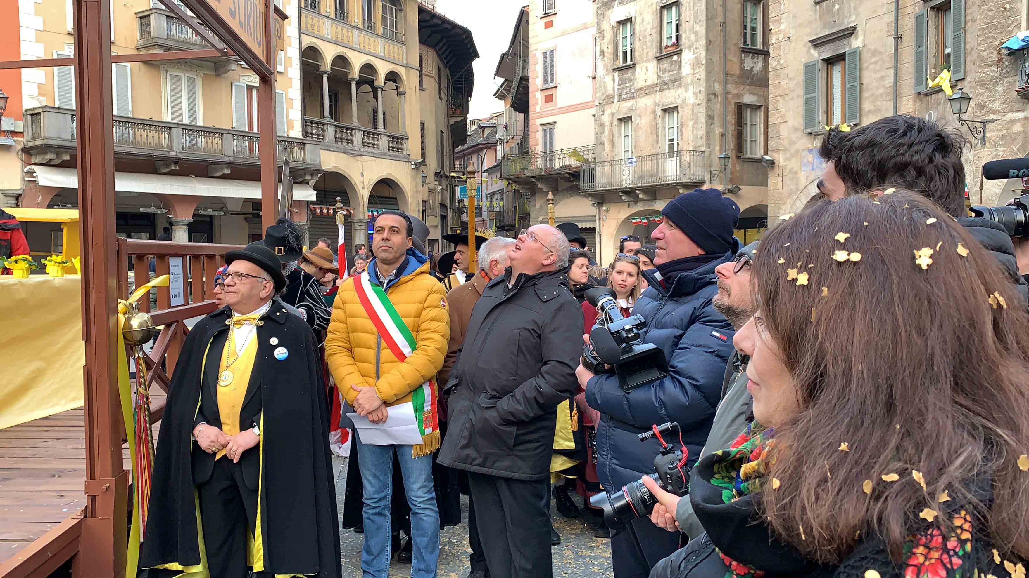 Il sindaco Lucio Pizzi ha consegnato questo pomeriggio in piazza Mercato le chiavi della Città al Togn ed alla Cia, per i prossimi dieci giorni la città sarà loro, pronta ad accogliere il divertimento e l'allegria che i membri del Comitato Polenta e Sciriuii porteranno nelle strade, scuole, e locali pubblici sino al culminare di domenica prossima, con la distribuzione di polenta e salamini e la sfilata. Il presidente del Carnevale Alberto Polacchi, il segretario ed il tesoriere Naldo Poletti e Andrea Truscello, hanno ringraziato i tanti presenti alla cerimonia, tra cui anche due allegre bande provenienti dalla Svizzera, i membri del comitato che si sono prodigati anche quest'anno per la riuscita della manifestazione, le donne del gruppo Folk domese e i membri del Carnevale di Villadossola, che hanno sfilato quest'oggi insieme alla Corte di Mattarella. Prima della consegna delle chiavi c'è stata la cerimonia di consegna del nuovo palco della polenta restaurato, con la benedizione, di cui vi renderemo conto in un successivo articolo. L'ex presidente del Comitato, ed ora socio onorario, Vincenzo Bottone, ha regalato il suo medaglione storico del Carnevale al sindaco Pizzi, che commosso lo ha subito indossato. Da domani il Carnevale impazza, prima alal Cappuccina e poi nei paesi limitrofi. da lunedì il giro nelel scuole da parte di Togn, Cia e Comitato, per portare il nuovo libro sulla storia del Carnevale domese.