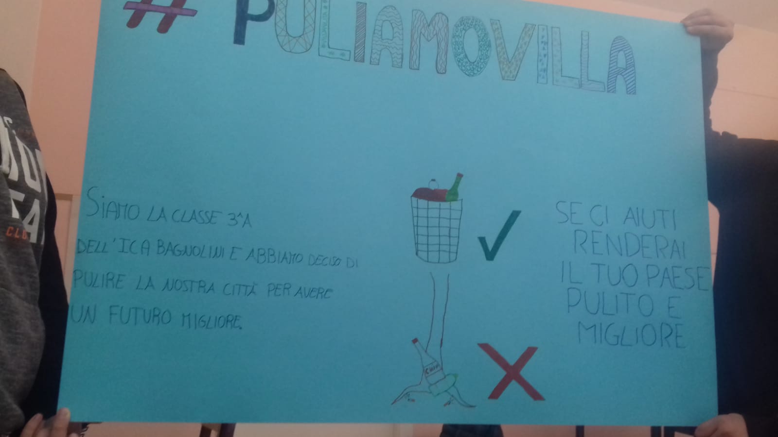 VILLADOSSOLA - 26-03-2019 - Prendendo spunto dalle parole di Neil Armstrong quando mise piede sulla luna, hanno scritto su un cartello azzurro "Un piccolo gesto di ognuno un grande passo per l'umanità". I ragazzi della 3 A dell'I.C.Bagnolini di Villadossola, il gesto lo hanno fatto: pulire gli angoli della città trascurati e in preda dello sporco. L'iniziativa arriva sulla scia delle manifestazioni ambientaliste mosse dall'esempio di Greta Thumberg. Facendo un passo oltre e passando all'azione nel pomeriggio di venerdì scorso i ragazzi si sono trasformati in pulitori. Armati di sacchi neri, guanti e ramazze, con tanta buona volontà hanno lavorato per pulire l'ambiente dando a tutti - adulti inclusi - una lezione di senso civico.