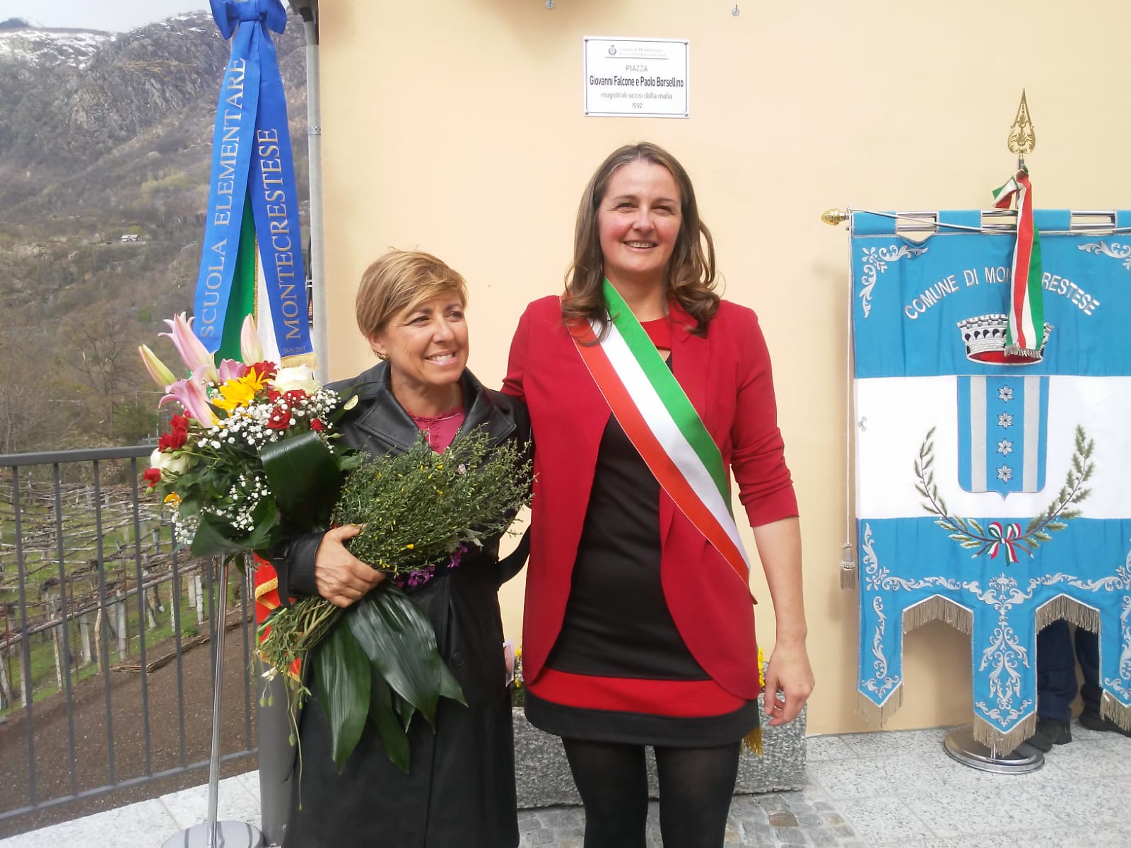 Chiesa di Montecrestese si è tenuta la cerimonia di intitolazione della Piazza (ubicata tra il municipio e la scuola) ai giudici Falcone e Borsellino alla presenza di Fiammetta , figlia del magistrato assassinato da Cosa nostra assieme ai cinque agenti della sua scorta, il 19 luglio 1992 in via D' Amelio a Palermo. Fiammetta Borsellino in questi giorni sta tenendo nel territorio una serie di incontri dedicati alla storia civile e processuale del padre, una pagina di storia importante che merita di essere ascoltata anche alla luce delle vicissitudini processuali non ancora concluse. " Credo che questo lavoro di condivisione sia molto importante per far camminare le idee e i valori di chi soltanto apparentemente non c'è più " ha detto Fiammetta Borsellino. L'intitolazione è stata preceduta da un incontro con sessanta alunni delle cinque classi della Scuola Primaria G.B.Palletta. " È stato un incontro molto coinvolgente ed emozionante che ha visto i bambini molto attivi ed interessati " ha dichiarato la sindaca di Montecrestese, Silvia Miguidi. Un legame di amicizia unisce peraltro Fiammetta Borsellino al primo cittadino di Montecrestese, amicizia che riguarda anche le loro figlie, come entrambe hanno dichiarato. Domani Fiammetta Borsellino sarà alle 10 al teatro della Cappuccina di Domodossola per un incontro con le classi delle Scuole di II grado aderenti al progetto - IS Marconi Galletti Einaudi, Liceo G.Spezia, Istituto Professionale Alberghiero Rosmini, mentre alle ore 12.15 è in programma l'incontro con le classi di I grado dell’IC Casetti di Crevoladossola. I due incontri di natura esclusivamente didattica sono organizzati dall' Unione Montana Alta Ossola.