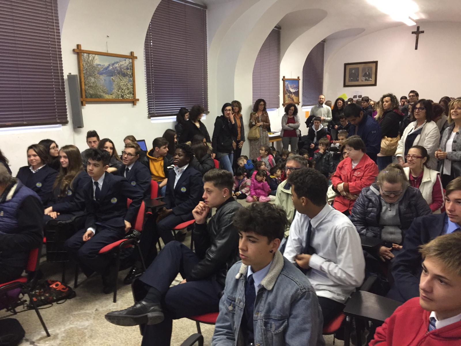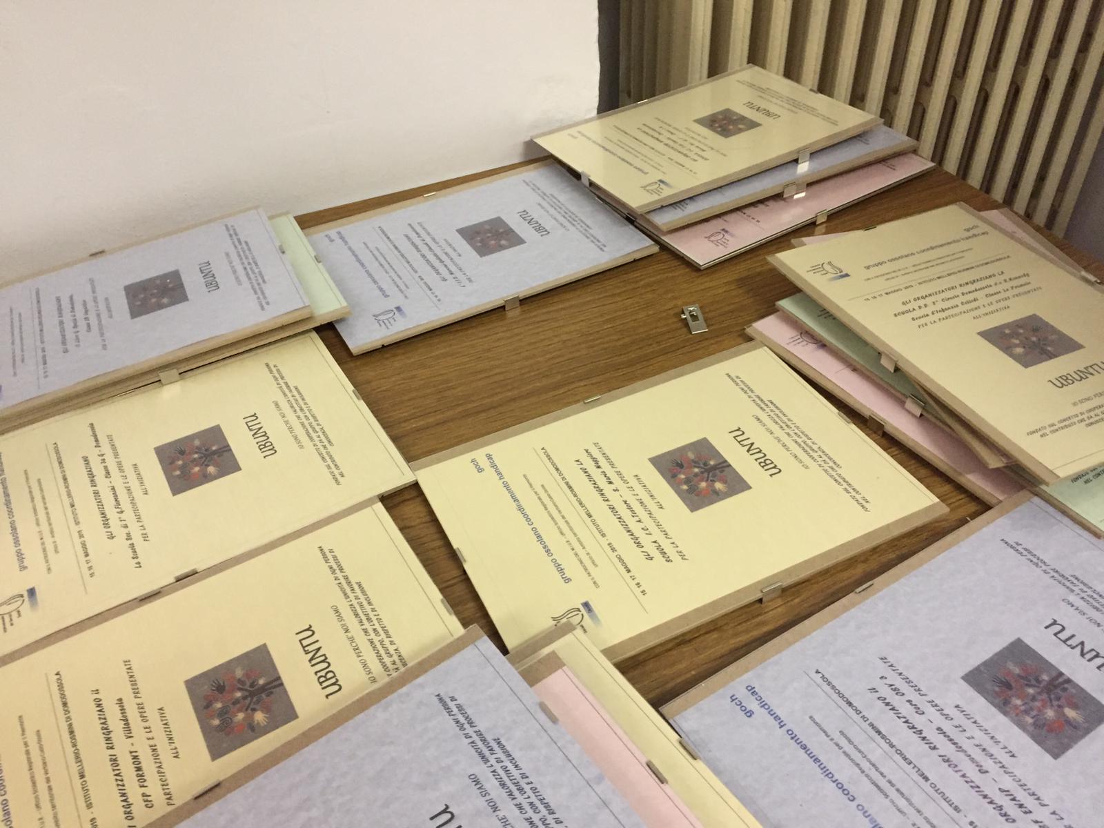DOMODOSSOLA- 18-05-2019- E' stato presentato nei giorni scorsi all’Istituto Rosmini di Domodossola, il progetto “Ubuntu, io sono perché noi siamo” realizzato dal Gruppo Ossolano Coordinamento Handicap insieme ad una decina di istituti scolastici locali. Ubuntu significa comunità: “L'abbiamo realizzata- così Giancarlo Lotto, uno dei promotori del progetto- in collaborazione col Ciss Ossola ed altre cooperative ed associazioni che si occupano di disabilità nel nostro territorio, abbiamo coinvolto scuole di ogni ordine e grado, hanno partecipato una trentina di classi su dieci scuole hanno prodotto elaborati vari, di cui alcuni sono stati esposti. Ogni classe che ha partecipato ha ricevuto un diploma di ringraziamento, lo scopo è quello di far lavorare i ragazzi sulle differenze, sia sulle disabilità, ma anche sulle differenze”.Alla giornata hanno partecipato anche il presidente del Ciss Ossola, Giorgio Vanni e Paola Castiglioni, della neuropsichiatria infantile dell’Asl.