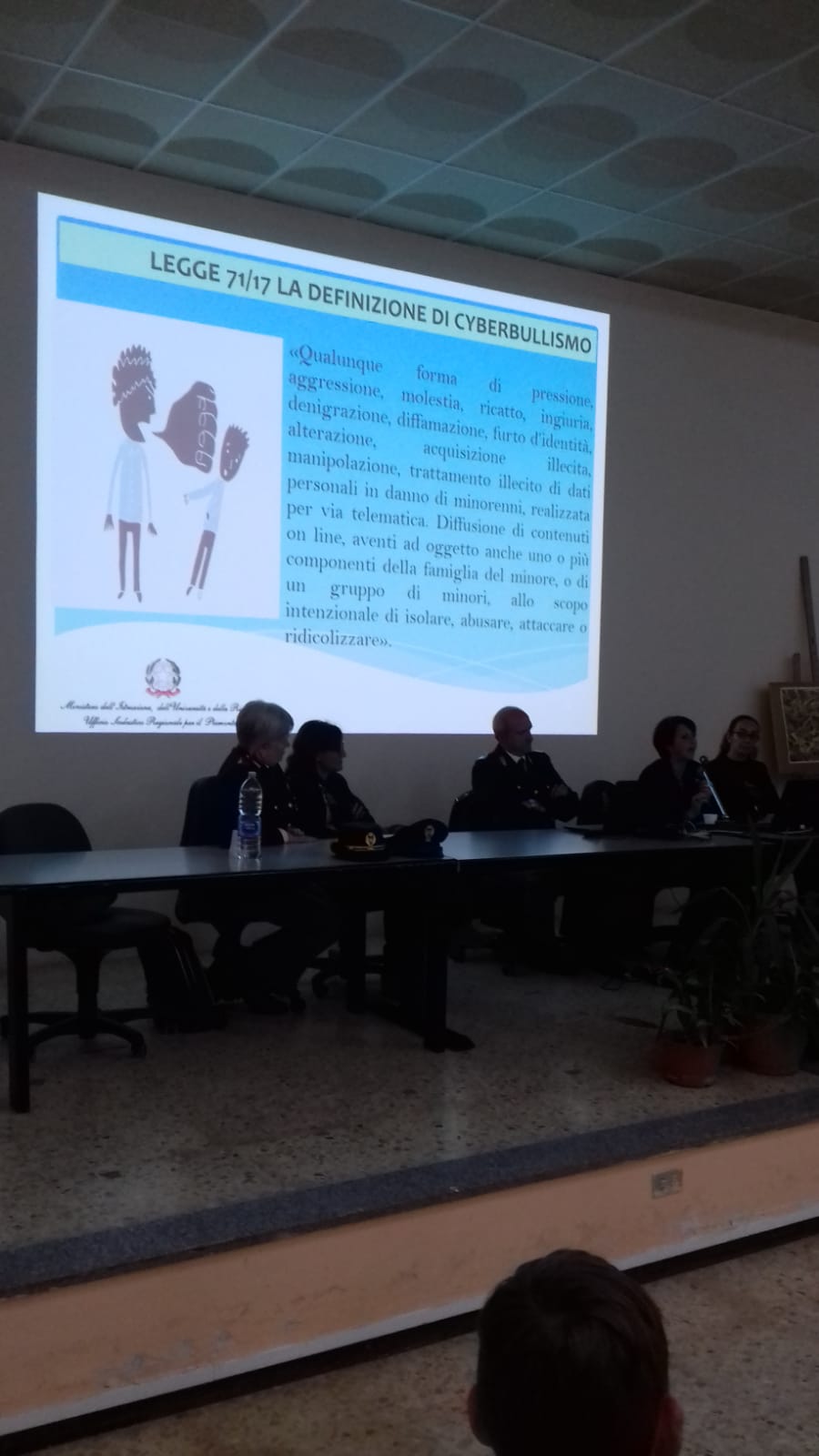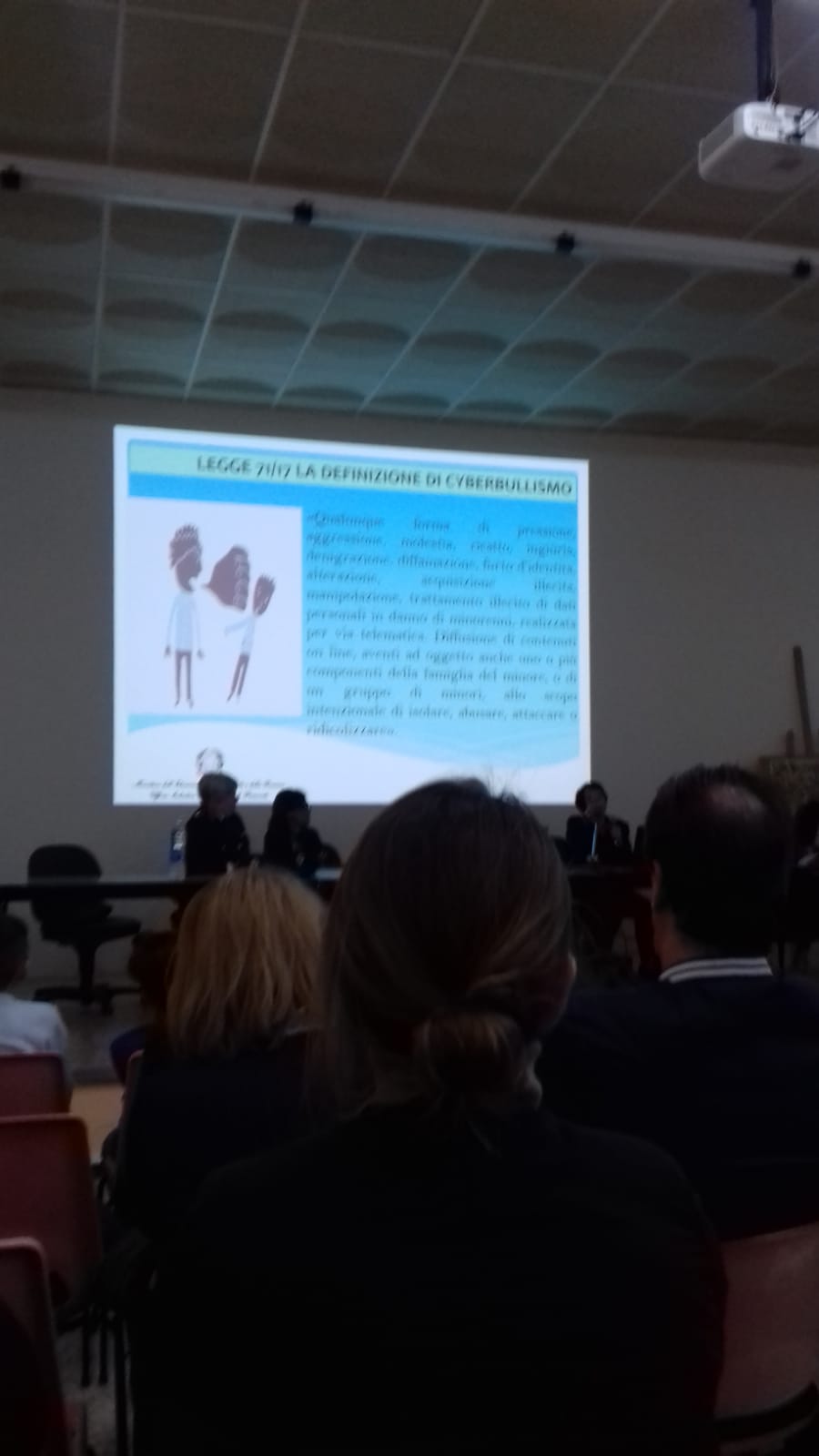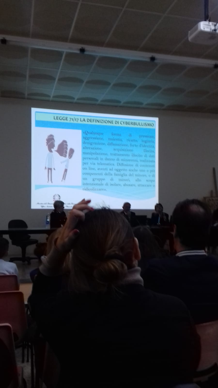 Elena Ferrara, prima firmataria della legge contro il cyberbullismo, ha illustrati i tratti salienti di questa importante legge e ha più volte sottolineato la necessità di contrastare un fenomeno così grave che a volte può causare addirittura il suicidio della vittima. Questo è stato il caso di Carolina Picchio, alunna della prof.ssa Ferrara che insegnava musica nella scuola che Carolina frequentava e che proprio partendo da un’esperienza così dolorosa ha deciso di perseguire l’idea di ottenere in Italia una legge contro il cyberbullismo. Dopo un lungo e non semplice percorso finalmente nel 2017 è stata firmata la legge 71 che risulta essere la prima legge in Europa contro il cyberbullismo.