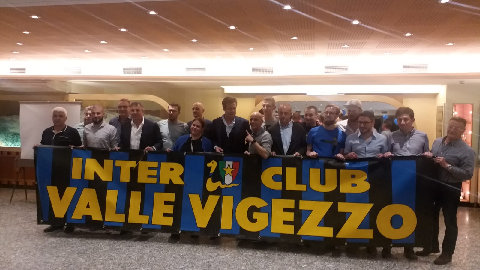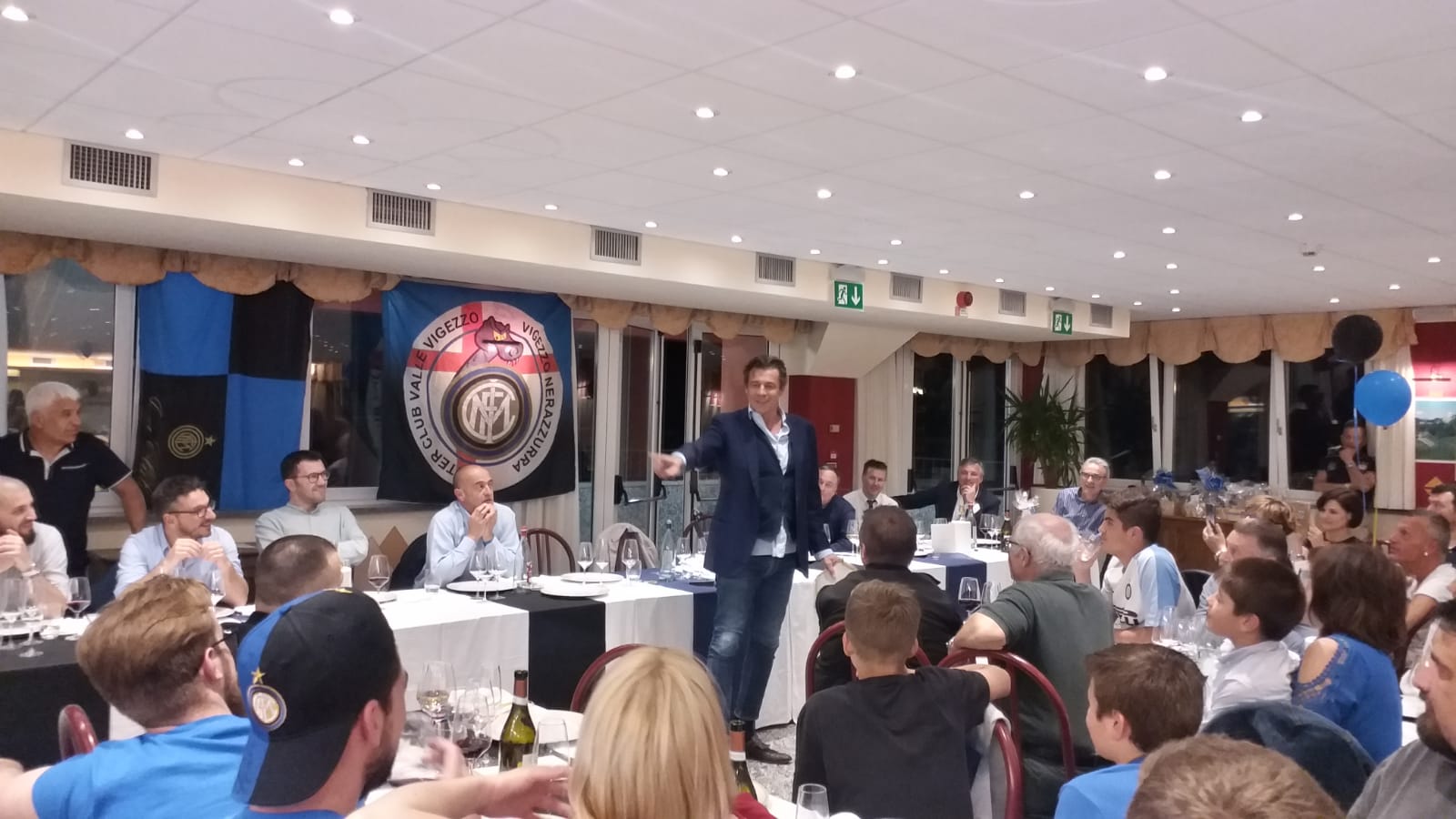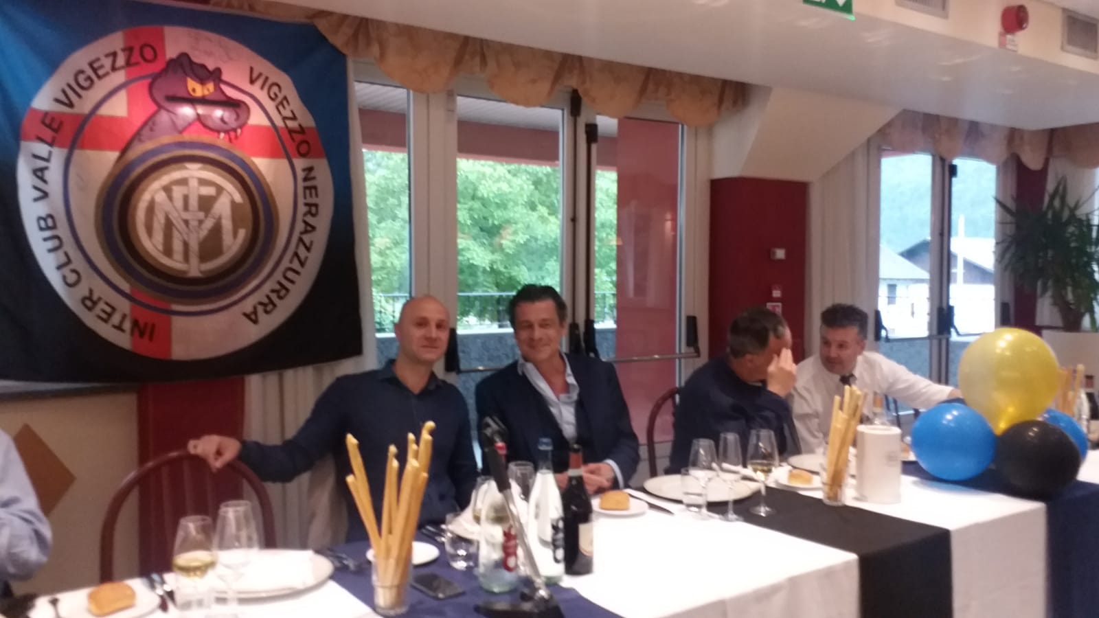 DRUOGNO - 15-06-2019 - Oltre 130 persone venerdì sera alla Stella Alpina per la cena sociale organizzata dall'Inter club Valle Vigezzo. Ospite d'onore Nicola Berti, ex calciatore dell'Inter (ben 10 stagioni) e della Nazionale italiana. Dopo l'aperitivo di benvenuto consumato nel giardino e il "chech-in" fatto dalle ragazze neroazzurre, i partecipanti si sono accomodati al ristorante dove è arrivato Berti che non ha risparmiato saluti, autografi e battute com'è la sua indole. Al termine del convivio sono stati consegnati dei riconoscimenti al presidente dell'Inter club di Galliate Massimo Foradini, al coordinatore dell'Emilia Antonio Arata, al vice coordinatore di Piemonte e Valle d'Aosta Alberto Bacchetta, al coordinatore della Lombardia Andrea Viglieno e all'ex presidente del sodalizio vigezzino Marino Berini. La serata è stata anche l'occasione per il presidente in carica Kevin Cantadore di mostrare un assegno simbolico di 700 euro raccolti lo scorso anno grazie al record di iscrizioni e che saranno devoluti all'Inter campus. Chi ha più intrattenuto con i suoi aneddoti, le sue gag e il comportamento estroso è stato Nicola Berti, noto amante, oltre che del pallone, del buon vivere.