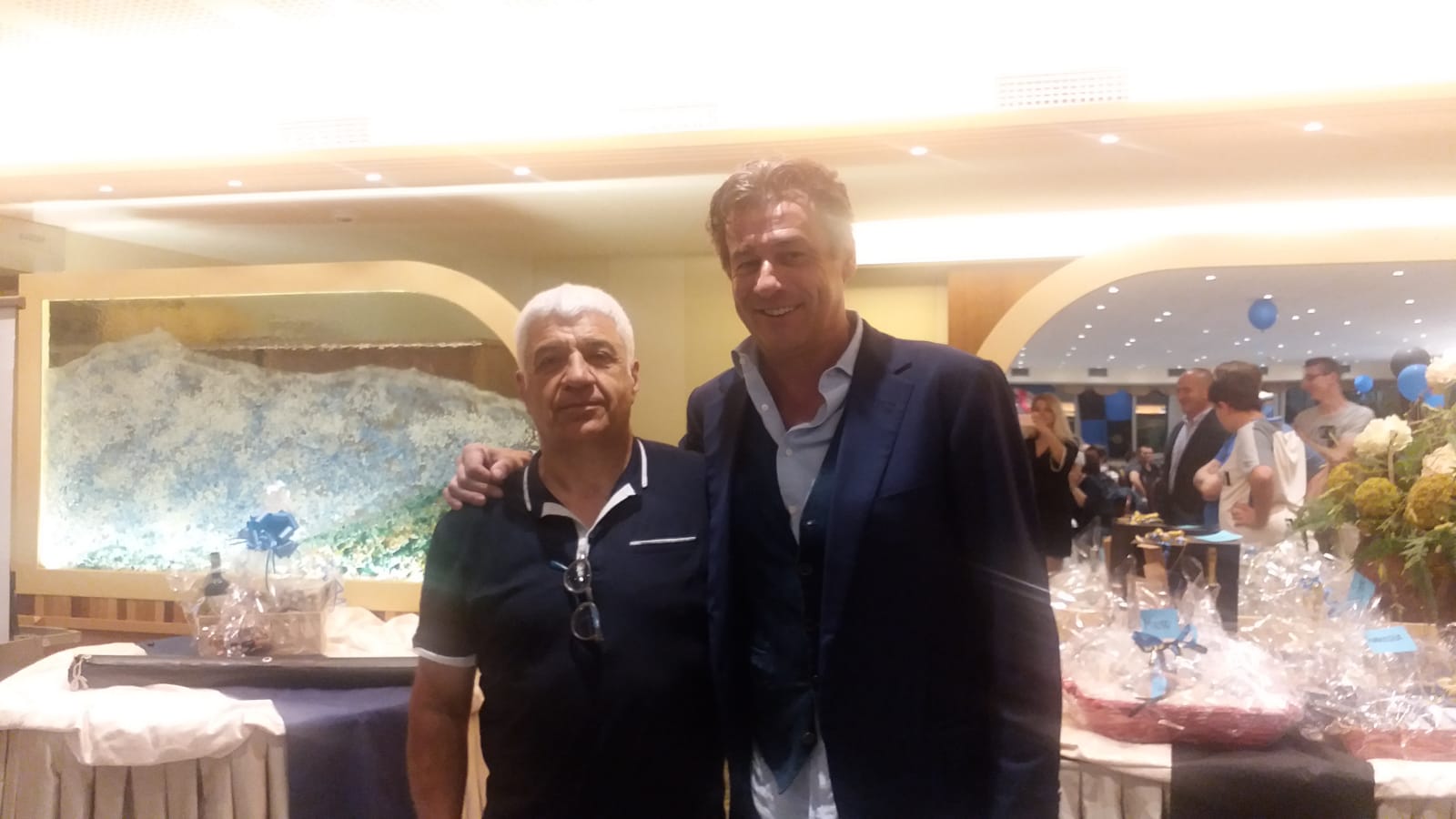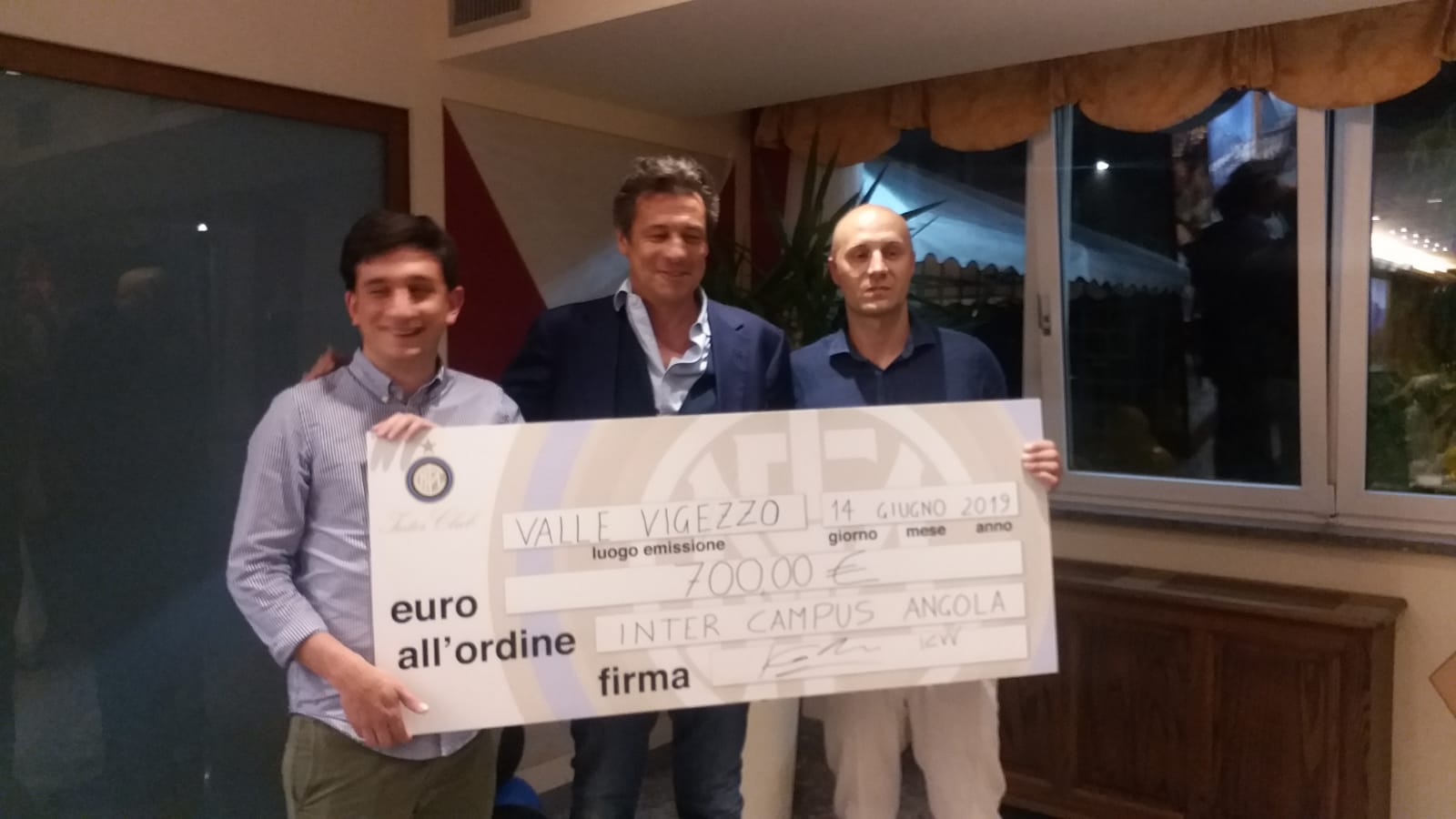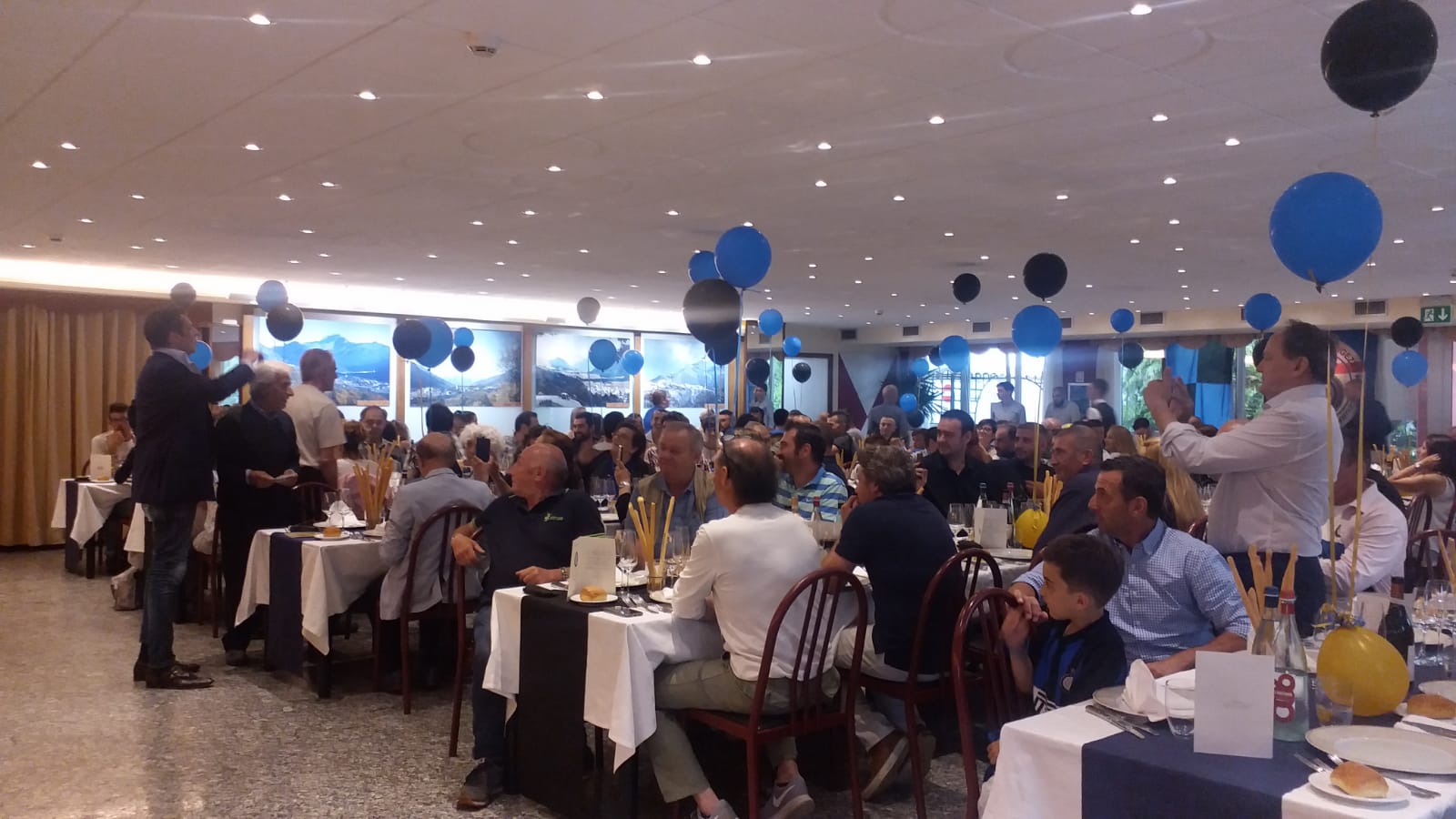 DRUOGNO - 15-06-2019 - Oltre 130 persone venerdì sera alla Stella Alpina per la cena sociale organizzata dall'Inter club Valle Vigezzo. Ospite d'onore Nicola Berti, ex calciatore dell'Inter (ben 10 stagioni) e della Nazionale italiana. Dopo l'aperitivo di benvenuto consumato nel giardino e il "chech-in" fatto dalle ragazze neroazzurre, i partecipanti si sono accomodati al ristorante dove è arrivato Berti che non ha risparmiato saluti, autografi e battute com'è la sua indole. Al termine del convivio sono stati consegnati dei riconoscimenti al presidente dell'Inter club di Galliate Massimo Foradini, al coordinatore dell'Emilia Antonio Arata, al vice coordinatore di Piemonte e Valle d'Aosta Alberto Bacchetta, al coordinatore della Lombardia Andrea Viglieno e all'ex presidente del sodalizio vigezzino Marino Berini. La serata è stata anche l'occasione per il presidente in carica Kevin Cantadore di mostrare un assegno simbolico di 700 euro raccolti lo scorso anno grazie al record di iscrizioni e che saranno devoluti all'Inter campus. Chi ha più intrattenuto con i suoi aneddoti, le sue gag e il comportamento estroso è stato Nicola Berti, noto amante, oltre che del pallone, del buon vivere.