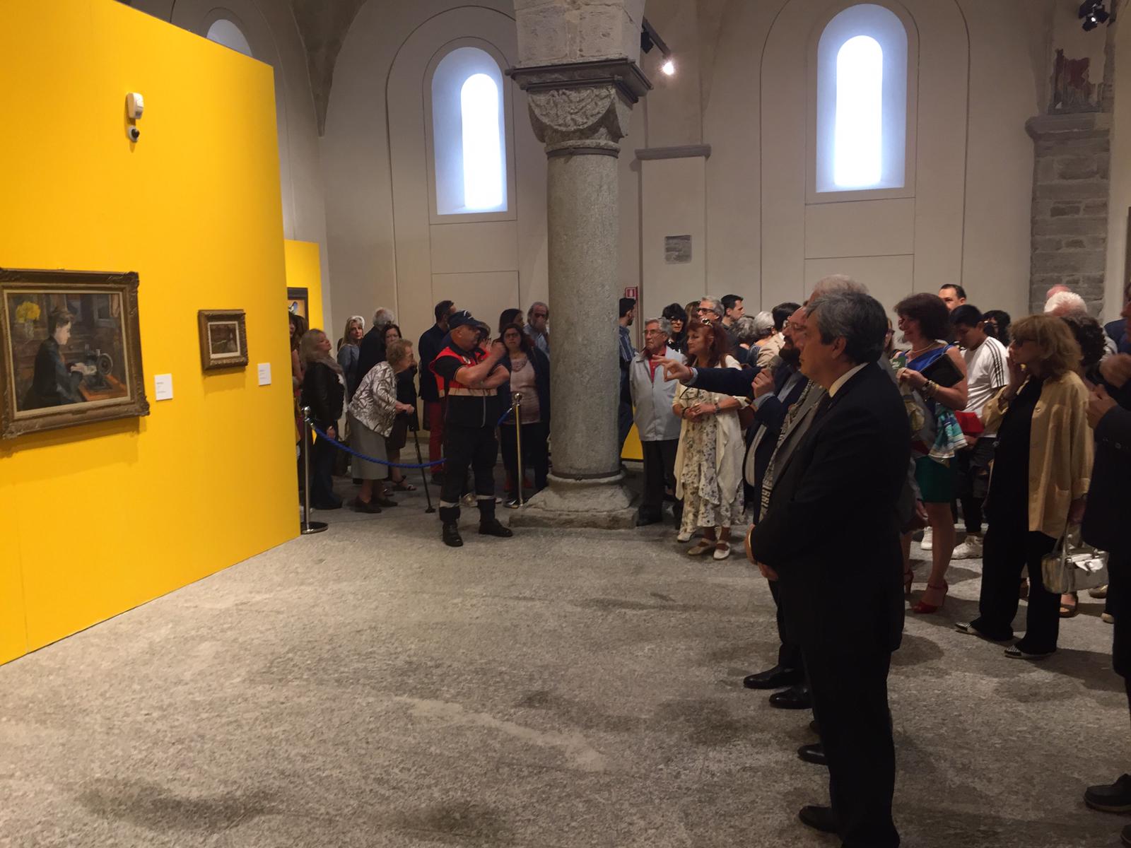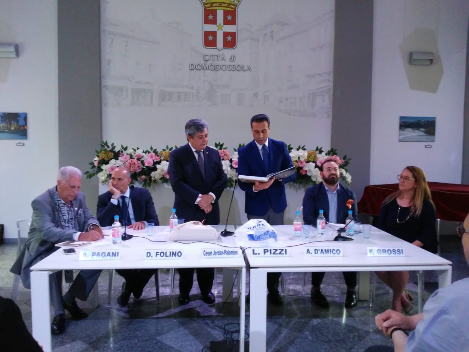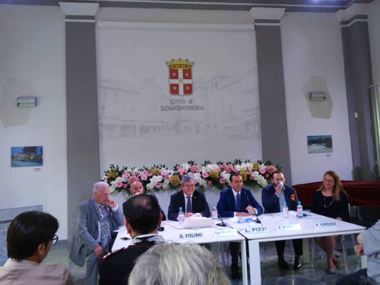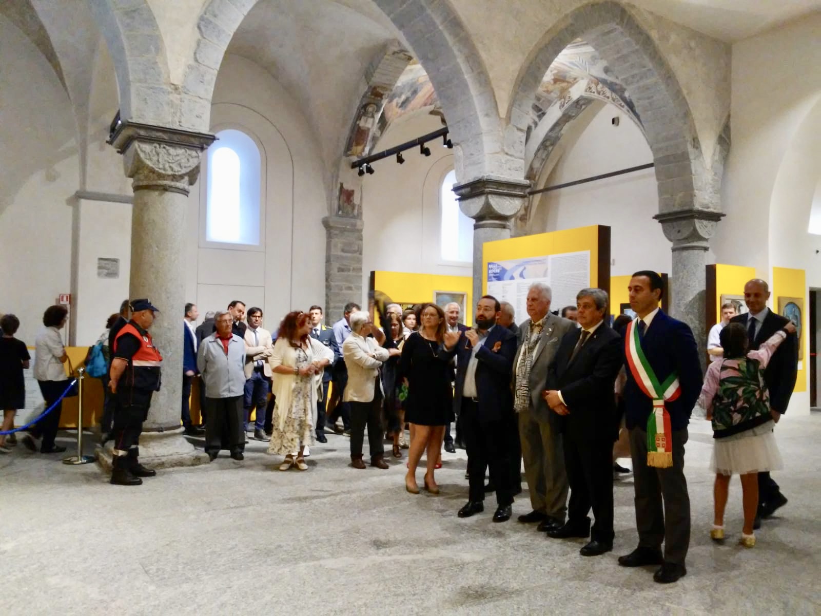 DOMODOSSOLA- 22-06-2019- L'atteso evento espositivo dell'estate domese finalmente ha visto l'apertura ufficiale oggi pomeriggio con il taglio del nastro presso Palazzo San Francesco alla presenza delle autorità civili, militari e religiose, e preceduto dalla presentazione presso la Cappella Mellerio. L'assessore alla cultura Daniele Folino ha introdotto le relazioni e i saluti del sindaco Lucio Pizzi, della rappresentazione della Fondazione Comunitaria del VCO, Flavia Grossi, del presidente della Fondazione Ruminelli, Antonio Pagani e quindi ha lasciato la parola all'ospite d'onore, Console Generale del Perù in Italia, Cesar Jordan - Palomino il quale ha scambiato doni con il sindaco e con l'ing. Pagani, rinnovando l'amicizia e la vicinanza tra il paese da lui rappresentato e la città di Domodossola. Infine il curatore della mostra Antonio D' Amico ha illustrato il complesso percorso di organizzazione dell'esposizione e quali sono state le linee ideali che hanno condotto la scelta delle opere e le modalità di presentazione al pubblico. Il percorso espositivo ci riporta alla Domodossola a cavallo tra otto e novecento e collima con le avanguardie dei primi trent'anni del secolo scorso. Dall' epopea di Chàvez all'impresa anche ingegneristica della galleria del Sempione e al primo autoveicolo a motore immatricolato nella provincia di Novara si passa alle opere immortali dei grandi futuristi, dedicate alla velocità, alle macchine a vapore e all'innovazione tecnica che ha informato l'inizio del secolo della modernità. La grande mostra fortemente voluta dal Comune di Domodossola in collaborazione con la Fondazione Paola Angela Ruminelli , con il sostegno della Fondazione Comunitaria del VCO, vede la collaborazione con il MART Museo di Arte Moderna e Contemporanea di Trento e Rovereto e dell' Associazione Musei dell' Ossola oltre al patrocinio del Mibac - Ministero per i beni e le attività culturali e da Regione Piemonte. Un evento importante a livello internazionale, vista la la presenza del Console Generale del Perù: in esposizione infatti tra le opere futuriste anche il reperto del Berliot con il quale Chàvez affrontò l'immortale ma fatale impresa nei cieli sulle Alpi compiuta nel 1910 e di Tullio Crali " Omaggio a Chàvez" dipinto nel 1960, futurista pur oltre la tradizionale collocazione del movimento. L'esposizione gode di una precisa collocazione temporale ed una evocativa presenza di documenti fotografici e scritti di Balla, di D'Annunzio, Stravinski, ( tra cui il cimelio del volo su Vienna donato dal Vate a Timina Caproni, membro della famiglia Caproni, costruttori di aeromobili nell'hinterland milanese ai velivoli dei quali è dedicato lo studio di Balla per una decorazione di un piatto). In mostra oltre settanta opere di Fortunato Depero, Umberto Boccioni, Giacomo Balla, Pippo Rizzo, Tullio Crali e tanti altri, si interfacciano con i manichini esposti all' Esposizione Internazionale di Milano del 1881 con i costumi tradizionali della Valle Anzasca e Antigorio, la prima macchina immatricolata nella provincia di Novara che aveva valicato il Sempione, e l'ala dell'aereoplano di Chàvez .
