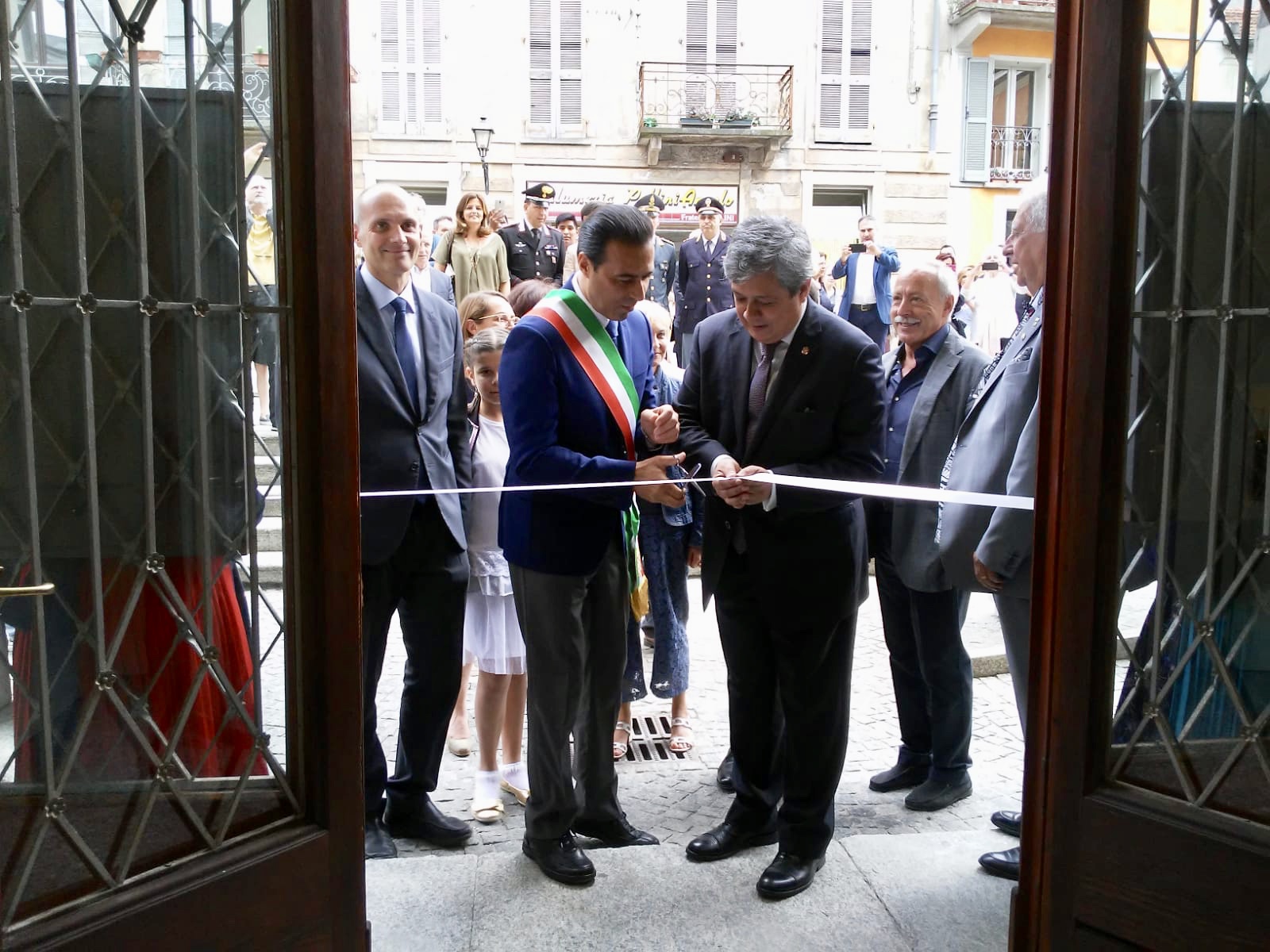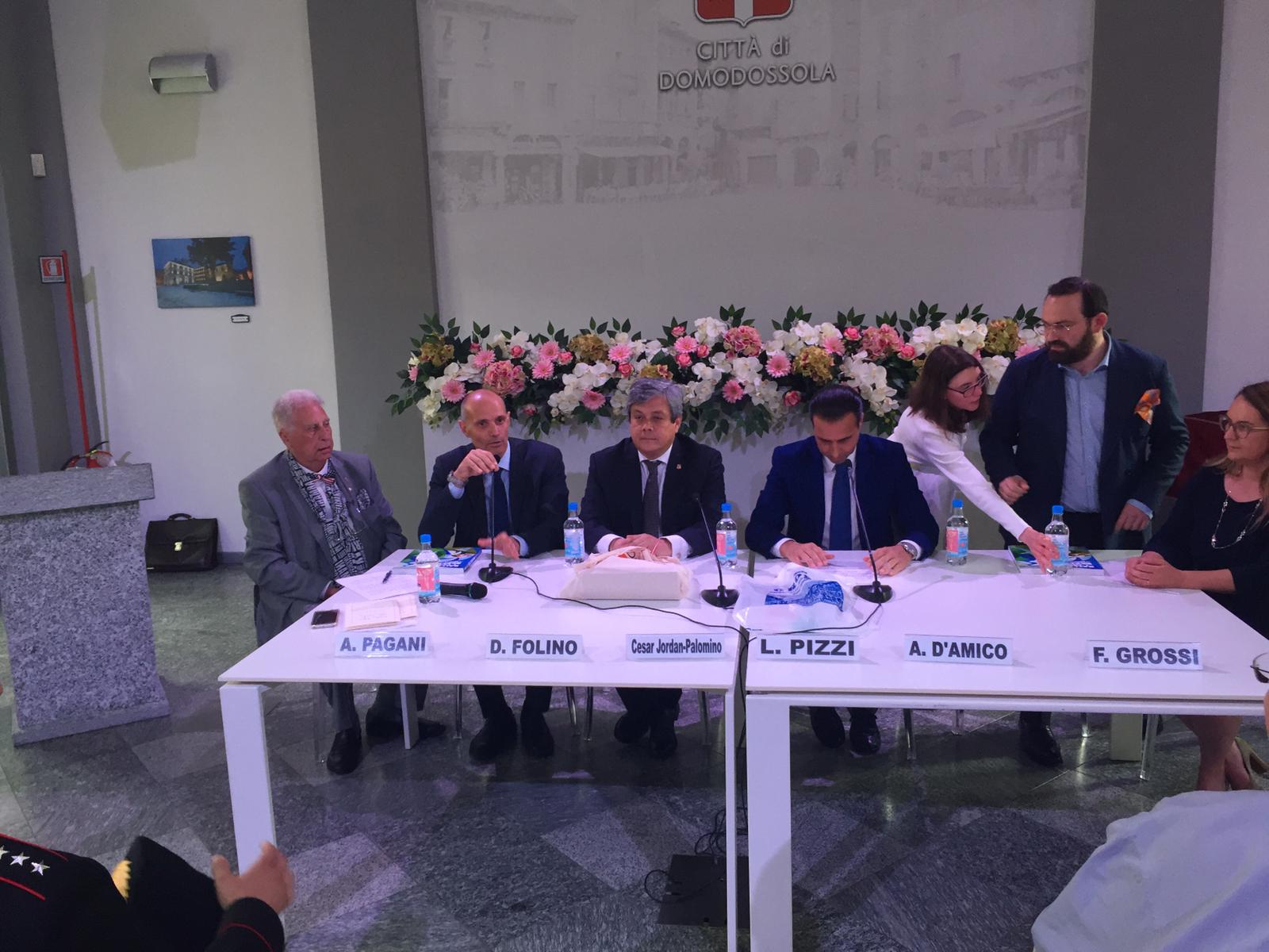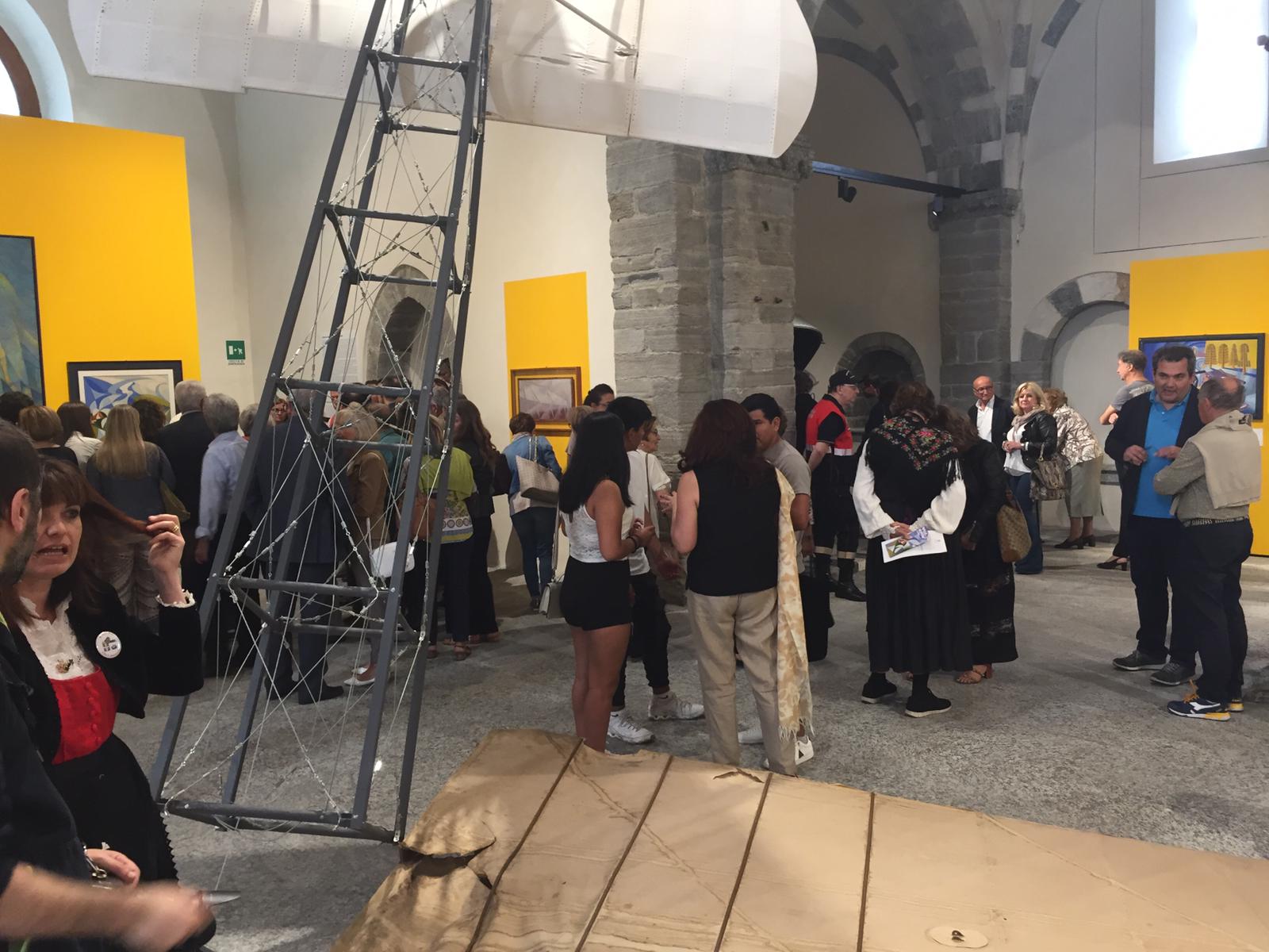 DOMODOSSOLA- 22-06-2019- L'atteso evento espositivo dell'estate domese finalmente ha visto l'apertura ufficiale oggi pomeriggio con il taglio del nastro presso Palazzo San Francesco alla presenza delle autorità civili, militari e religiose, e preceduto dalla presentazione presso la Cappella Mellerio. L'assessore alla cultura Daniele Folino ha introdotto le relazioni e i saluti del sindaco Lucio Pizzi, della rappresentazione della Fondazione Comunitaria del VCO, Flavia Grossi, del presidente della Fondazione Ruminelli, Antonio Pagani e quindi ha lasciato la parola all'ospite d'onore, Console Generale del Perù in Italia, Cesar Jordan - Palomino il quale ha scambiato doni con il sindaco e con l'ing. Pagani, rinnovando l'amicizia e la vicinanza tra il paese da lui rappresentato e la città di Domodossola. Infine il curatore della mostra Antonio D' Amico ha illustrato il complesso percorso di organizzazione dell'esposizione e quali sono state le linee ideali che hanno condotto la scelta delle opere e le modalità di presentazione al pubblico. Il percorso espositivo ci riporta alla Domodossola a cavallo tra otto e novecento e collima con le avanguardie dei primi trent'anni del secolo scorso. Dall' epopea di Chàvez all'impresa anche ingegneristica della galleria del Sempione e al primo autoveicolo a motore immatricolato nella provincia di Novara si passa alle opere immortali dei grandi futuristi, dedicate alla velocità, alle macchine a vapore e all'innovazione tecnica che ha informato l'inizio del secolo della modernità. La grande mostra fortemente voluta dal Comune di Domodossola in collaborazione con la Fondazione Paola Angela Ruminelli , con il sostegno della Fondazione Comunitaria del VCO, vede la collaborazione con il MART Museo di Arte Moderna e Contemporanea di Trento e Rovereto e dell' Associazione Musei dell' Ossola oltre al patrocinio del Mibac - Ministero per i beni e le attività culturali e da Regione Piemonte. Un evento importante a livello internazionale, vista la la presenza del Console Generale del Perù: in esposizione infatti tra le opere futuriste anche il reperto del Berliot con il quale Chàvez affrontò l'immortale ma fatale impresa nei cieli sulle Alpi compiuta nel 1910 e di Tullio Crali " Omaggio a Chàvez" dipinto nel 1960, futurista pur oltre la tradizionale collocazione del movimento. L'esposizione gode di una precisa collocazione temporale ed una evocativa presenza di documenti fotografici e scritti di Balla, di D'Annunzio, Stravinski, ( tra cui il cimelio del volo su Vienna donato dal Vate a Timina Caproni, membro della famiglia Caproni, costruttori di aeromobili nell'hinterland milanese ai velivoli dei quali è dedicato lo studio di Balla per una decorazione di un piatto). In mostra oltre settanta opere di Fortunato Depero, Umberto Boccioni, Giacomo Balla, Pippo Rizzo, Tullio Crali e tanti altri, si interfacciano con i manichini esposti all' Esposizione Internazionale di Milano del 1881 con i costumi tradizionali della Valle Anzasca e Antigorio, la prima macchina immatricolata nella provincia di Novara che aveva valicato il Sempione, e l'ala dell'aereoplano di Chàvez .