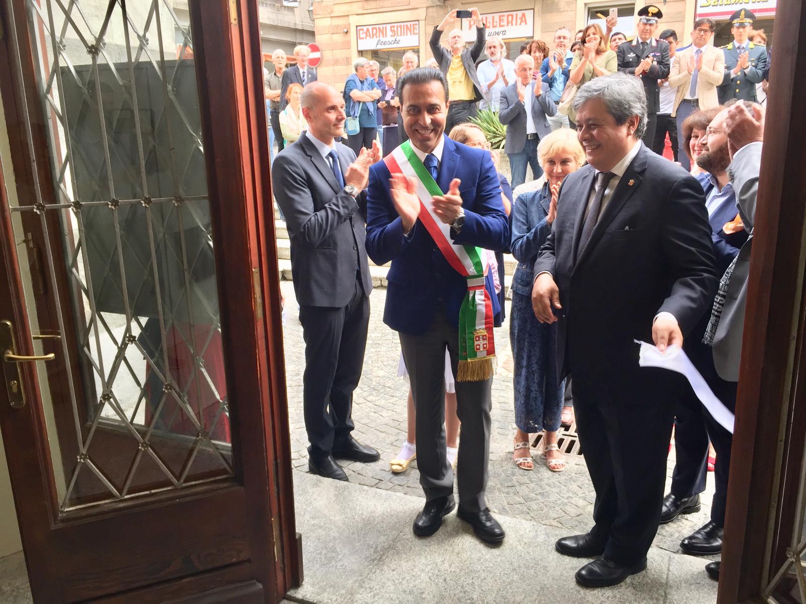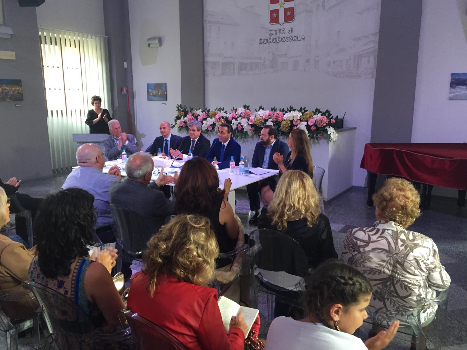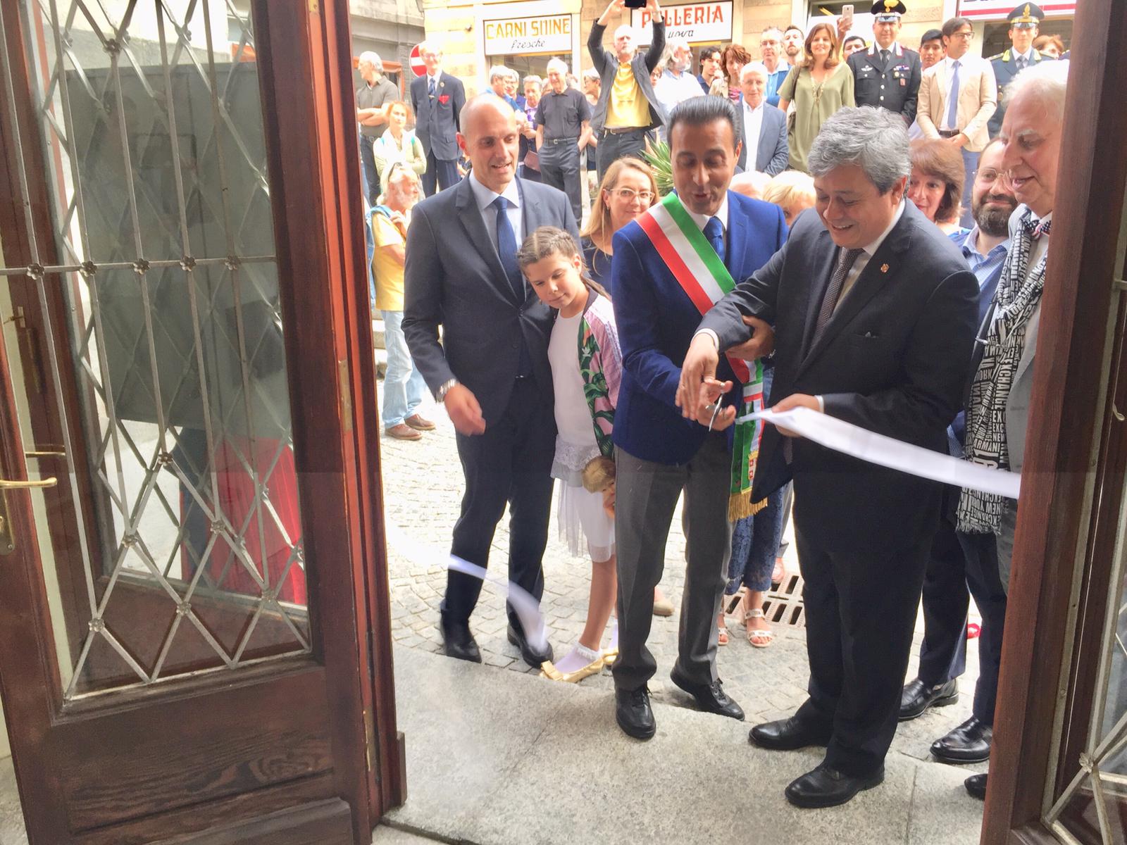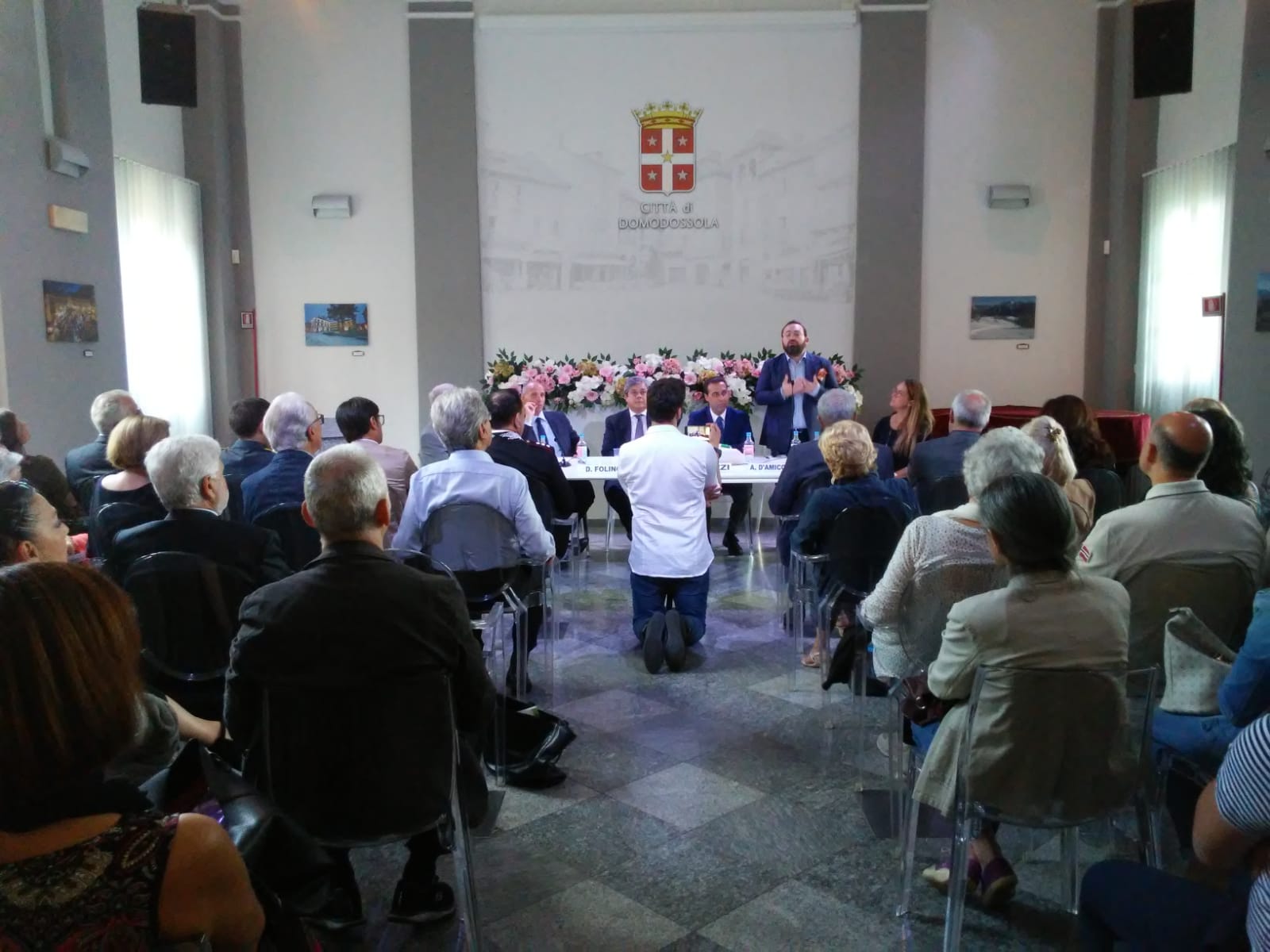 DOMODOSSOLA- 22-06-2019- L'atteso evento espositivo dell'estate domese finalmente ha visto l'apertura ufficiale oggi pomeriggio con il taglio del nastro presso Palazzo San Francesco alla presenza delle autorità civili, militari e religiose, e preceduto dalla presentazione presso la Cappella Mellerio. L'assessore alla cultura Daniele Folino ha introdotto le relazioni e i saluti del sindaco Lucio Pizzi, della rappresentazione della Fondazione Comunitaria del VCO, Flavia Grossi, del presidente della Fondazione Ruminelli, Antonio Pagani e quindi ha lasciato la parola all'ospite d'onore, Console Generale del Perù in Italia, Cesar Jordan - Palomino il quale ha scambiato doni con il sindaco e con l'ing. Pagani, rinnovando l'amicizia e la vicinanza tra il paese da lui rappresentato e la città di Domodossola. Infine il curatore della mostra Antonio D' Amico ha illustrato il complesso percorso di organizzazione dell'esposizione e quali sono state le linee ideali che hanno condotto la scelta delle opere e le modalità di presentazione al pubblico. Il percorso espositivo ci riporta alla Domodossola a cavallo tra otto e novecento e collima con le avanguardie dei primi trent'anni del secolo scorso. Dall' epopea di Chàvez all'impresa anche ingegneristica della galleria del Sempione e al primo autoveicolo a motore immatricolato nella provincia di Novara si passa alle opere immortali dei grandi futuristi, dedicate alla velocità, alle macchine a vapore e all'innovazione tecnica che ha informato l'inizio del secolo della modernità. La grande mostra fortemente voluta dal Comune di Domodossola in collaborazione con la Fondazione Paola Angela Ruminelli , con il sostegno della Fondazione Comunitaria del VCO, vede la collaborazione con il MART Museo di Arte Moderna e Contemporanea di Trento e Rovereto e dell' Associazione Musei dell' Ossola oltre al patrocinio del Mibac - Ministero per i beni e le attività culturali e da Regione Piemonte. Un evento importante a livello internazionale, vista la la presenza del Console Generale del Perù: in esposizione infatti tra le opere futuriste anche il reperto del Berliot con il quale Chàvez affrontò l'immortale ma fatale impresa nei cieli sulle Alpi compiuta nel 1910 e di Tullio Crali " Omaggio a Chàvez" dipinto nel 1960, futurista pur oltre la tradizionale collocazione del movimento. L'esposizione gode di una precisa collocazione temporale ed una evocativa presenza di documenti fotografici e scritti di Balla, di D'Annunzio, Stravinski, ( tra cui il cimelio del volo su Vienna donato dal Vate a Timina Caproni, membro della famiglia Caproni, costruttori di aeromobili nell'hinterland milanese ai velivoli dei quali è dedicato lo studio di Balla per una decorazione di un piatto). In mostra oltre settanta opere di Fortunato Depero, Umberto Boccioni, Giacomo Balla, Pippo Rizzo, Tullio Crali e tanti altri, si interfacciano con i manichini esposti all' Esposizione Internazionale di Milano del 1881 con i costumi tradizionali della Valle Anzasca e Antigorio, la prima macchina immatricolata nella provincia di Novara che aveva valicato il Sempione, e l'ala dell'aereoplano di Chàvez .