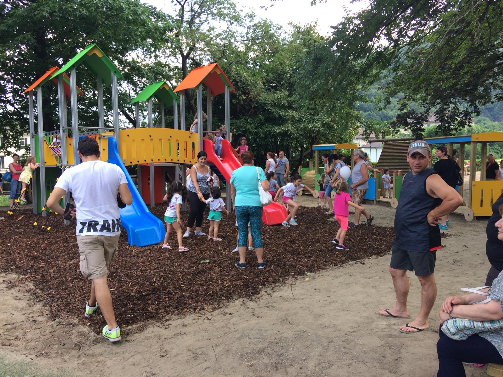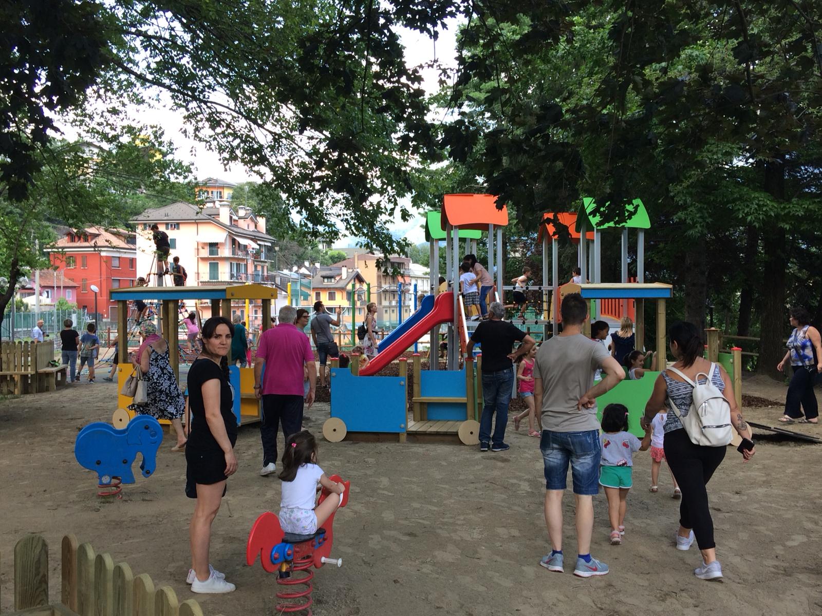 e delle grandi occasioni questo tardo pomeriggio presso il nuovo Parco Giochi inclusivo di via Zonca a Villadossola. A presenziare l'evento il sindaco Bruno Toscani con i membri dell'amministrazione comunale, l'architetto e il parroco di Villa: si parla di un parco inclusivo in quanto i nuovi giochi saranno senza barriere architettoniche e di conseguenza accessibili a tutti i bambini, anche affetti da handicap. Inoltre, a tutti i lavori per la nuova posa, è stato aggiunta una nuova pavimentazione anti-trauma. Un taglio del nastro che inorgoglisce la nuova amministrazione di Villadossola, alla sua prima grande opera come ricorda anche il suo sindaco.