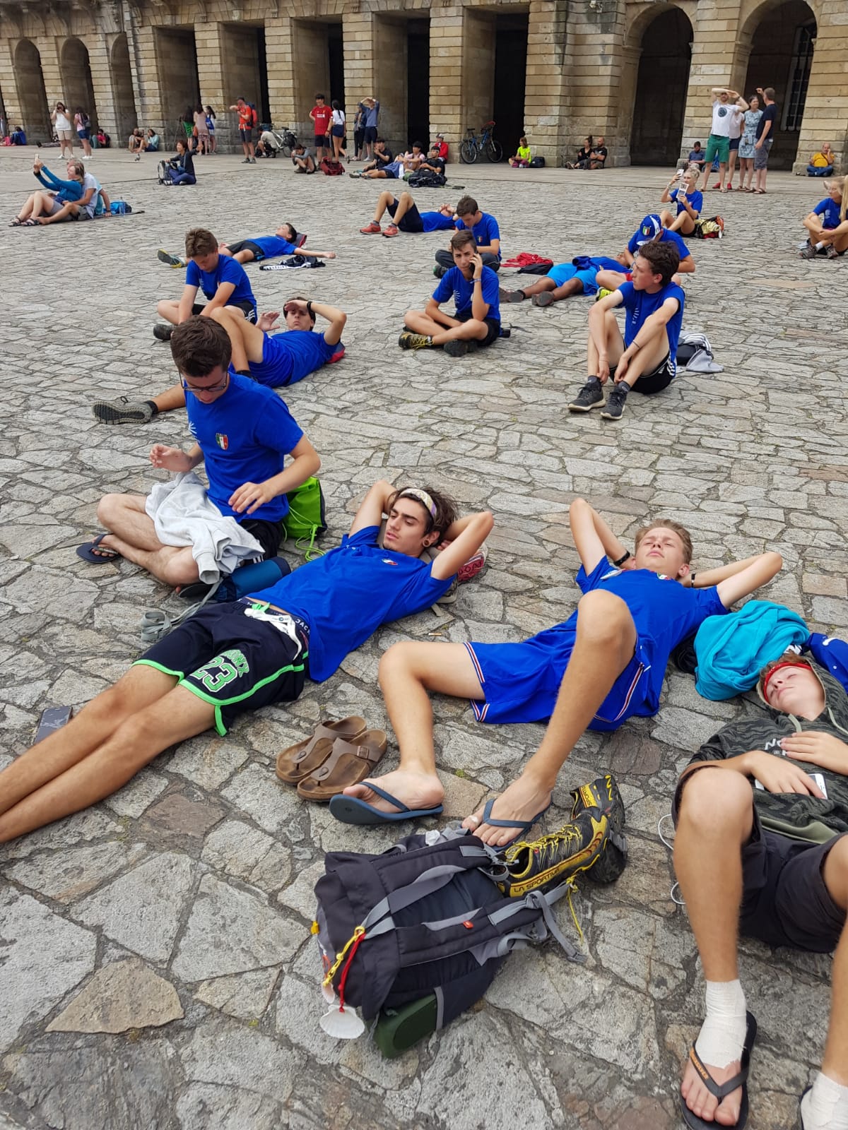 I 34 studenti domesi delle medie e delle superiori, guidati dal prof. Lucio Meazza e da don Fulvio Trombetta, sono arrivati alla fine del loro pellegrinaggio a Santiago de Compostela. "Hanno percorso 407 km a piedi- ci spiegano gli accompagnatori- tra salite e discese, passando in paesi e in aperta campagna. Hanno affrontato la fatica del caldo, delle fiacche ai piedi, del dolore ai muscoli. Hanno superato malinconia per la distanza da casa e la difficoltà del vivere 24 ore su 24 a contatto con altre persone, condividendo tempo, spazi, modalità (e diciamocelo, è forse il lato più duro). Sono arrivati a Santiago. Hanno ricevuto la Compostelana, l'attestato che dà ufficialità al cammino. Sono entrati nella magnifica cattedrale, hanno salito gli ultimi dieci gradini e hanno incontrato lui: l'apostolo Giacomo. Secondo la tradizione lo hanno abbracciato, gli hanno confidato nell'orecchio le loro preghiere, i loro desideri, i loro piccoli o grandi problemi. Sono arrivati, loro, a nome di tutti. Hanno faticato dedicando qualche km anche per le loro mamme, papà, fratelli e sorelle, per i nonni, per le zie, per i parenti ddefunti, per gli amici del calcio e i compagni di scuola. Ce l'hanno fatta, tutti: i più piccoli come i più grandi meravigliando chi li ha incontrati per strada o seguiti tramite i social da casa. Li abbiamo visti scherzare, ridere come è loro natura, e diciamocelo, li abbiamo un po' invidiati. Grazie piccoli grandi amici, grazie per l'impegno che avete dimostrato. Grazie per la testimonianza che ci avete dato. Domani Finisterre sull'oceano, quindi torneremo alla straordinaria vita ordinaria... dopo un po' di vacanza però!".
