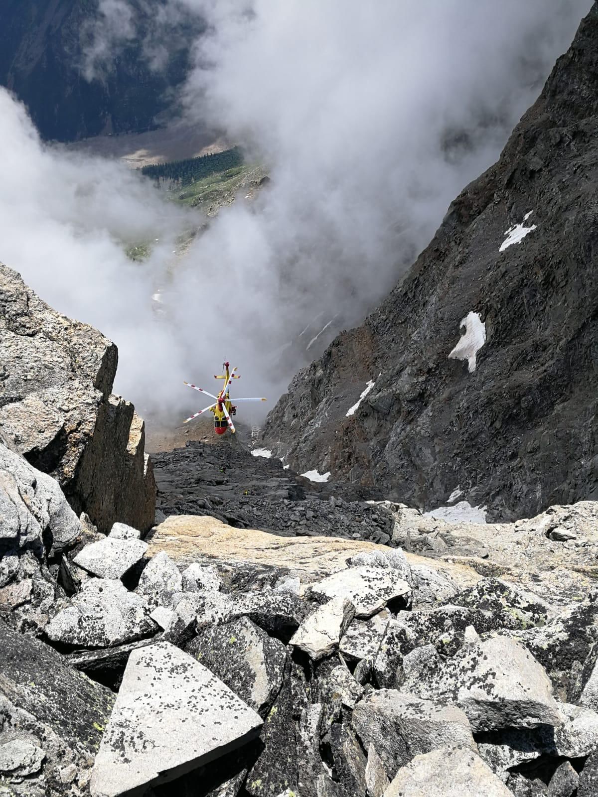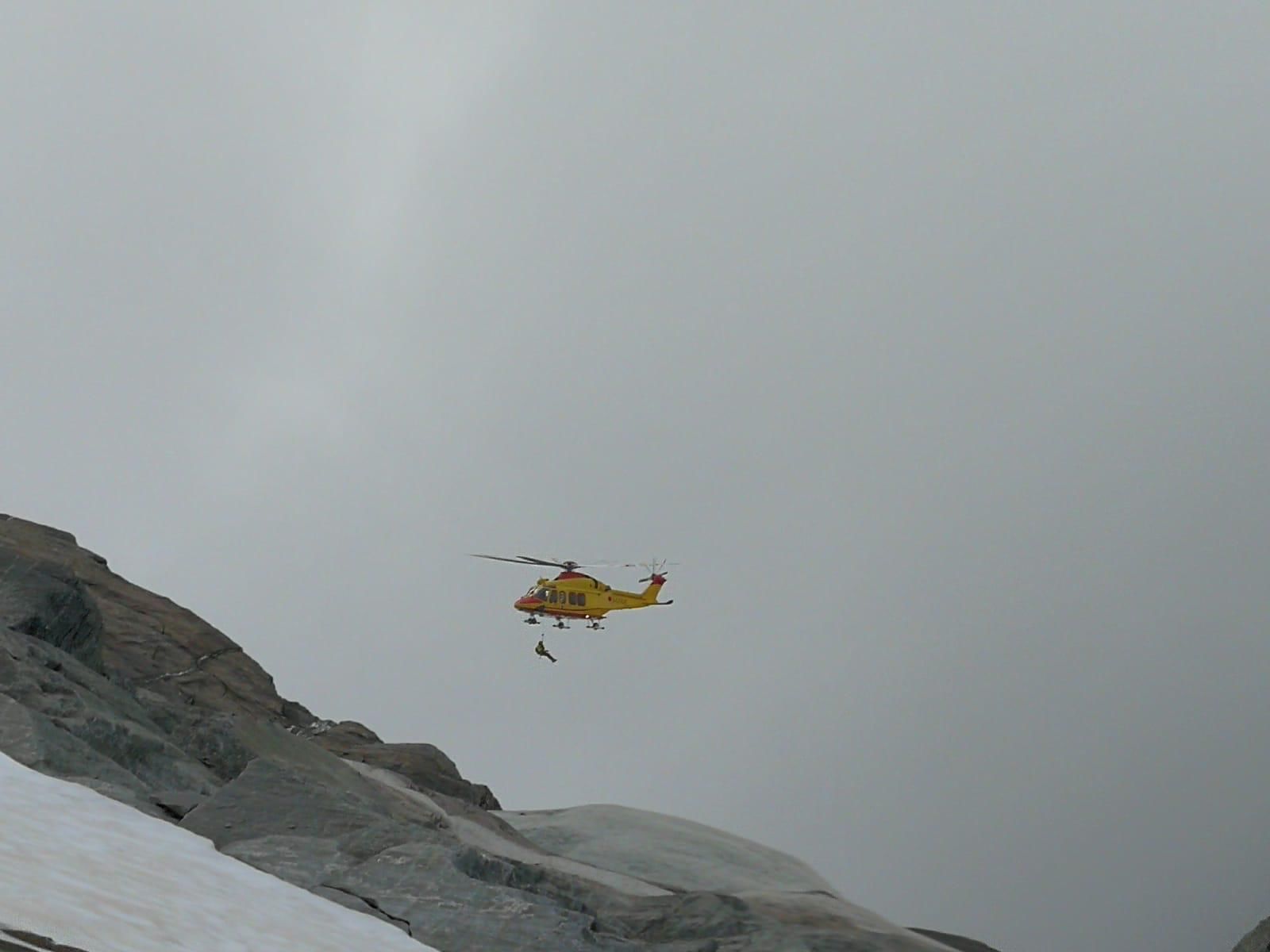 MACUGNAGA- 31-07-2019- Ecco il racconto fatto dal Soccorso Alpino Regionale del salvataggio effettuato ieri, in mattinata, sulla Torre di Castelfranco del Monte Rosa, a una quota di 3600 metri circa, nel comune di Macugnaga: "Intorno alle 10.30 un alpinista si è infortunato a 150 metri dalla cima- spiegano dal Cnsas Piemonte- e si è trovato incapacitato a proseguire insieme al suo compagno di cordata. Dalla Centrale Operativa è stata inviata sul posto l'eliambulanza del 118 che a causa delle condizioni meteo marginali ha preferito recuperare un tecnico del Soccorso Alpino della Guardia di Finanza, ad Alagna Valsesia, a supporto del tecnico di elisoccorso già a bordo. I due sono stati verricellati sulla cima della Torre di Castelfranco e procedendo in cordata e calandosi in corda doppia sono riusciti a raggiungere i due alpinisti bloccati. Grazie a una provvidenziale schiarita della nebbia, l'eliambulanza è riuscita in seguito a recuperare i malcapitati e i tecnici".