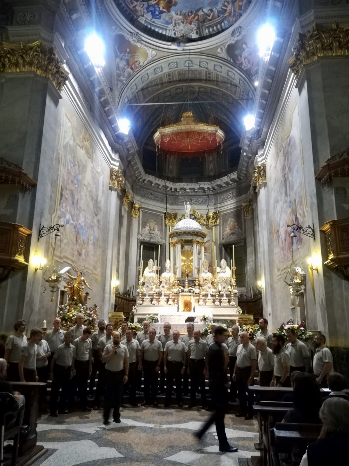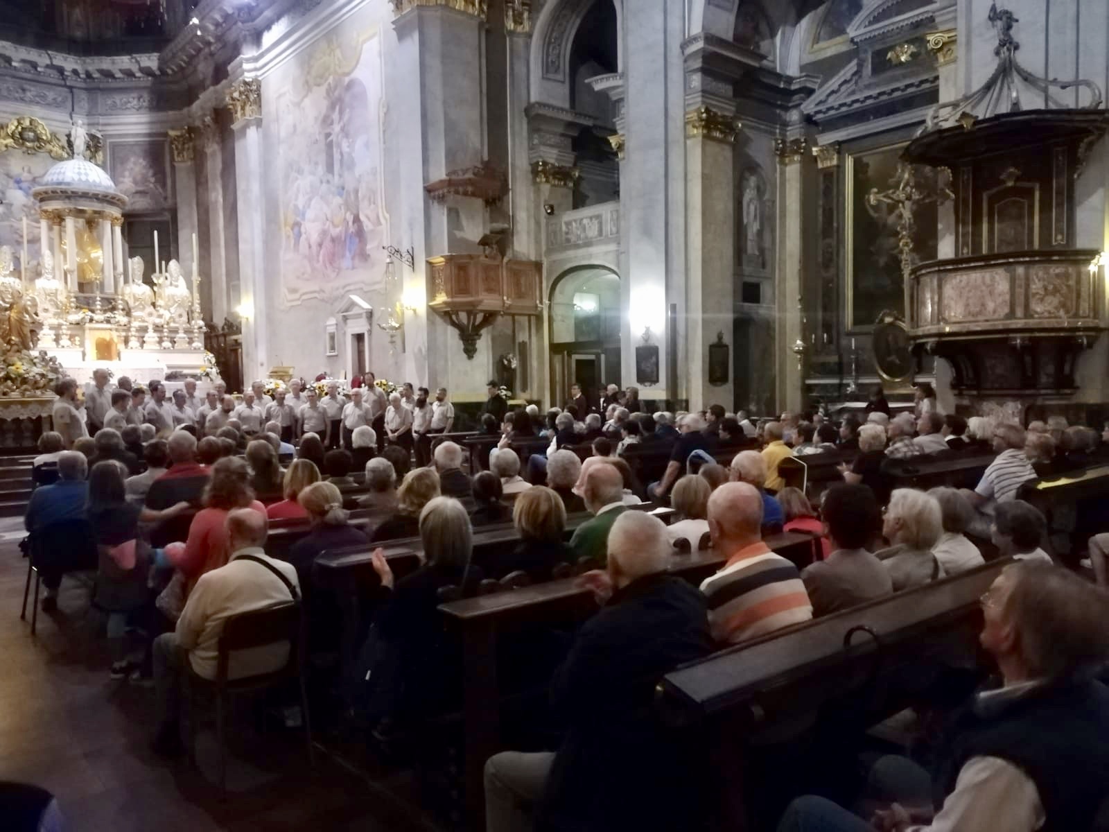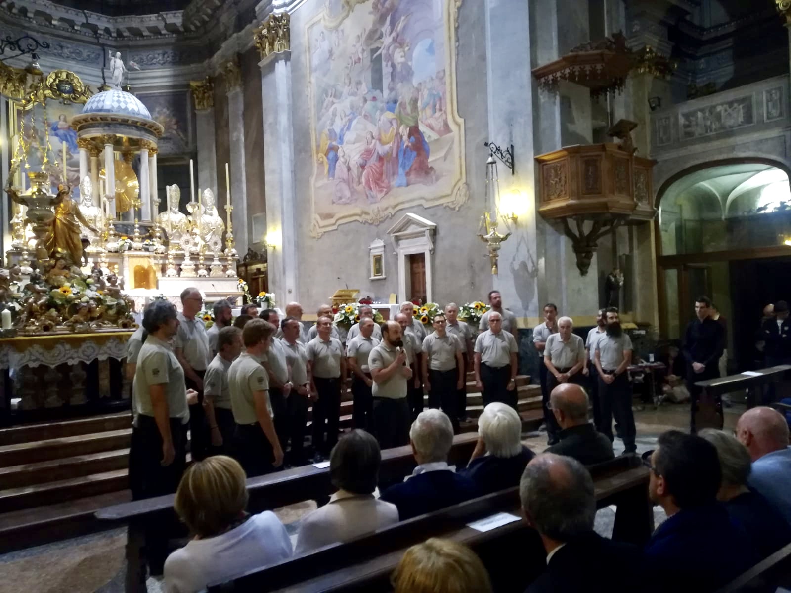 a Santa Maria Maggiore, domenica sera, per il concerto "Memorial Gigi" del Coro "Penne nere d'Aosta" diretto da Fabrizio Engaz. Tanti turisti, e tanti alpini ossolani, hanno aprezzato il vasto repertorio di brani, magistralmente eseguiti.