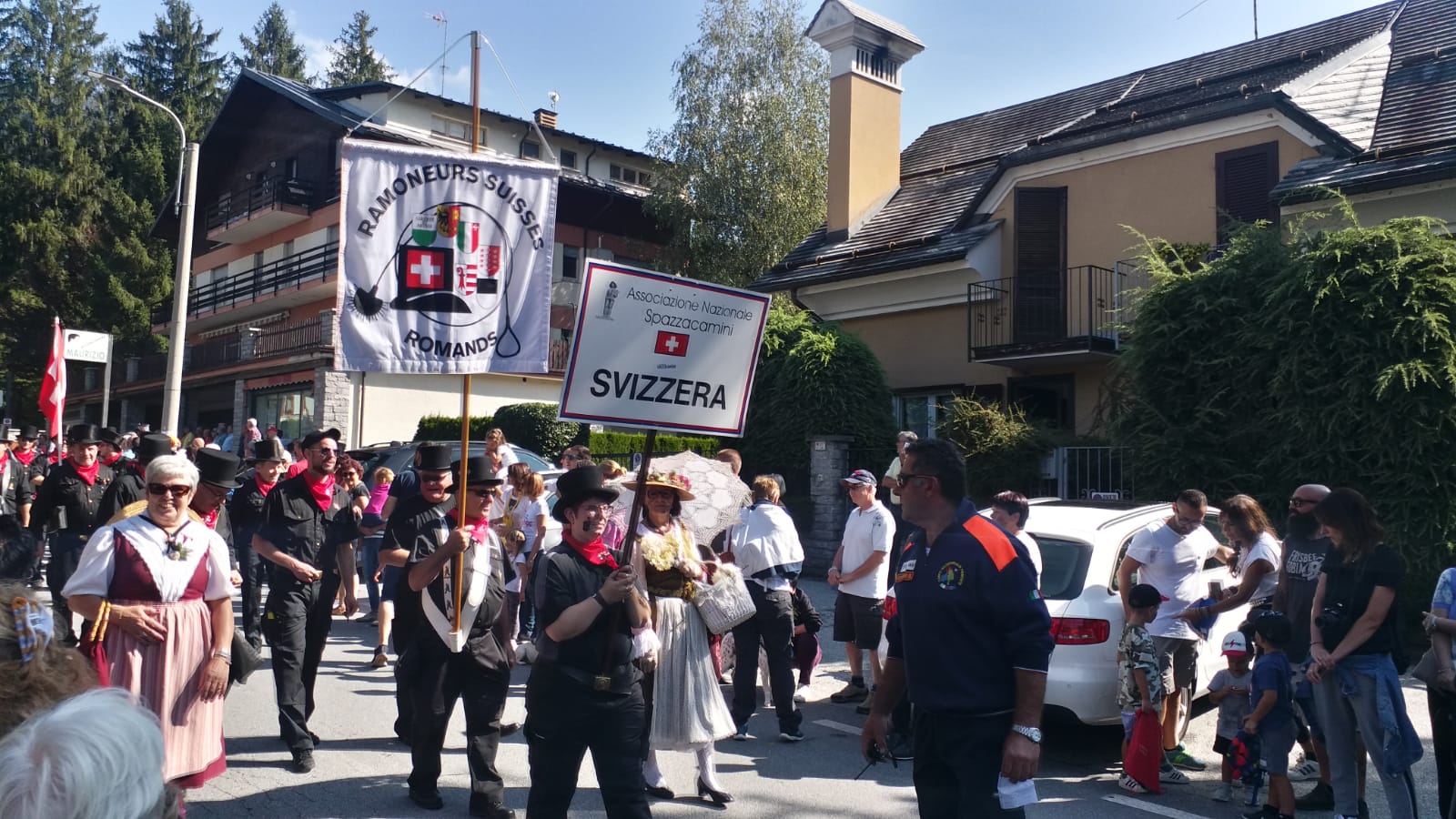 da tutto il mondo hanno sfilato domenica mattina per il centro di Santa Maria Maggiore, in occasione del trentottesimo raduno internazionale degli spazzacamini. Davanti alle autorità e ad un pubblico di decine di migliaia di persone i " rusca" hanno rallegrato la prima domenica di settembre portando simpatia e distribuendo caramelle a grandi e piccini. "23 le nazioni rappresentate dai musi neri, alcune delegazioni delle quali come l' Austria, la Finlandia e la Svezia sono cresciute a livello di partecipazione" spiega Anita Hofer vice presidente dell' Associazione Nazionale Spazzacamini, presieduta da Livio Milani, in testa al corteo aperto dal Gruppo Folkloristico Valle Vigezzo che compie quest'anno 98 anni. Il gruppo più numeroso la Germania con oltre quattrocento partecipanti. Tra le novità anche il passaggio di un aereo nei cieli sopra il borgo che ha raccolto lo stupefatto applauso degli intervenuti. " Anche quest'anno è motivo di grande orgoglio rivedere tutti i paesi del mondo rivolgere un loro ritorno al paese d' origine " aggiunge Claudio Cottini, sindaco del comune vigezzino. Bilancio come ogni anno entusiasmante con i ristoranti, alberghi e bed and breakfast al completo e domani gita degli spazzacamini a Stresa scelta quest'anno come location per i saluti finali tra i partecipanti.