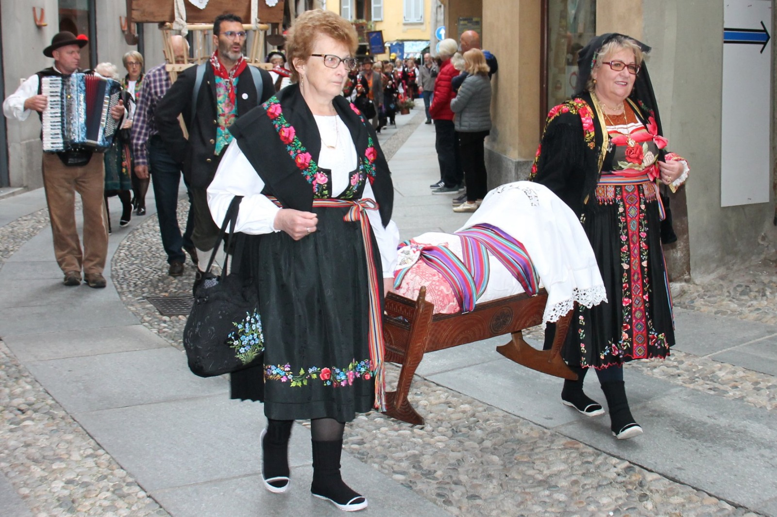 in costume e 50 fisarmoniche nella sfilata della Folkermesse organizzata a Varallo domenica scorsa. Un totale di 31 gruppi che provenivano dalla Val Mastallone, Val Sermenza, Val Grande, da Varallo e dintorni, e dalla val d'Ossola e Vco, da cui provenivano il Gruppo Folk Valle Vigezzo, Gruppo Folk Città di Domodossola, Gruppo Arsciol Vagna, Gruppo Valle Anzasca, Gruppo Folk Mottarone, Gruppo Folk Trontano e Sciupatel Di Beura Cardezza, Gruppo Rigaden Ornavasso, Gruppo Valstrona Myosotis, Cappello Monti e Forno, e Il "coro" Amici Della Montagna. Durante la mattinata erano state organizzate visite guidate della città, nel pomeriggio la sfilata, con la presentazione di tutti i costumi, dei fisarmonicisti e l'esibizione.