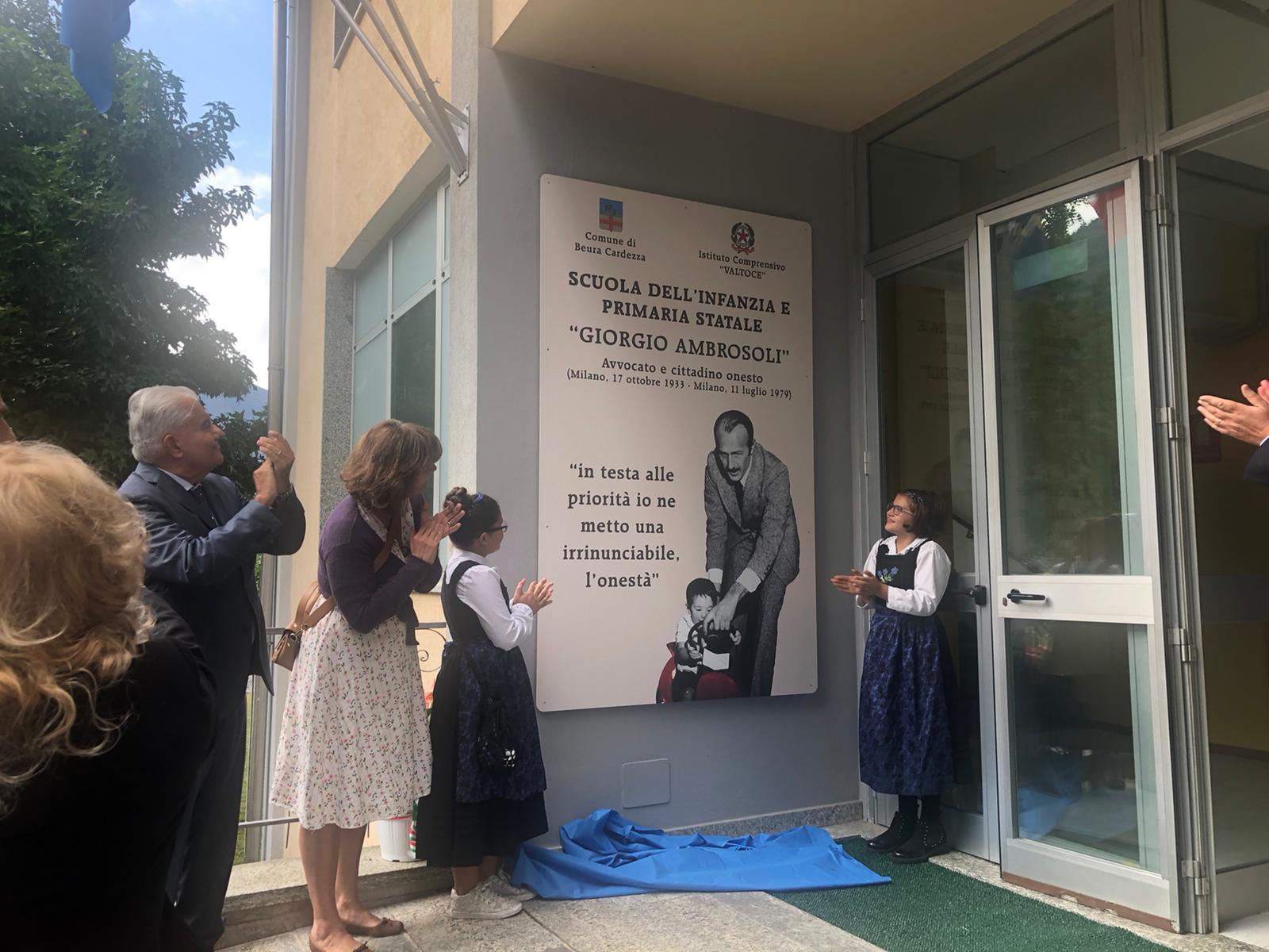 oggi a Beura Cardezza. Alla presenza di numerose autorità, tra cui il parlamentare Alberto Gusmeroli, l’eurodeputato Alessandro Panza, oltre al prefetto Iginio Olita ed a Marina Oliva in rappresentanza della Provincia, il sindaco, Davide Carigi ha intitolato, insieme alla preside del istituto comprensivo Valtoce, Paola Marchi, il plesso scolastico delle primarie e delle scuole dell’infanzia a Giorgio Ambrosoli, l’avvocato ucciso nel 1979 dai sicari di Sindona.