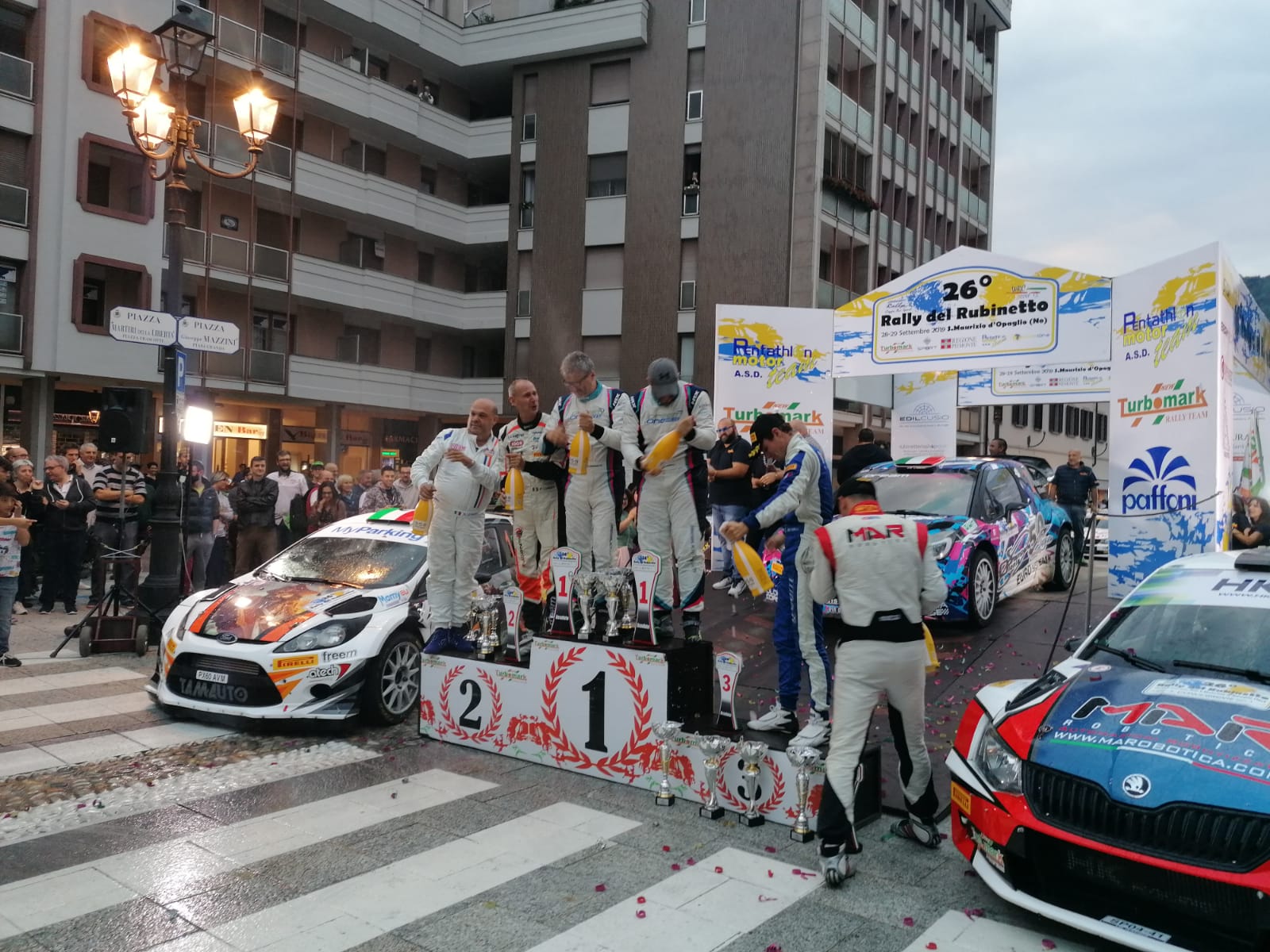 per l’ennesimo successo organizzativo. Il duo varesino della Dream One Racing realizza il “triplete” dopo i successi del 2017 e 2018: su Citroen DS3 Wrc si impongono fin dalle prime battute gestendo una vittoria mai in discussione. Bellissima la lotta per gli altri due gradini del podio: la spuntano Longhi-Leonardi e Bottarelli- Pasini. Out Caffoni per una toccata. Cento gli arrivati. Soddisfazione in seno alla Pentathlon. Il Rally del Rubinetto li celebra e li eleva tra i principali protagonisti di sempre: non può essere diversamente per Simone e Miele e Roberto Mometti che oggi, domenica 29 settembre, hanno firmato per la terza volta l’albo d’oro di una gara prestigiosa e ambita e che vantava la ragguardevole cifra di 154 iscritti. Partiti con i favori del pronostico, i Vice-Campioni Italiani Wrc hanno preso in mano le redini della corsa fin dai primi metri vincendo con apparente tranquillità le prime sei prove in programma in virtù della loro bravura, del mezzo tecnico superiore e ad una saggia gestione nella seconda metà della gara; alla fine il distacco sui secondi è di 53”3. “La vittoria è merito di tutti, dal mio naviga Mometti ai ragazzi del team: non è mai facile e riprova ne è il fatto che nonostante un buon margine di vantaggio, abbia perso un po’ di concentrazione facendo un dritto e strisciando la DS3; siamo contanti perché così completiamo una stagione per noi davvero positiva” ha detto Miele all’arrivo.