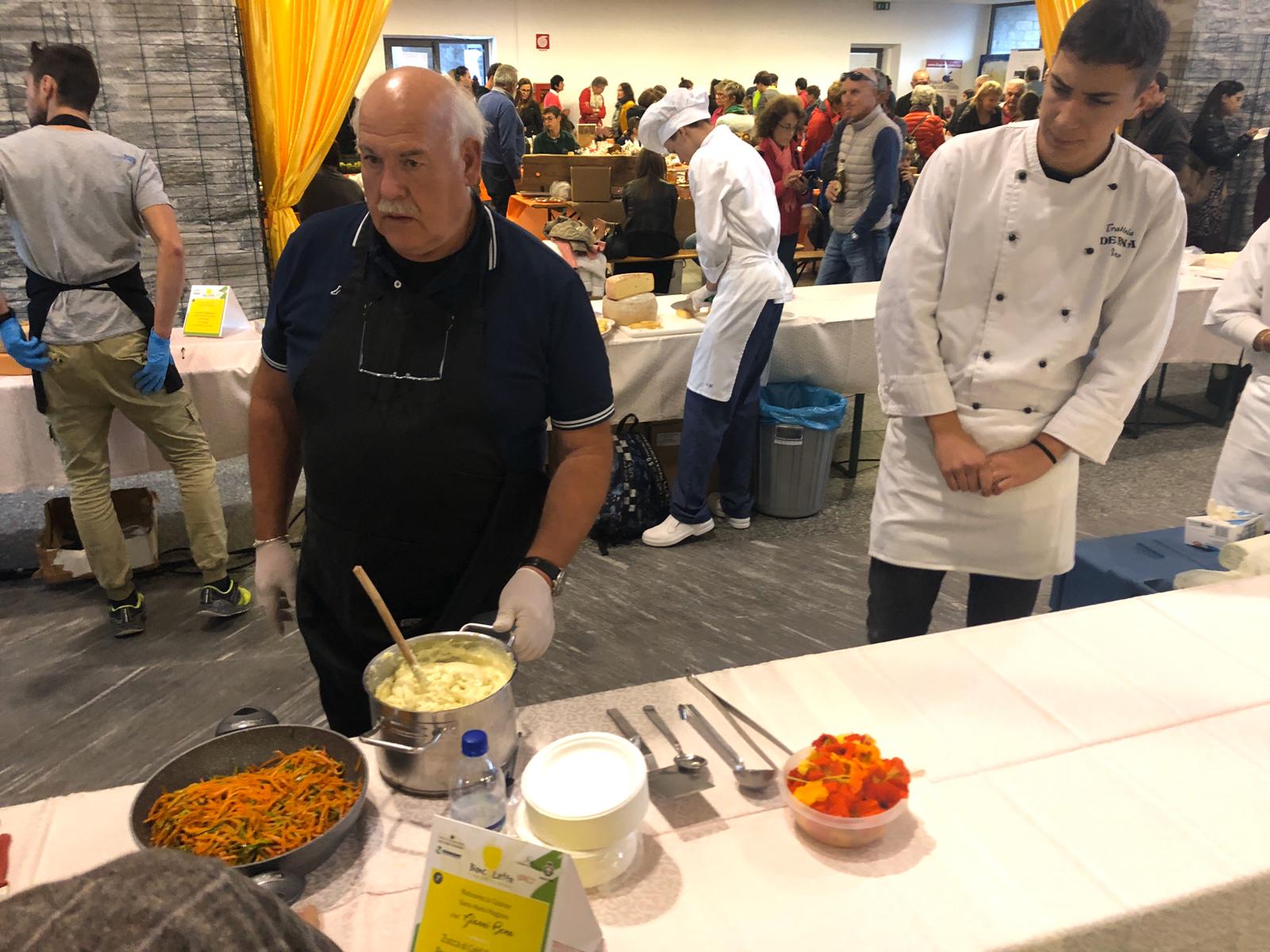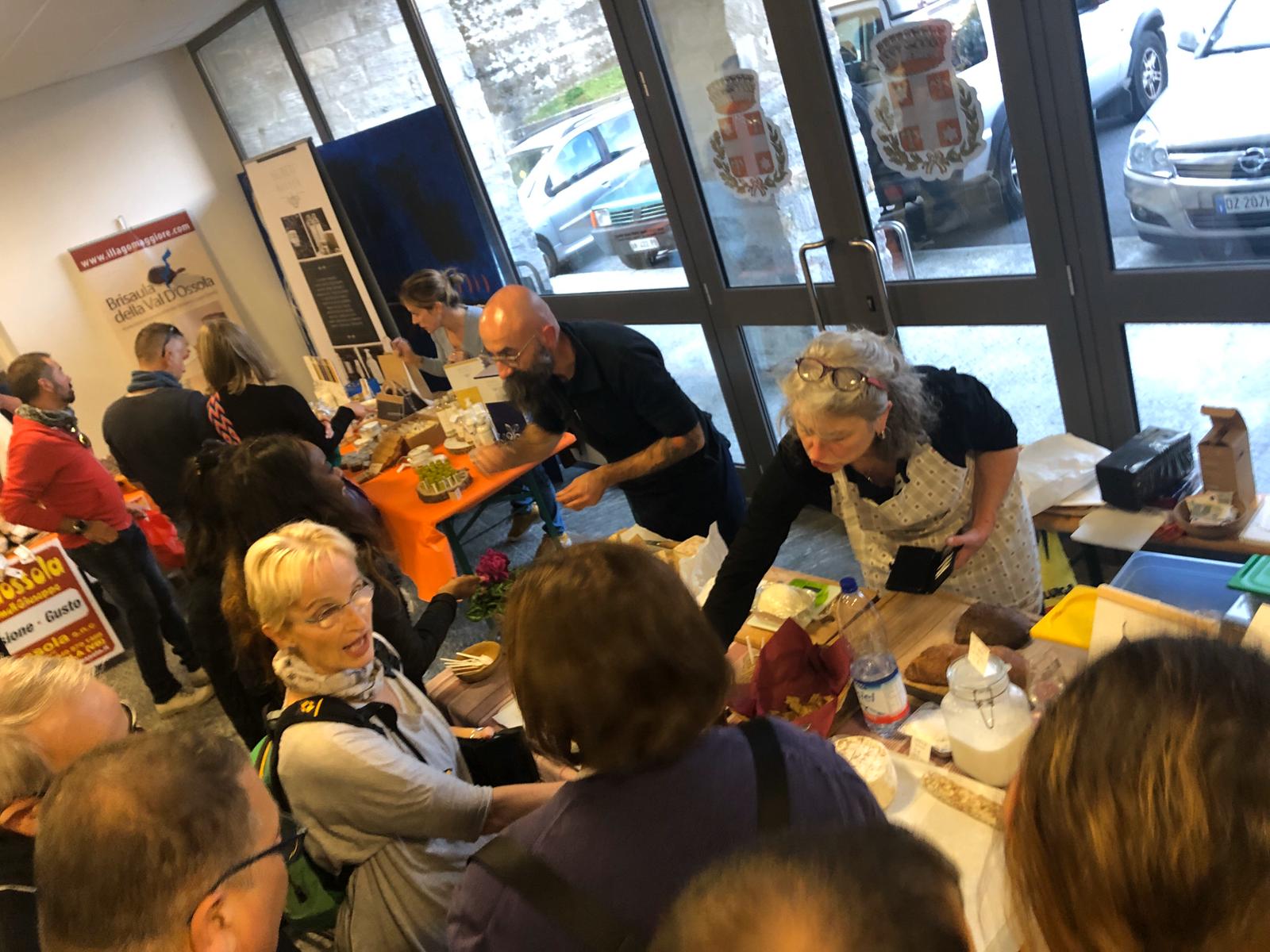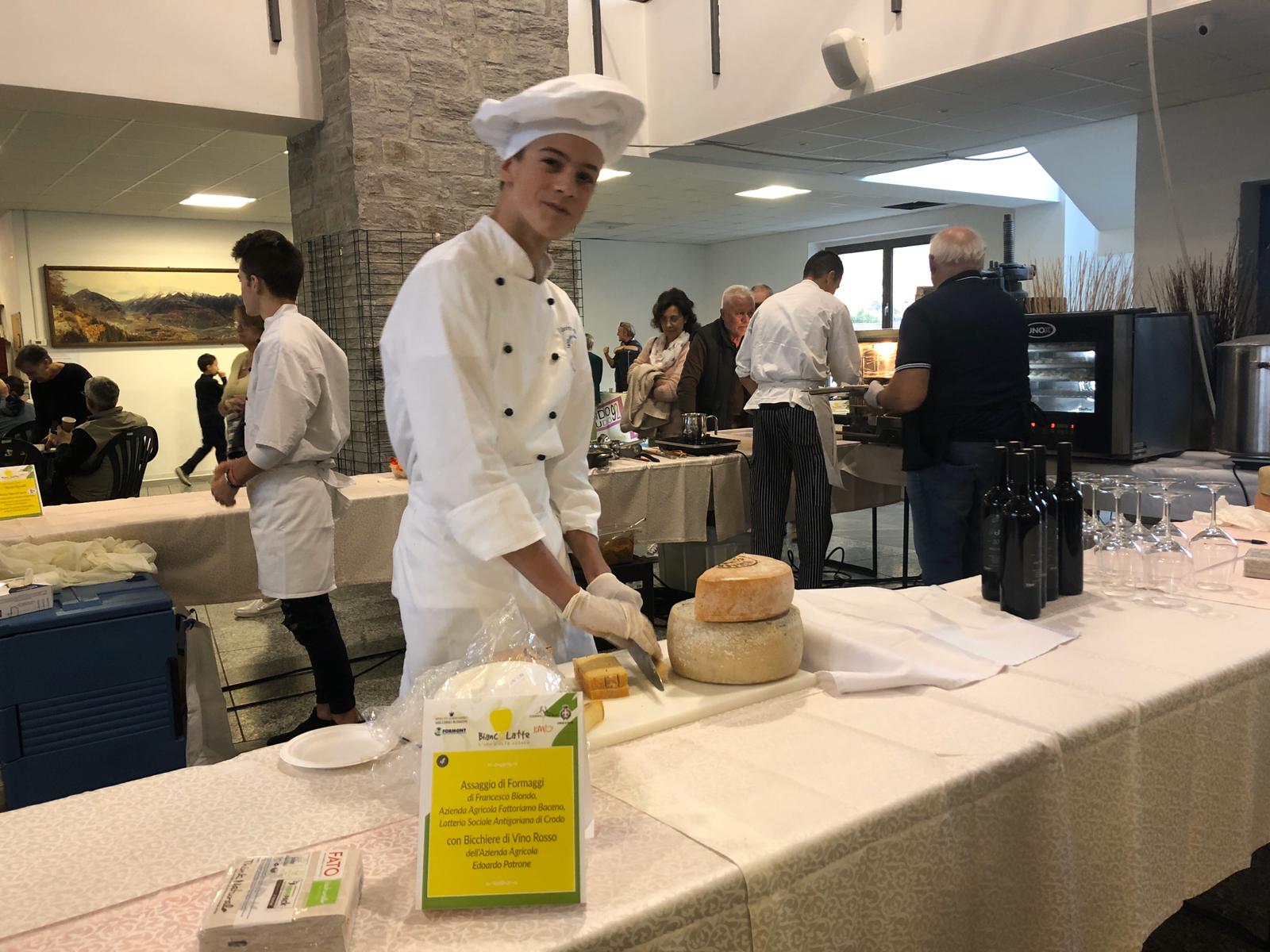 CRODO- 13-10-2019- Un tributo all'Alta Ossola ed ai suoi fantastici formaggi e prodotti questo weekend a Crodo con Bianco Latte. Stamane al Foro Boario la mostra-mercato, con un tripudio di formaggi freschi, stagionati, tome pregiate e gustosi prodotti caseari, erbe officinali, prodotti dell'orto, frutti e mieli per un viaggio lento a km 0 tra i sapori e profumi dell'alta Ossola. Gettonatissima anche “Oro&Vino”, la degustazione guidata dell'oro d'Alta Ossola: una degustazione di formaggi e tome locali e i nserata la "merenda sinoira d'alta Ossola”, il percorso degustazione in dieci tappe in cui i formaggi e prodotti presenti nella mostra-mercato sono diventati i protagonisti delle preparazioni gourmet degli chef di Cooking for Alp, in dieci deliziosi piatti".