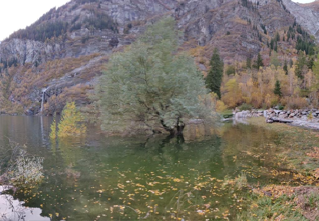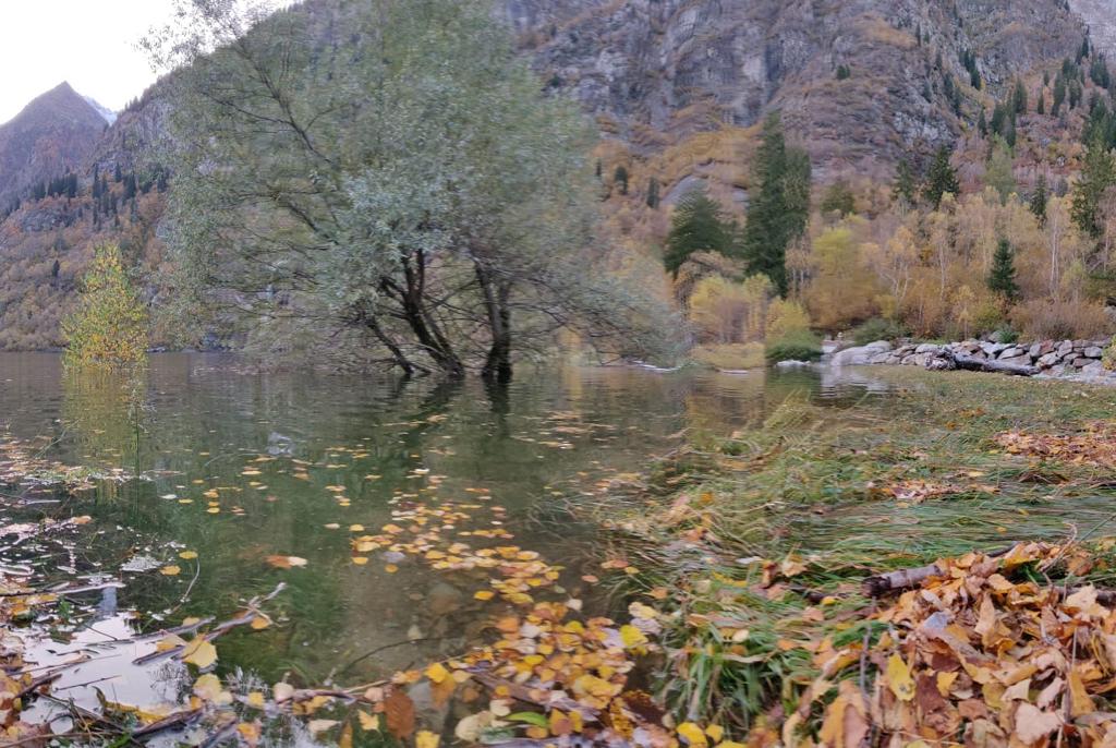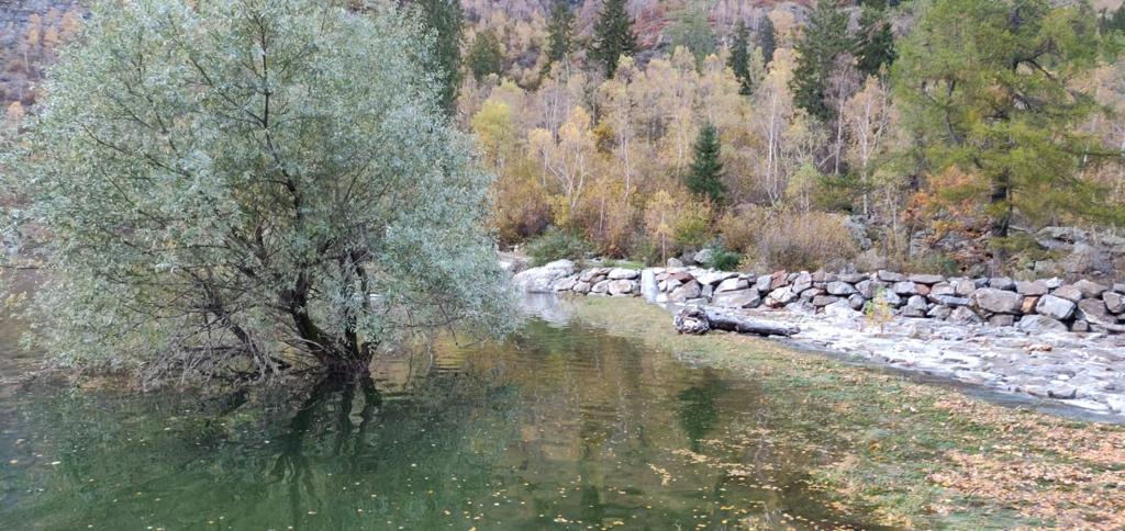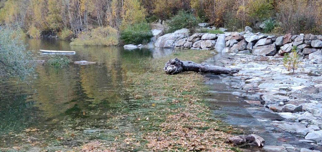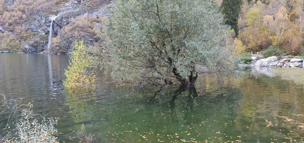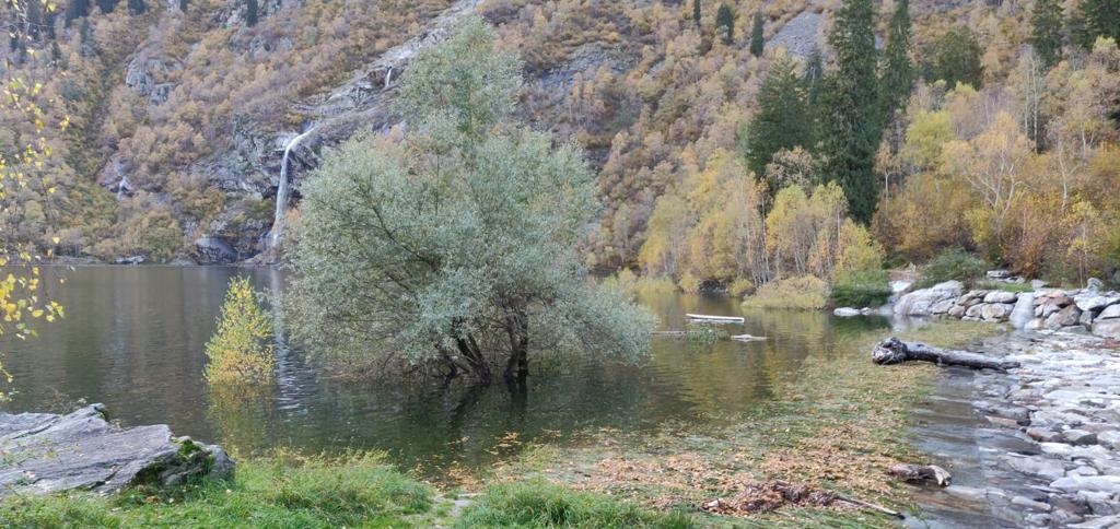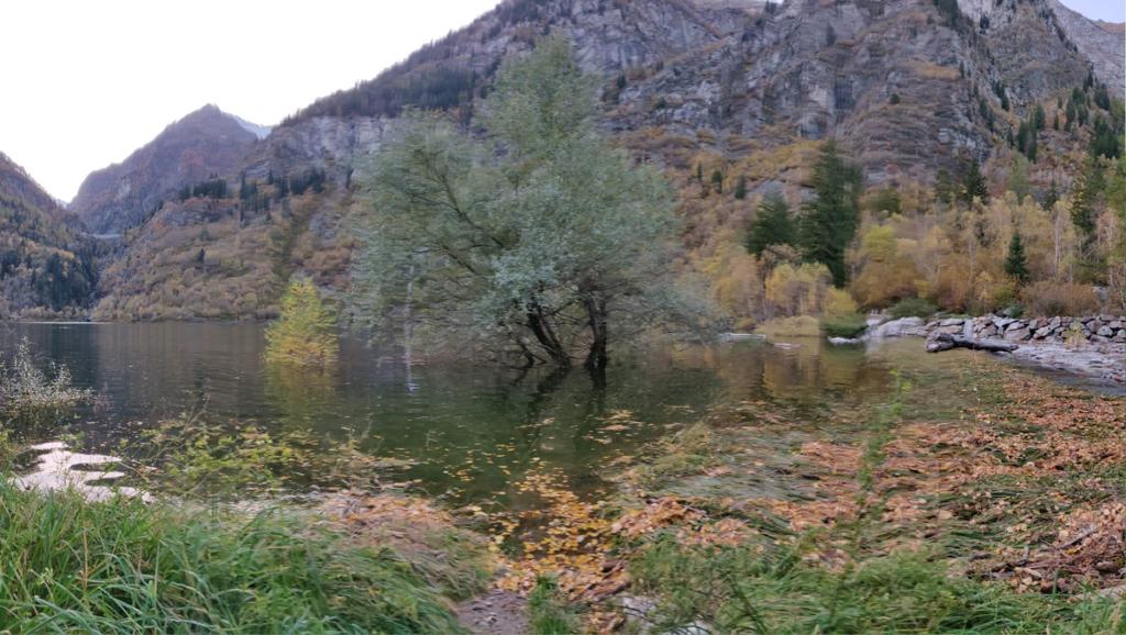 ma lo scenario è suggestivo. Stiamo parlando del lago di Antrona, che a causa del maltempo dei giorni scorsi s'è notevolmente alzato, fino a uscire in un piccolo tratto, un guado ben noto ai locali dove il bacino naturale trova sfogo. Ad oggi (le foto sono state scattate questa mattina) il lago continua ad abbassarsi.