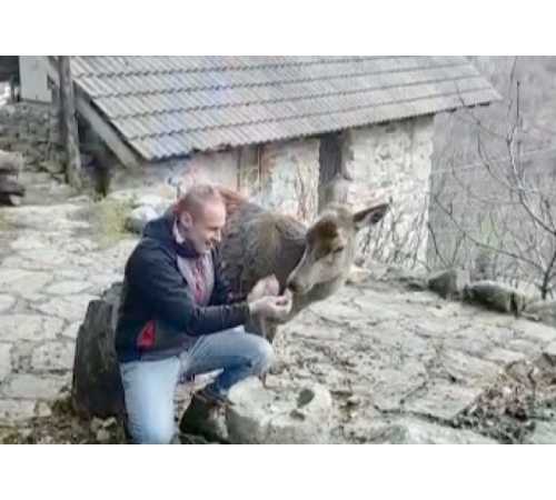 BORGOMEZZAVALLE-26-12-2019- C’è un nuovo residente a Borgomezzavalle, in valle Antrona. Si tratta di una cerva, che ha scelto il borgo ossolano per farsi coccolare dai residenti, trovando, in questo inverno tutto sommato mite, cibo ed affetto: “Abbiamo in paese una nuova simpatica residente a Borgomezzavalle, la cerva Nancy che ci onora della sua presenza.....già in molti si recano quotidianamente a farle visita- spiega il sindaco reggente Stefano Bellotti- dal Comune di Borgomezzavalle a tutti facciamo gli auguri di Buone Feste, con il desiderio che le festività portino serenità felicità e gioia nelle vostre famiglie ,nelle vostre case, auguri di un 2020 speciale e colmo di risultati positivi su tutti i fronti”.