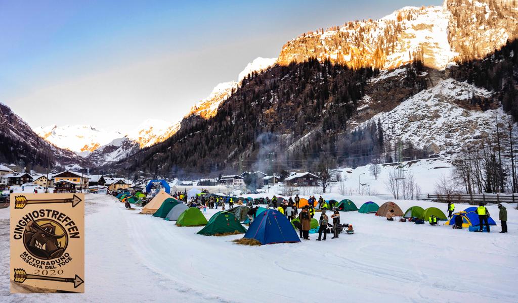 il quarto motoraduno CinghiosTreffen 2020. Sono stati in centinaia gli appassionati delle due ruote presenti in valle per l’appuntamento invernale ispirato al celebre Elefantentreffen che si svolge a fine mese tra Austria e Germania. L'evento formazzino, nonostante la giovanissima età, è in netta crescita e già l'anno scorso aveva radunato circa cinquecento equipaggi da Italia e Svizzera. Piena a Valdo l'area camping, e moltissimi sulle piste per ammirare quest'oggi la prova di abilità sulla neve, che si effettua risalendo le piste da sci in moto. Stasera le premiazioni e poi la festa con dj no stop e maxi spaghettata conclusiva offerta dal Moto Club Alta Val Formazza.