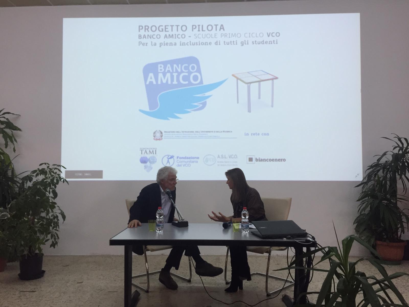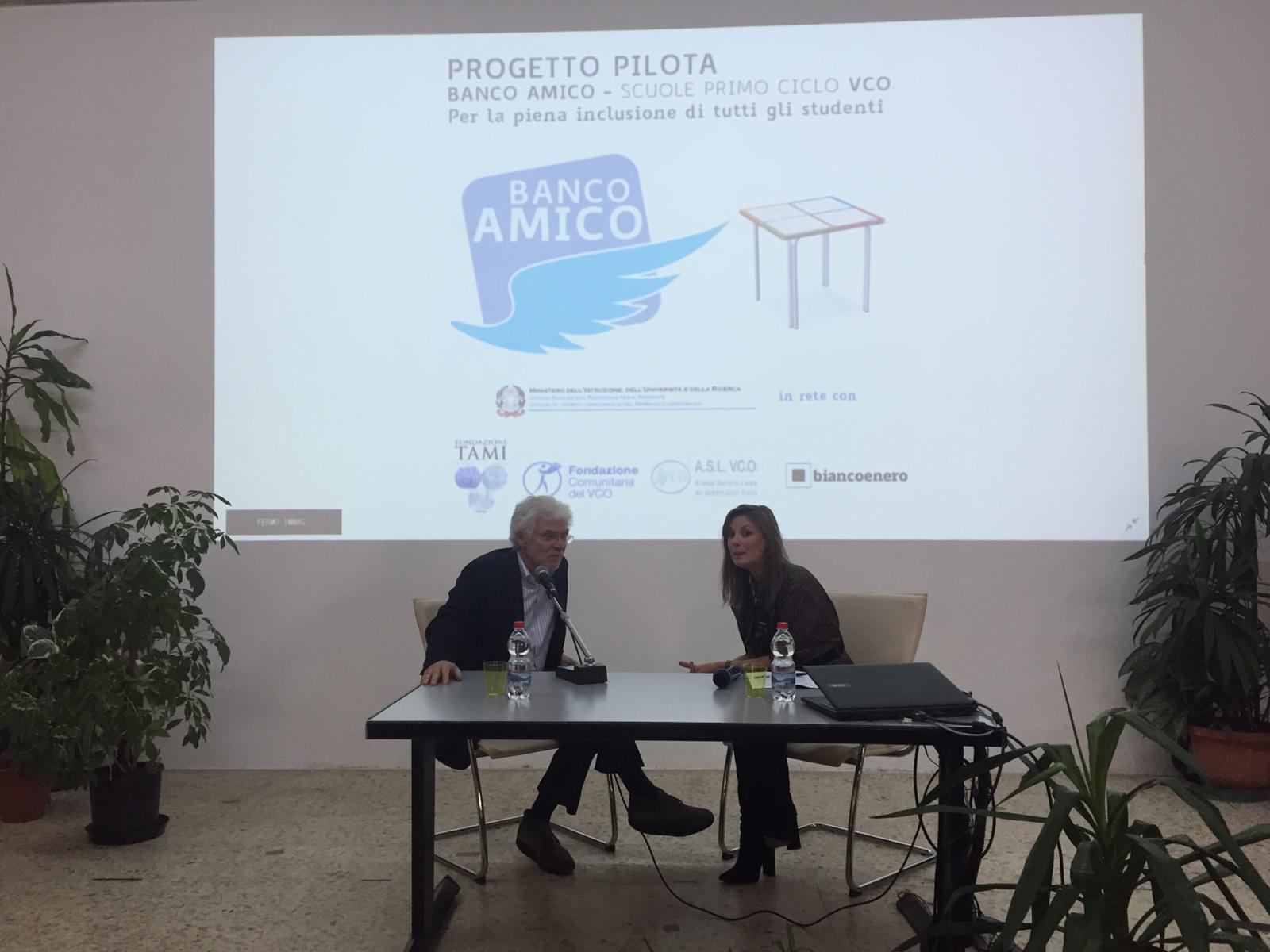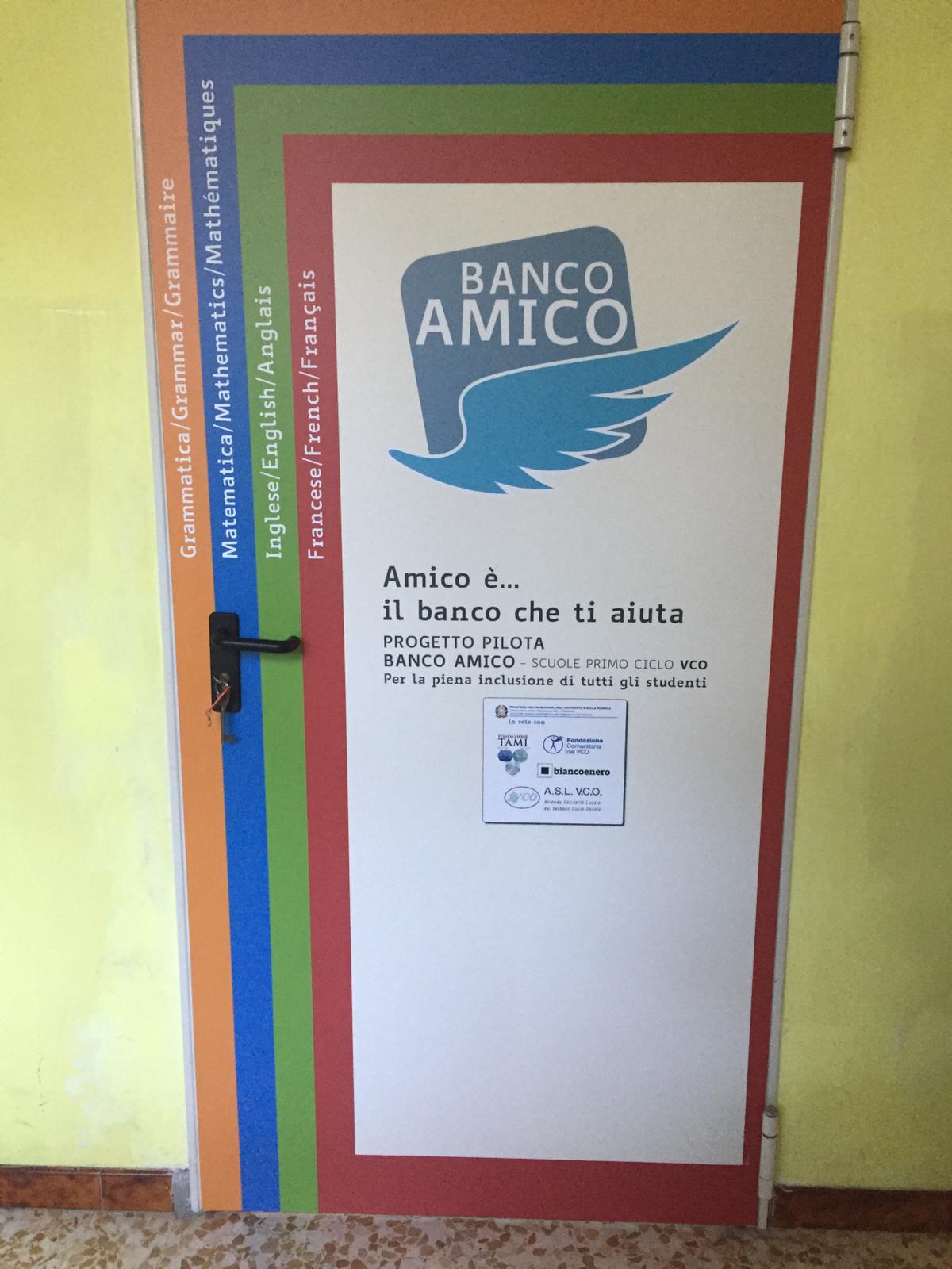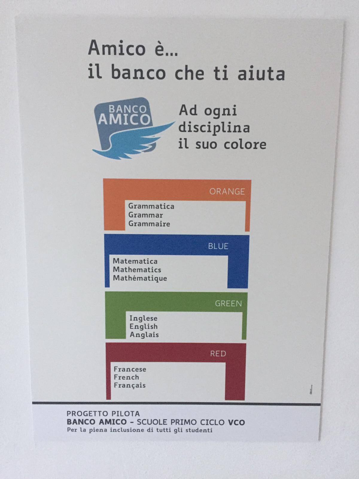 "Banco amico" ed è un normale banco scolastico sul quale sono stampate alcune delle regole fondamentali di matematica, grammatica, inglese e francese. Il banco amico è un progetto pilota sperimentato per la prima volta in Italia alle scuole medie Bagnolini di Villadossola come sostegno ai ragazzi con disturbi dell'apprendimento (ma non solo per loro). Vi collaborano l'ufficio scolastico provinciale e l’Asl Vco. Per l'inaugurazione, venerdì, è intervenuto Giacomo Stella, psicologo, tra i massimi esperti dei disturbi dell’apprendimento.