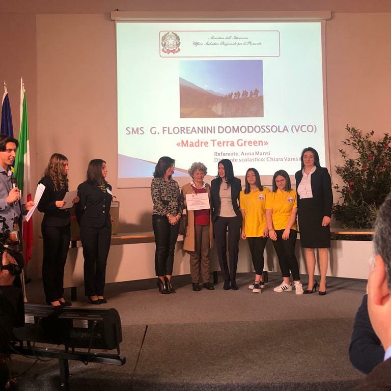 per gli alunni della classe III E della scuola media Floreanini di Domodossola. I ragazzi hanno ricevuto a Biella dal ministro dell'Istruzione, Lucia Azzolina, il premio per il progetto "Madre Terra", svolto nell'ambito del concorso "La scuola coinvolge il territorio, premio Zanotti". A guidarli le professoresse Mansi e Angelino, ideatrici con la preside Varesi, del progetto "Green". Al concorso sono stati presentati 31 progetti provenienti da 7 province della regione, la scuola media Floreanini si è classificata al terzo posto.