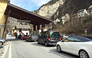 il traffico nei pressi del cantiere della galleria di Paglino in questi giorni di traffico intenso, specie in entrata Stato. Sembrano molti i turisti d’oltralpe che hanno scelto il Bel Paese per trascorrere le vacanze.