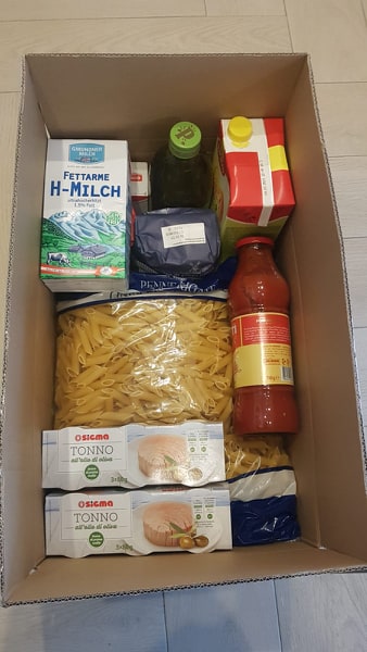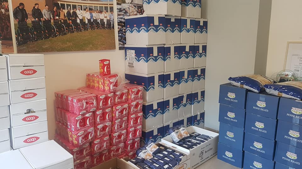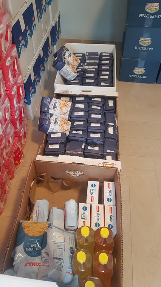In due settimane s’è riempito un magazzino di pasta, zucchero, olio, sale, latte, acqua, farina, scatolame, passata di pomodoro, fette biscottate… Sono 300 le famiglie destinatarie, alcune delle quali, con bambini piccoli in casa, riceveranno anche latte in polvere e prodotti per i neonati.