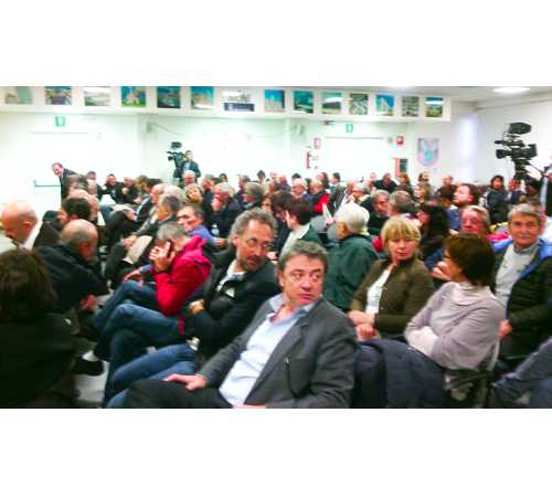 di Chiamparino, Reschigna e Saitta ( quello scritto più in grande ndr.) posizionato da alcuni rappresentanti di comitati, ha ricevuto all'entrata del Tecnoparco i vertici regionali, attesi per la riunione in cui si renderanno noti i progetti per il riassetto sanitario del Vco. Presenti quasi tutti gli amministratori del Vco. Assente il presidente Stefano Costa, all'estero, sostituito al tavolo dall'assessore Damiano Delbarba.