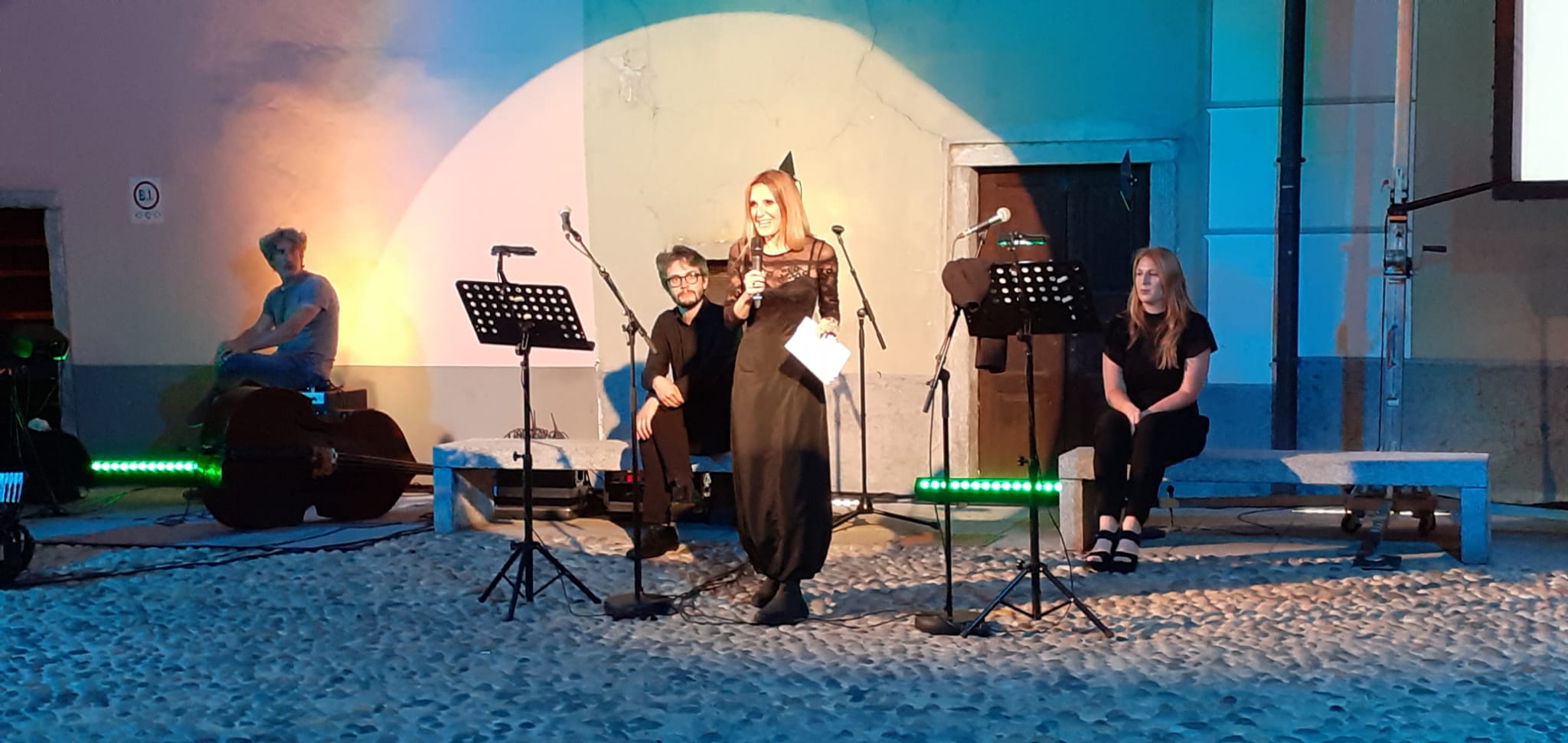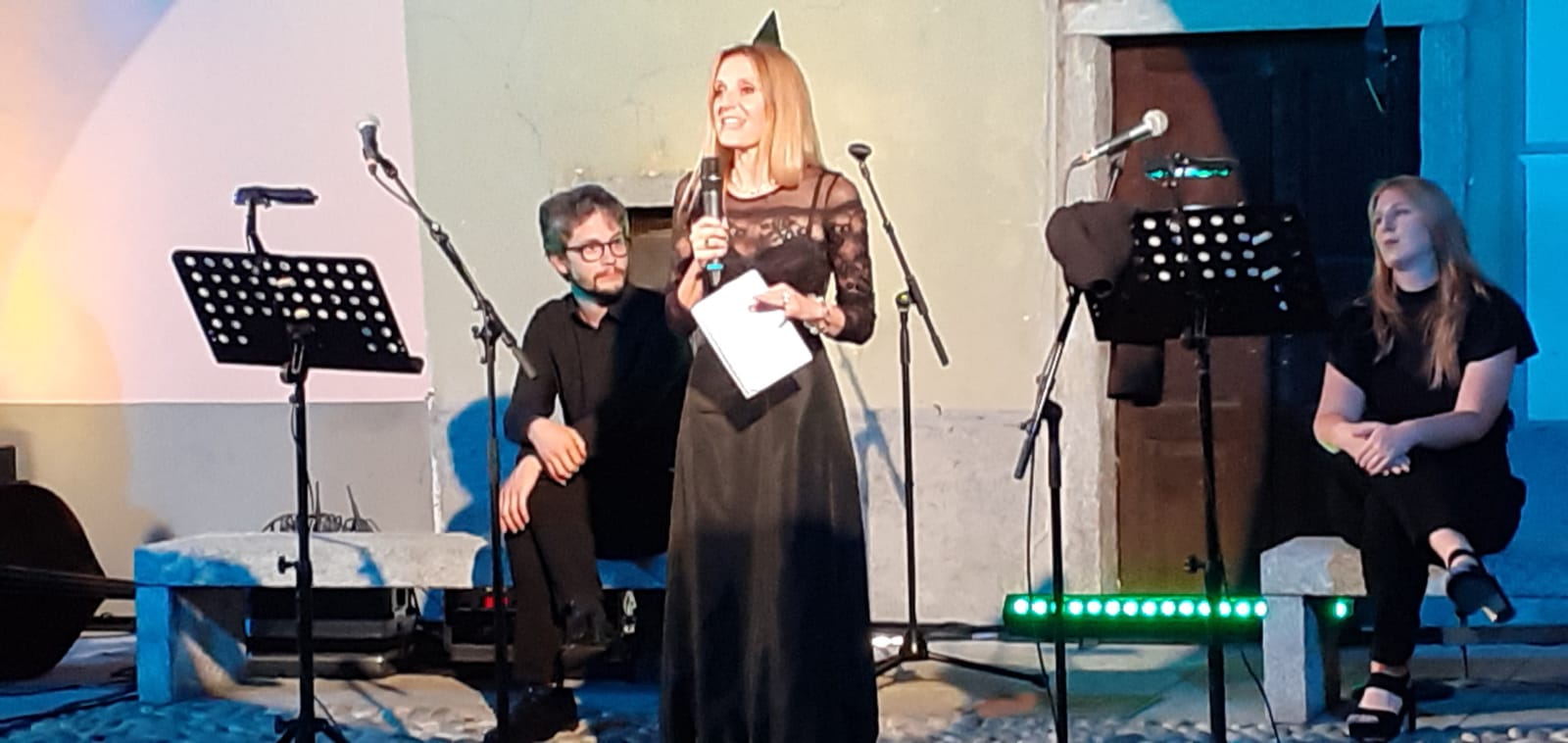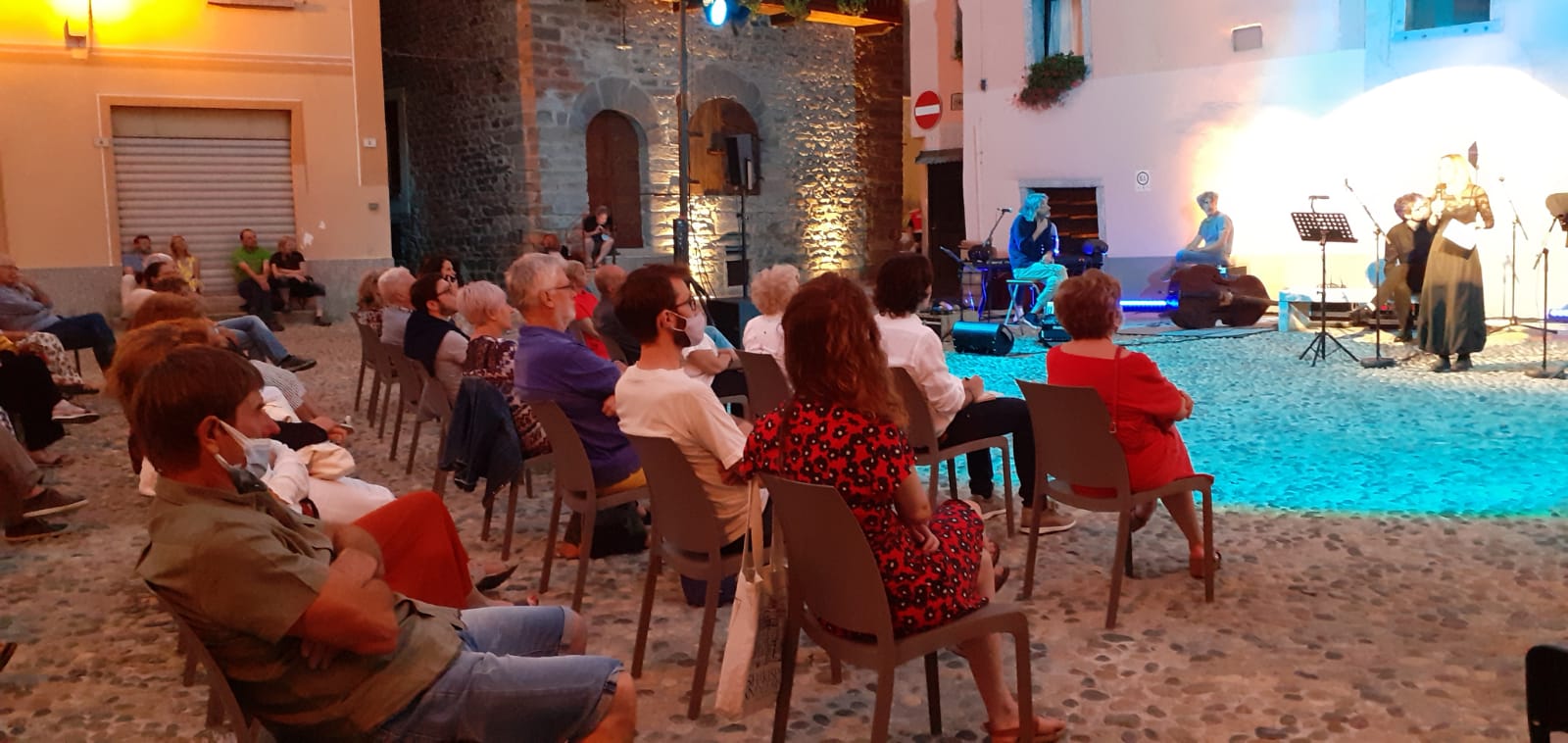 La musica è stata eseguita dai "Sulutumana" ( Giambattista Galli, Francesco Andreotti e Nadir Giori) mentre gli attori erano Sara Polvara e Matteo Minetti. Già ospite due anni fa a " Domosofia" Chiara Gatti così ha detto a proposito dello spettacolo:" Tutta la letteratura e l'immaginario della storia dell'arte sono legati all'immagine del cielo, delle stelle, della luna, dell'infinito e dello spazio, che si apre davanti agli occhi e parte dai tempi antichi fino all'arte contemporanea".