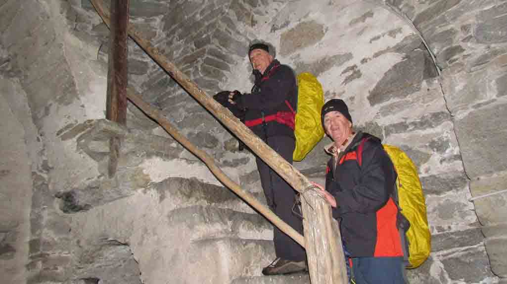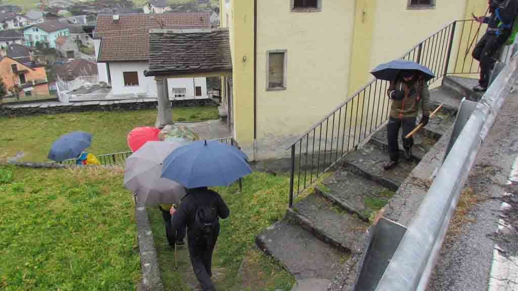La giornata piovosa ci induce ad organizzare un’uscita tranquilla e adatta agli ombrelli, con un finale al ristorante che avrà grande successo per la partecipazione anche di amici assenti alla gita. Sembra un segno premonitore del lungo periodo di astinenza escursionistica che ci aspetta, quasi un pranzo di addio. Oggi il Gufo’s non è solo un punto di passaggio, ma è il punto di partenza della gita. Fra le frazioni di Montecrestese abbiamo già passeggiato altre volte, con itinerari sempre diversi grazie alla varietà di strade, sentieri e cose belle. Una signora, ormai pilastro del gruppo, accompagna il solito compatto gruppo INPS. Dopo il caffè, con gli ombrelli aperti, attraversiamo la frazione Pontetto e, tenendo la sinistra e lungo i prati, passiamo in prossimità dell’Agriturismo ed iniziamo a salire verso la Valle dei Cani. Dopo circa mezz’ora di strada e bella mulattiera dedichiamo un po’ di tempo alla visita dell’area megalitica di Castelluccio con i suoi menhir, deviando a sinistra, in leggera discesa, in corrispondenza della cappella, quota 400. Proseguiamo per Lomese, 440, lungo mulattiera e sentiero e, su strada, fino a Chezzo, 438. Torniamo sui nostri passi ed arriviamo a Montecrestese centro, ovvero frazioni Chiesa e Cresta. Passeggiamo amabilmente da un’ora e mezza. Ci informiamo in comune ed andiamo a disturbare don Luciano Mantovani che, molto gentilmente, ci accorda fiducia e ci dà le chiavi per una visita al campanile più alto dell’Ossola (67 metri) del 16° e 17° secolo. All’interno di questo si trova il campanile originario, del 12° secolo. Alcuni di noi salgono in cima all’involucro esterno, dove si trovano otto campane, e si godono un bellissimo panorama sull’Ossola, nonostante nuvole e nebbie qua e là. Ringraziamo don Luciano e proseguiamo, salendo verso il cimitero e seguendo mulattiera e sentiero fino a Giosio. Passiamo dalla Cappella di Sagrin, da Vignamaggiore, da Borella, da Roldo con il tempietto lepontico del 1° secolo dopo Cristo. La pioggerella non ci abbandona. Dopo Vigna scendiamo a Pontetto e recuperiamo le auto, poco più di tre ore dopo la partenza. Sei ragazzi, pieni di energia, proseguono a piedi lungo la piana di Masera per incrementare a tredici chilometri lo sviluppo della gita odierna e raggiungono il Circolo Alpino, dove li stiamo aspettando da poco. Qui altri cinque amici ci raggiungono, anche dalla pianura novarese, e pranziamo bene ed in allegria. E’ un vero peccato che, dopo la lunga quarantena, questo circolo, così ben gestito da due ragazzi in gamba, non possa riaprire. Ma li ritroveremo a Trontano.