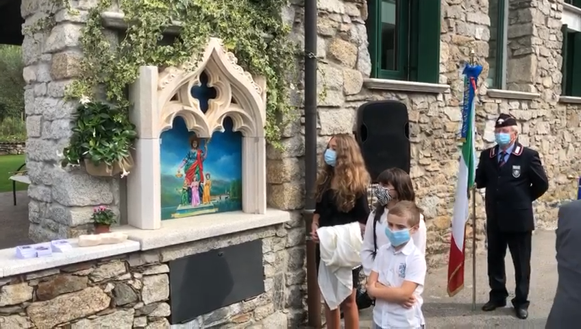 MERGOZZO - 20-09-2020--Con una toccante cerimonia, ricca di commozione e devozione, è stata inaugurata sabato mattina in via Borrette una cappella votiva a Santa Sofia, protettrice dei tumori e delle malattie infettive. Una bella opera, dipinta da Giorgio Baroni, e realizzata dalla famiglia Tancredi particolarmente devota a questa santa.