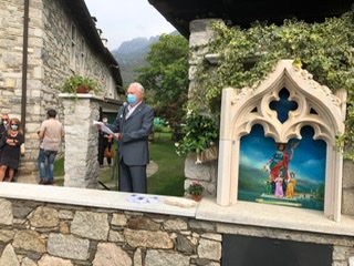 Dopo il ringraziamento alle autorità presenti e l’esecuzione dell’Ave Maria da parte di Umberto Ellena con la tromba in rappresentanza della banda musicale di Bracco, è toccata a don Adriano Miazza la benedizione della cappella, oltre alla lettura della preghiera di benedizione.