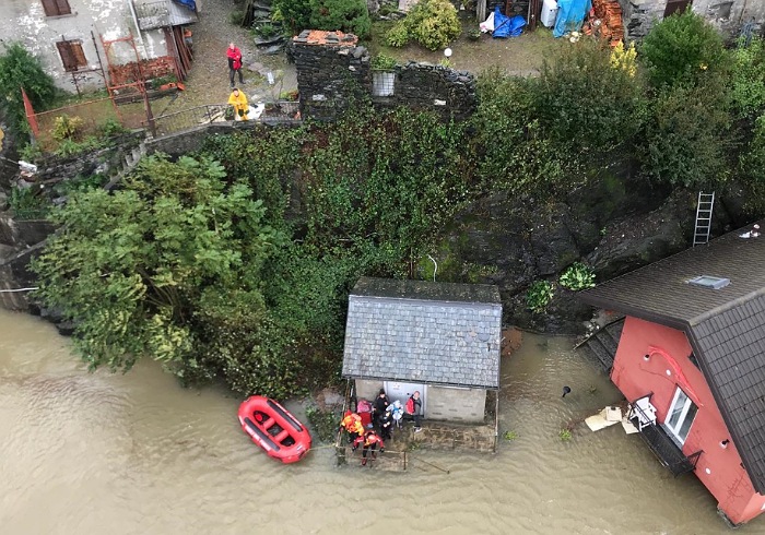 del comando del VCO sono intervenuti in soccorso della popolazione in diverse zone Provincia, devastata da frane ed esondazioni, a causa dell’ondata di maltempo che ha interessato, su più larga scala, gran parte del Piemonte. Maggiormente colpiti la bassa zona dell’Ossola, il Cusio e parte del Verbano, con viabilità interrotta in diverse zone a causa di caduta di alberi, nonché intere zone rimaste isolate. Per far fronte all’emergenza su scala locale, sono state messe in campo le forze del Comando del VCO, anche con l’utilizzo di imbarcazioni, gommoni da rafting, fuori strada, automezzi a trazione integrale. Inoltre, per rafforzare il dispositivo di Soccorso nella situazione emergenziale, è stata mobilitata la Colonna Mobile Regionale, che ha consentito l’arrivo sul posto di squadre e mezzi di Soccorso dal Comando di Bologna. Si segnalano, tra gli altri, numerosi interventi degli elicotteri dei Vigili del Fuoco: tramite l’ausilio del Drago 82, proveniente da Malpensa, e del Drago 55 proveniente da Torino, nel Comune di Ornavasso in frazione Migiandone sono state evacuate 17 persone, grazie a specialisti nel settore Speleo-Alpino-Fluviale (SAF), che hanno recuperato le persone nelle zone isolate mediante l’utilizzo del verricello. Inoltre una persona che aveva necessità di raggiungere l’ospedale per la dialisi, in località Cuzzago, è stata raggiunta tramite l'elicottero e portata in ospedale. Si segnalano anche una frana nei pressi di Bognanco, la parte alta del Paese di Cesara evacuato, il paese di Cicogna isolato per frana, ancora una frana nel paese di Massiola. Infine due giovani ragazze si erano perse in località Montescheno ed Alpe Aurelio, ed i Vigili del Fuoco sono riusciti fortunatamente a localizzarle tramite i cellulari ed a recuperarle.