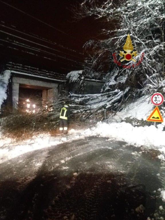 Interventi per lo più di messa in sicurezza delle strade statali e provinciali con la rimozione di piante e rami sulla sede stradale ma anche, soprattutto nelle ultime ore, per la rimozione di neve da tetti e strutture appesantite dal manto nevoso.